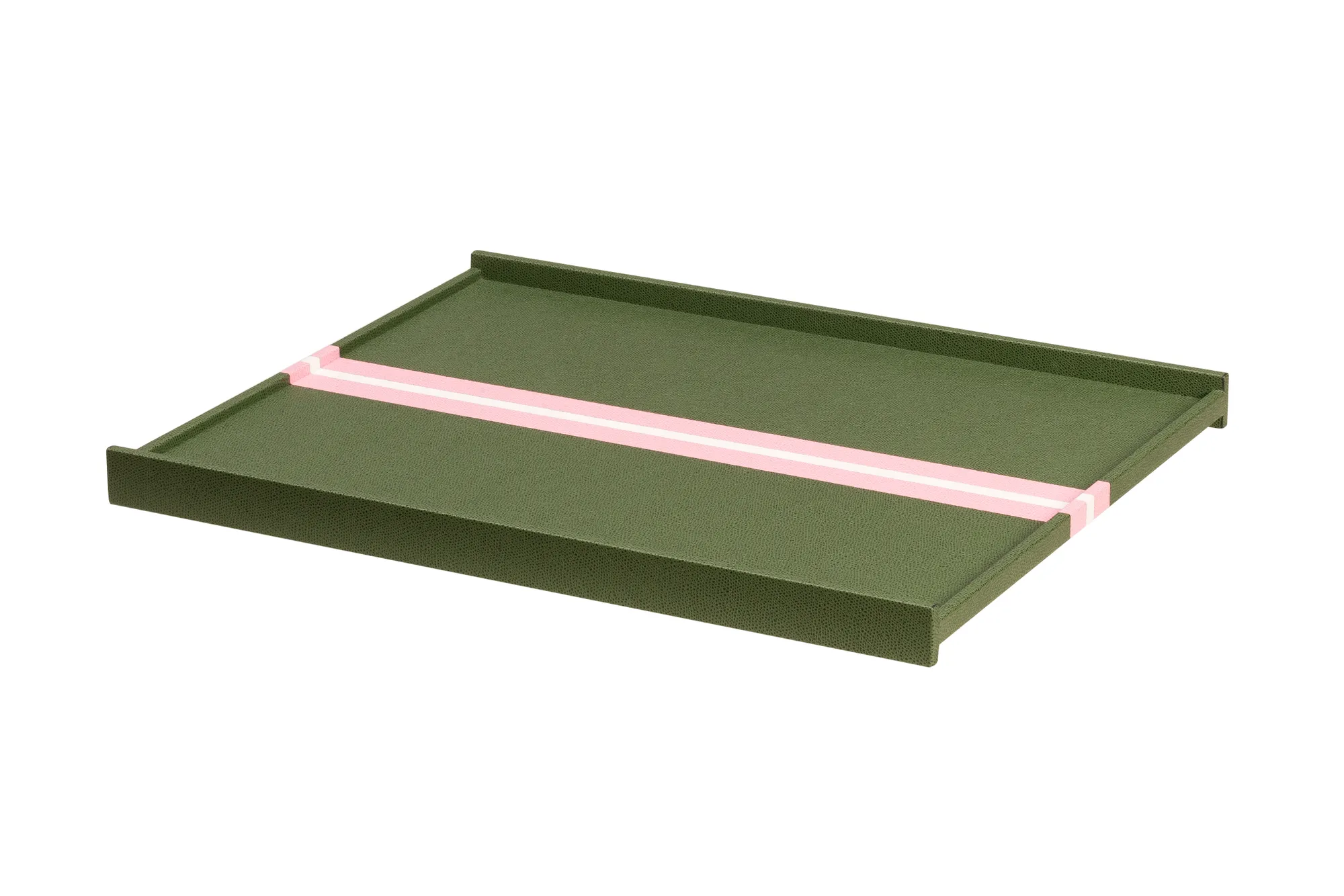 Enzo trays made of leather marquetry play on the graphics of two-toned lines and stripes. A hint of geometric abstraction and minimalism in an elegant and sporty composition.