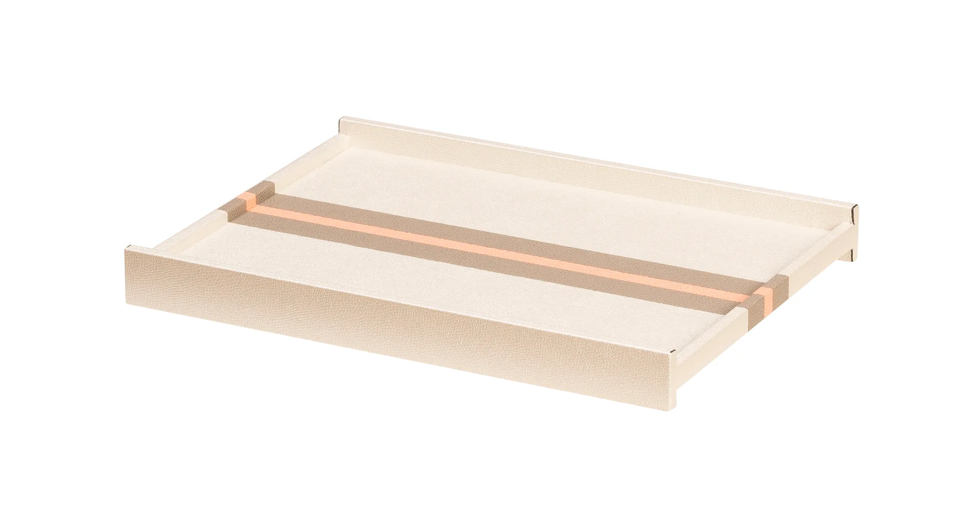 Enzo trays made of leather marquetry play on the graphics of two-toned lines and stripes. A hint of geometric abstraction and minimalism in an elegant and sporty composition.