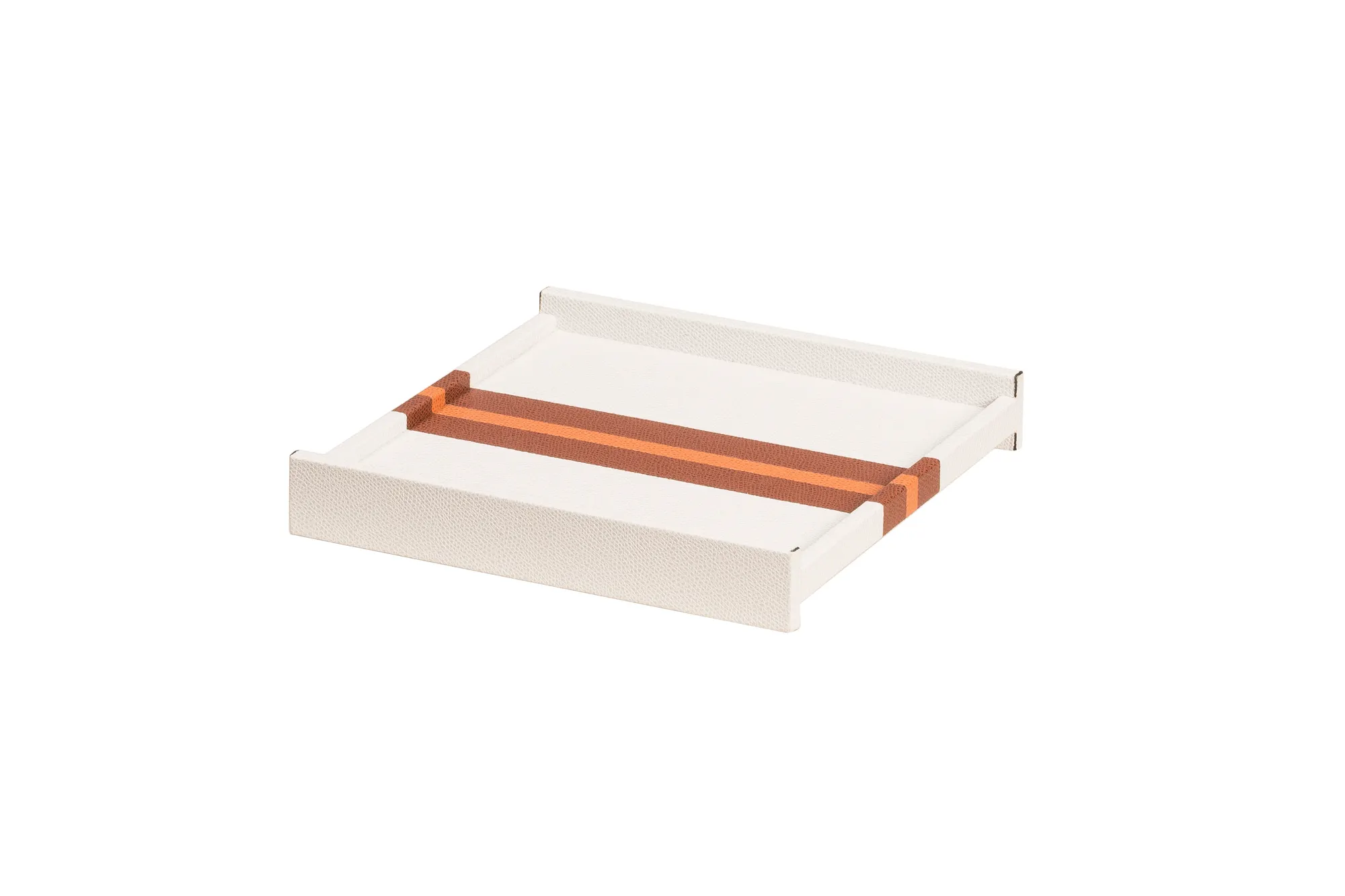 Enzo trays made of leather marquetry play on the graphics of two-toned lines and stripes. A hint of geometric abstraction and minimalism in an elegant and sporty composition.