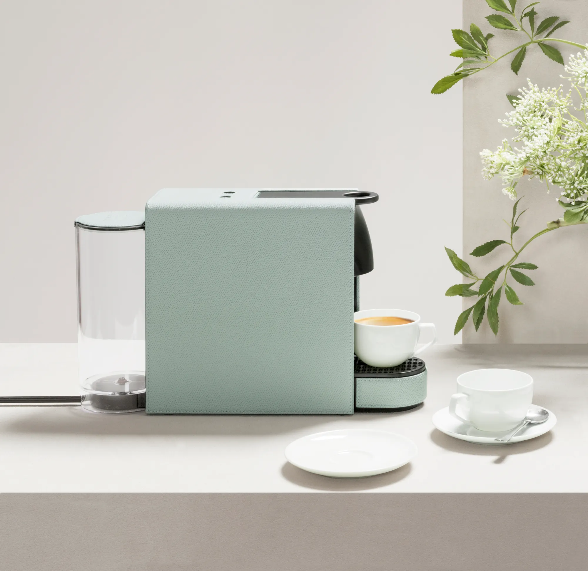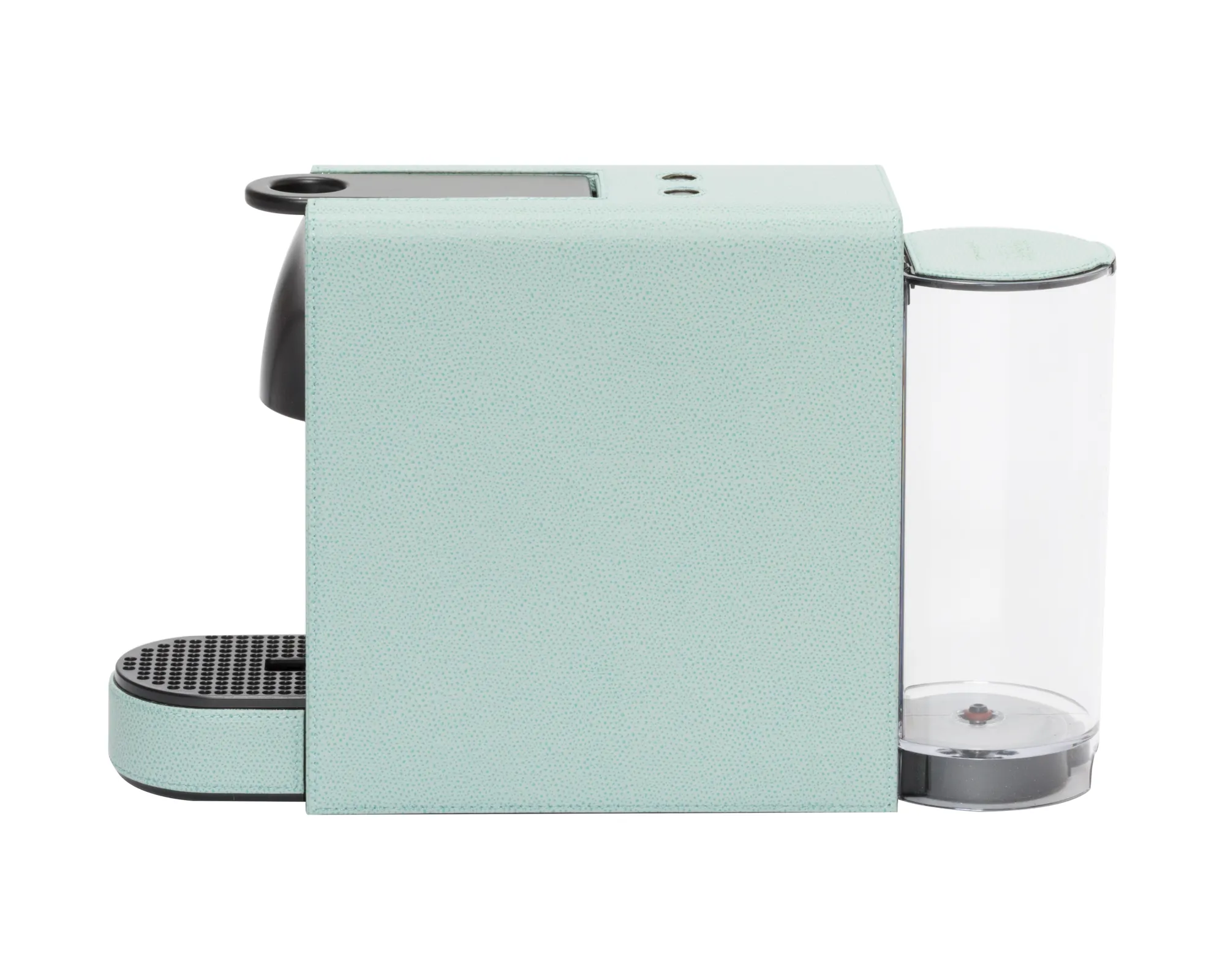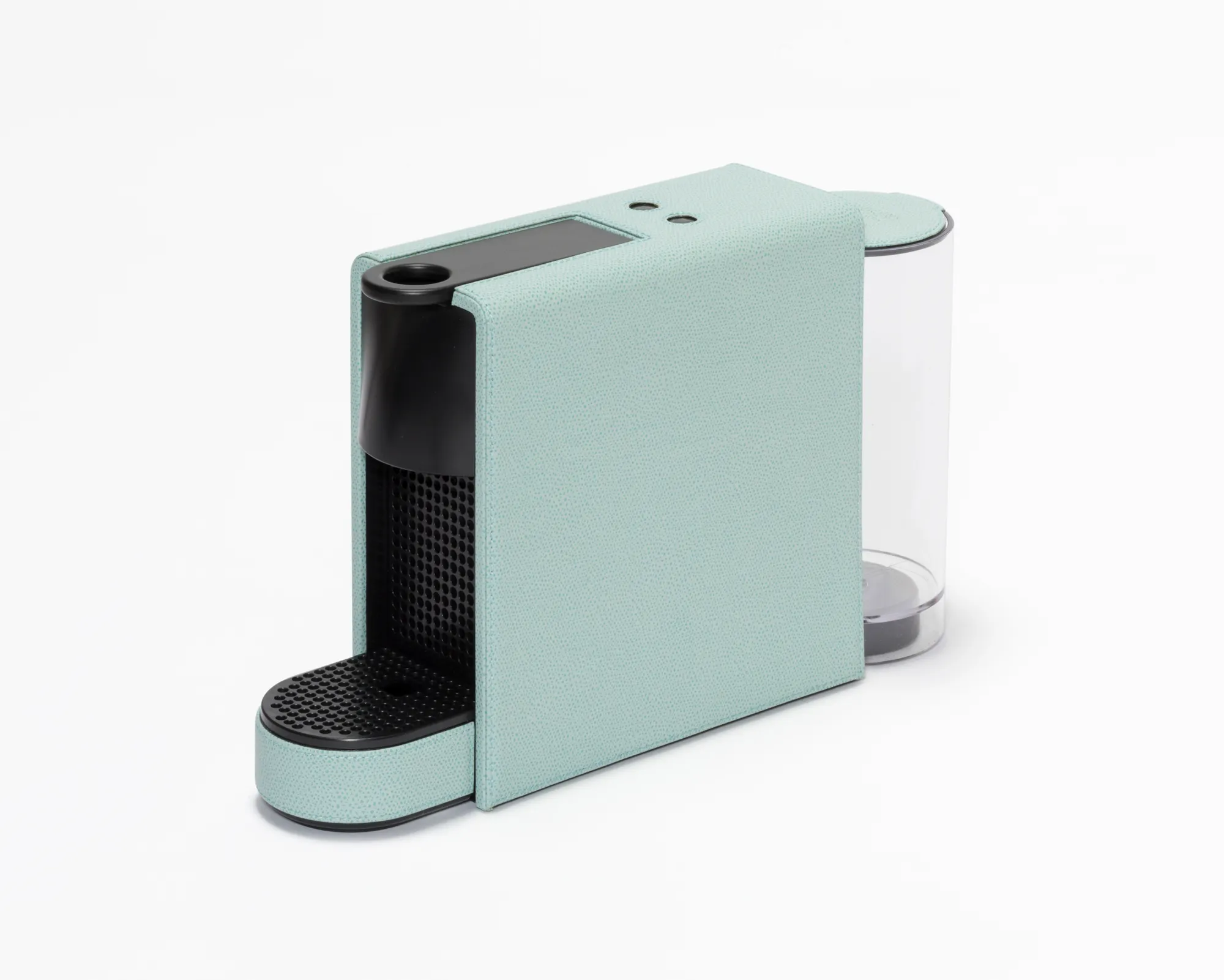 Simplified version for hospitality. Leather-bound Nespresso machine. It use Nespresso classic capsules. Voltage available: 110V or 220V.