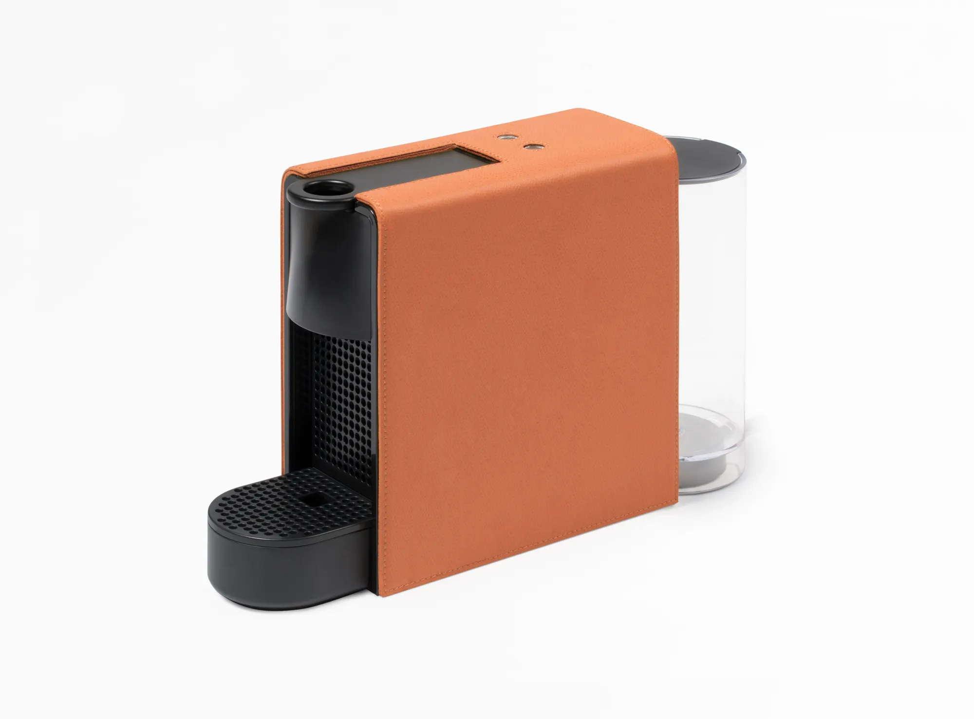 Simplified version for hospitality. Original leather-bound Nespresso machine with a removable cover. It uses Nespresso classic capsules. Voltage available: 110V or 220V.