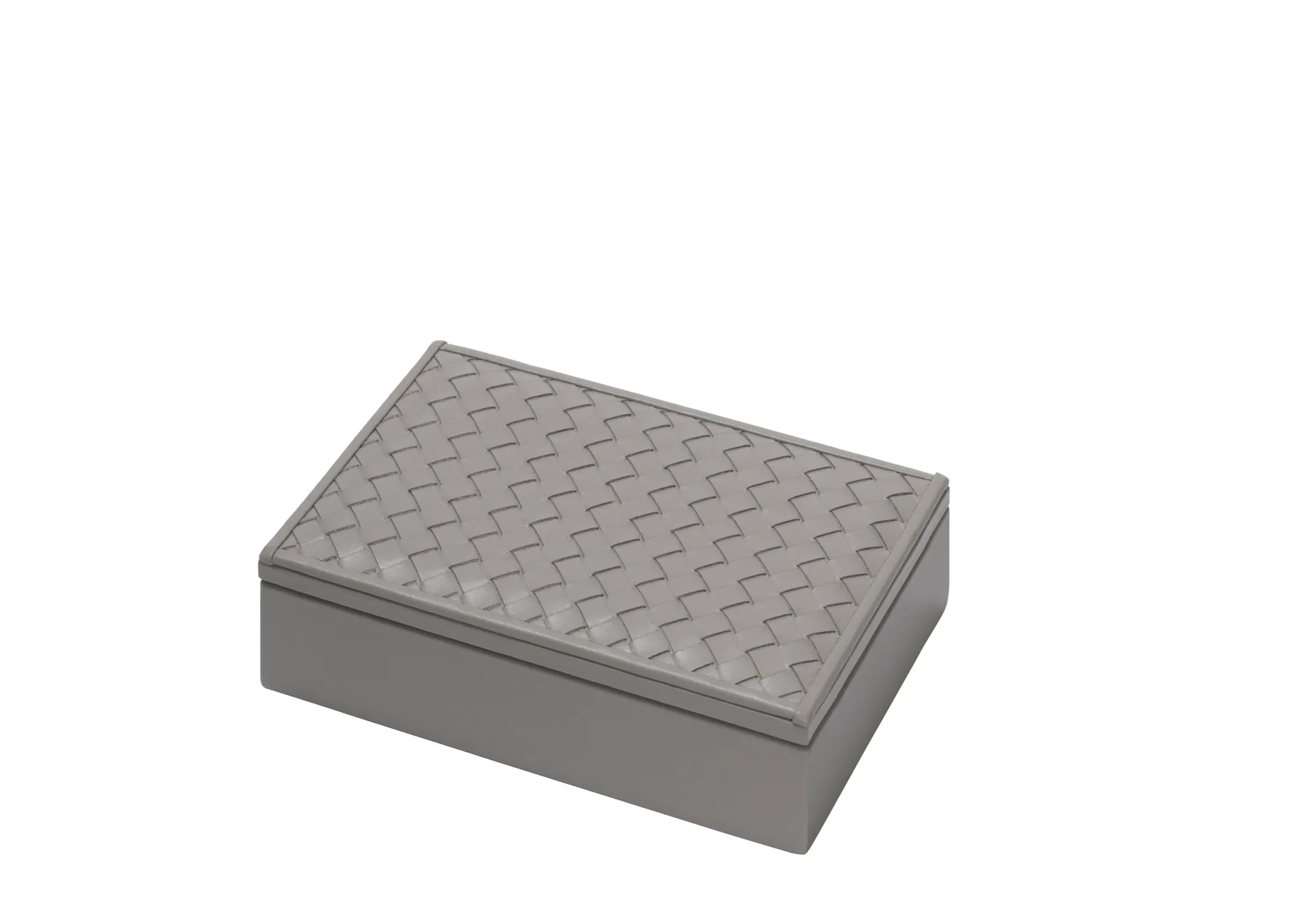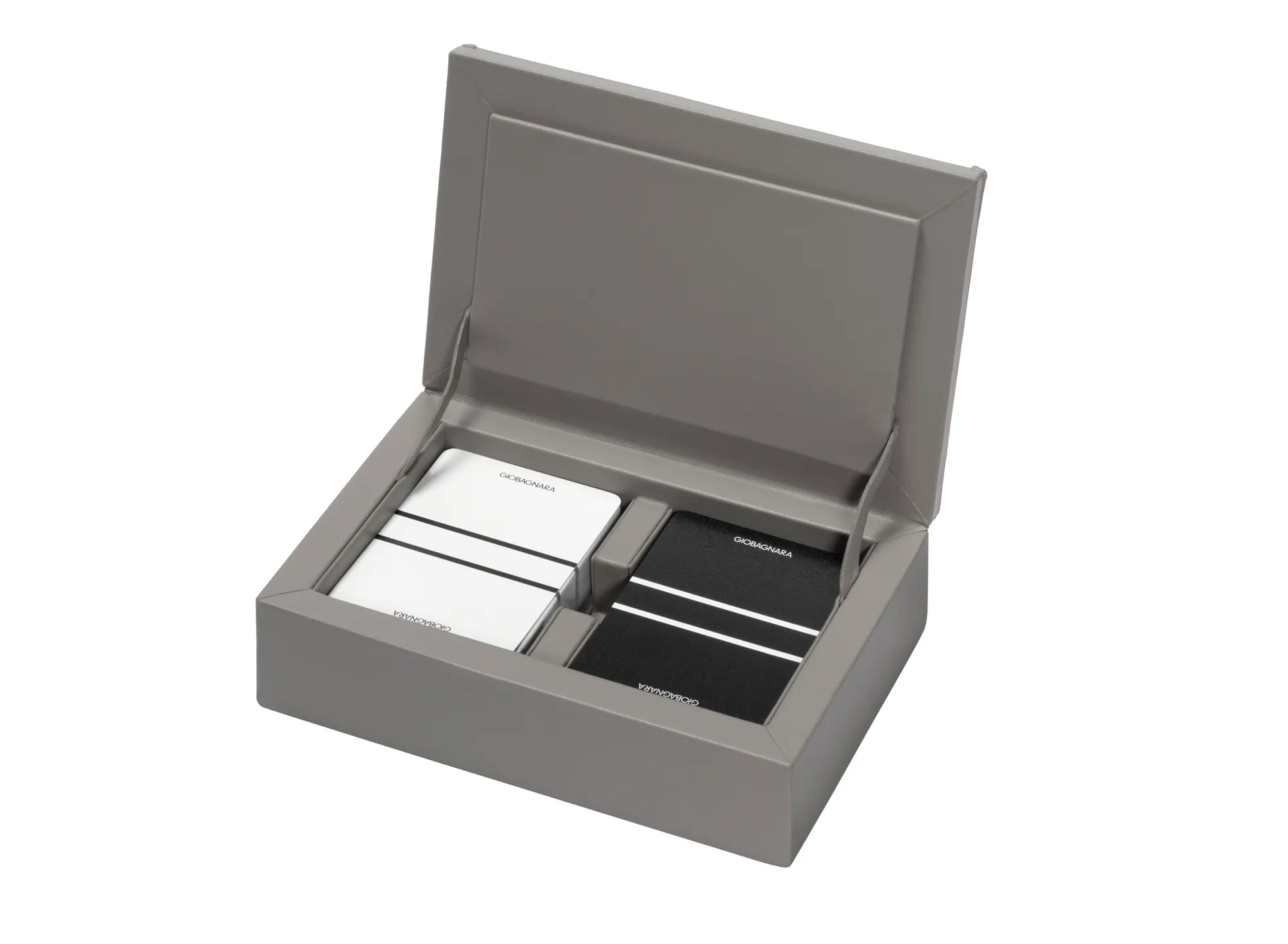 Leather box with handwoven leather lid. Includes 2 decks of high quality playing cards.