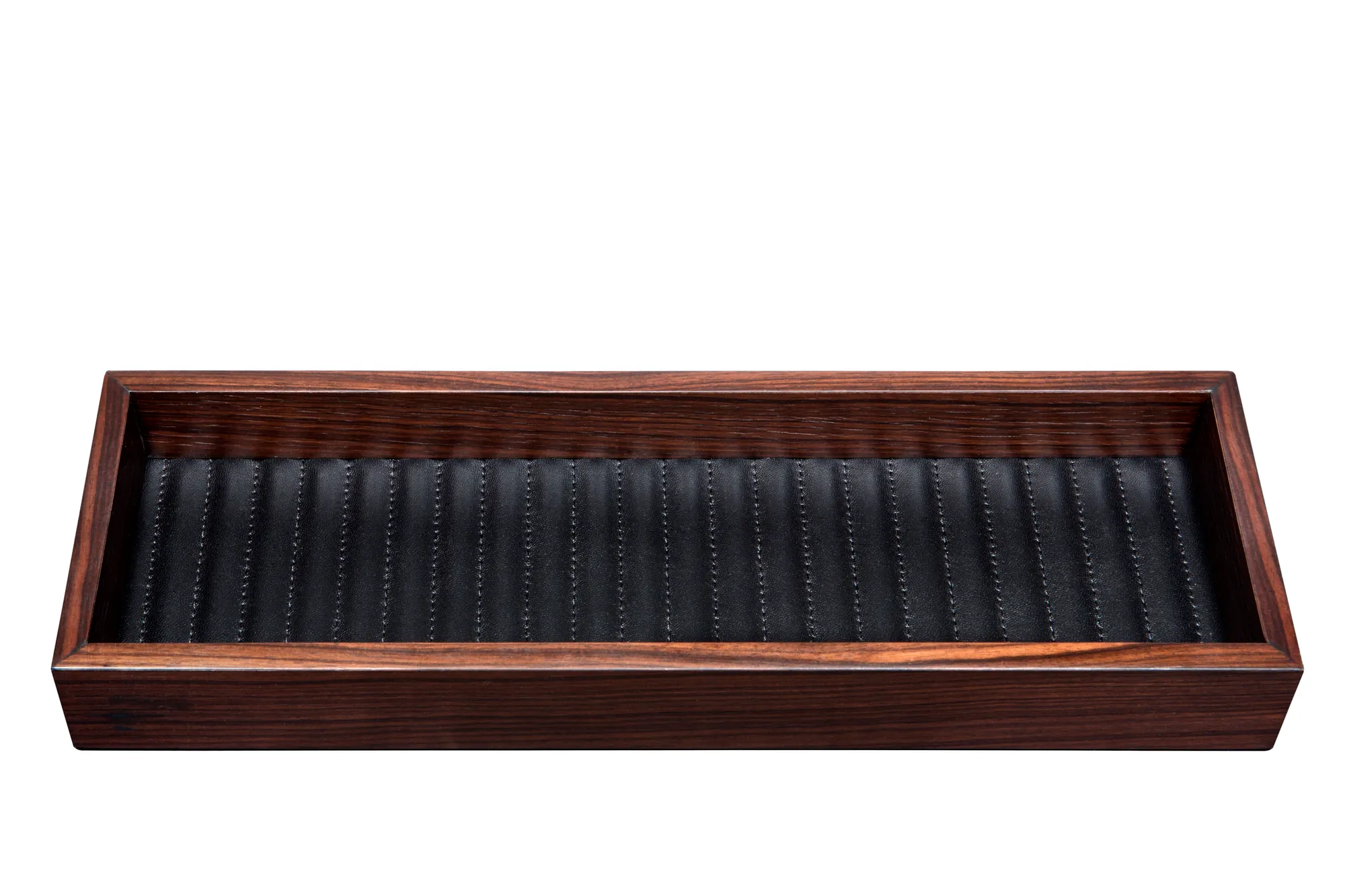 Leather tray, quilted diamonds padded lining, small bamboo handles.
