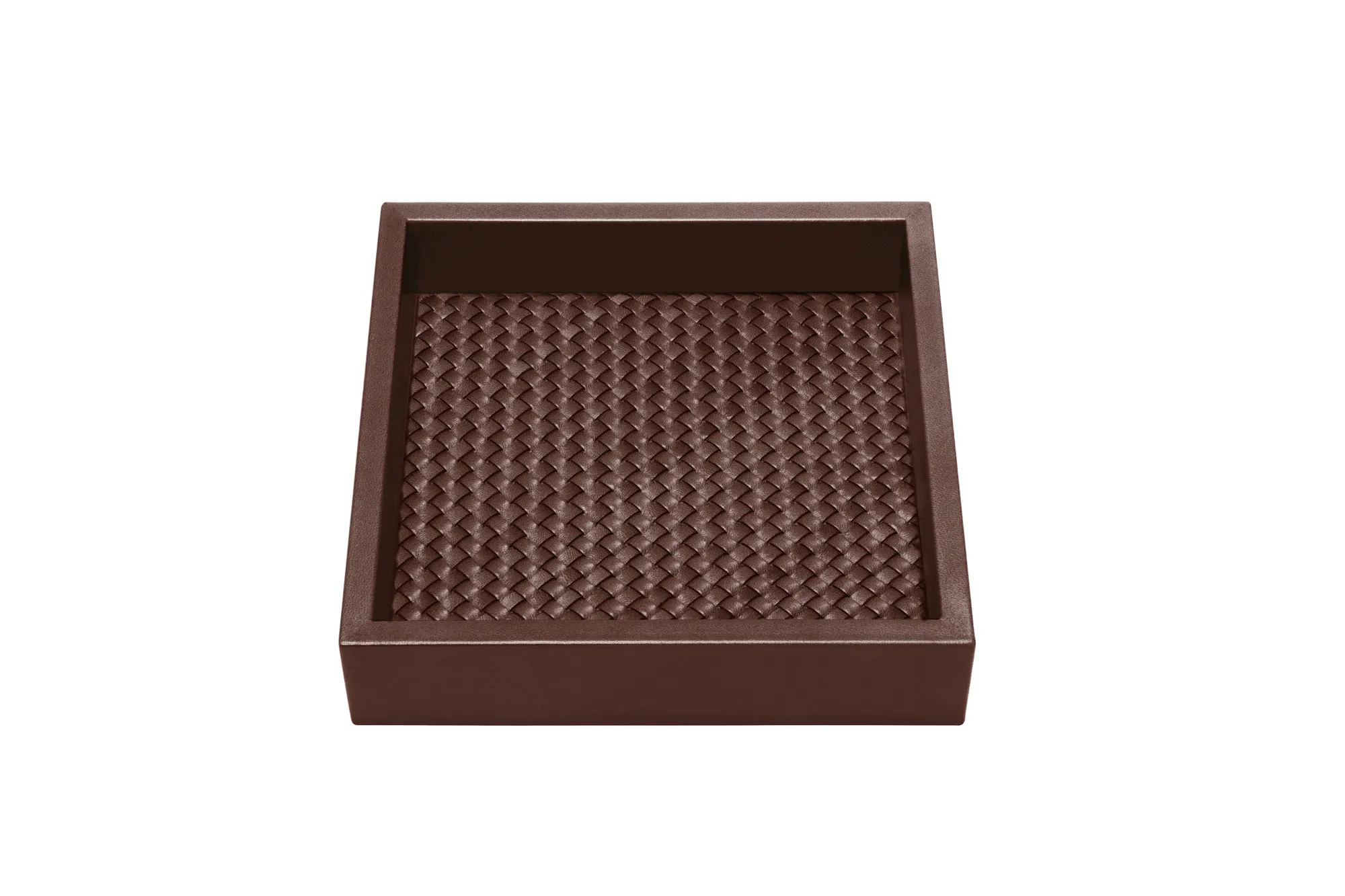 Leather tray, padded handwoven lining.