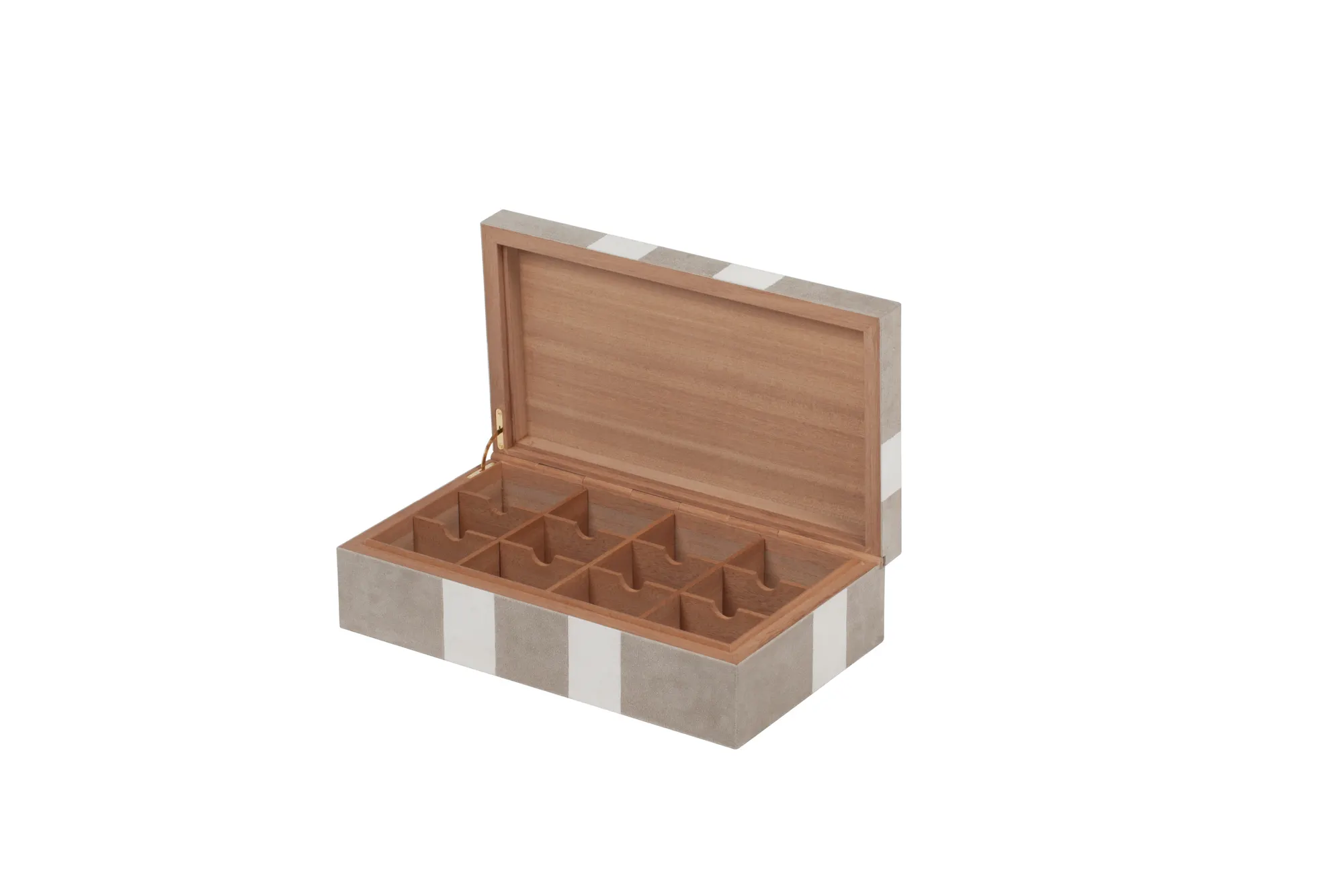 Flow mixes graphic curves with the velvety softness of suede in a line of subtle or bold contrasts ranging from pastels to saturated hues: from boxes for jewelry, cigars, parlor games, tea or secret treasures to bookends, this range is primarily composed of decorative containers to mix and match. An elegant invitation to start a collection.