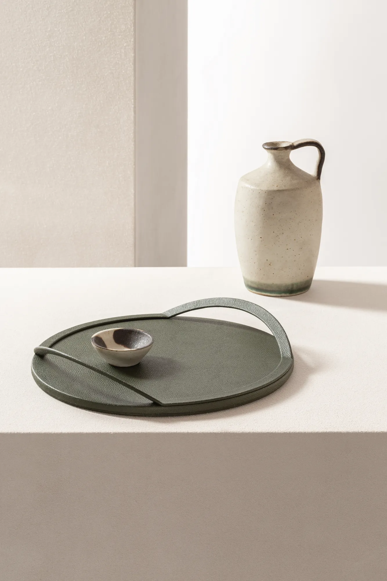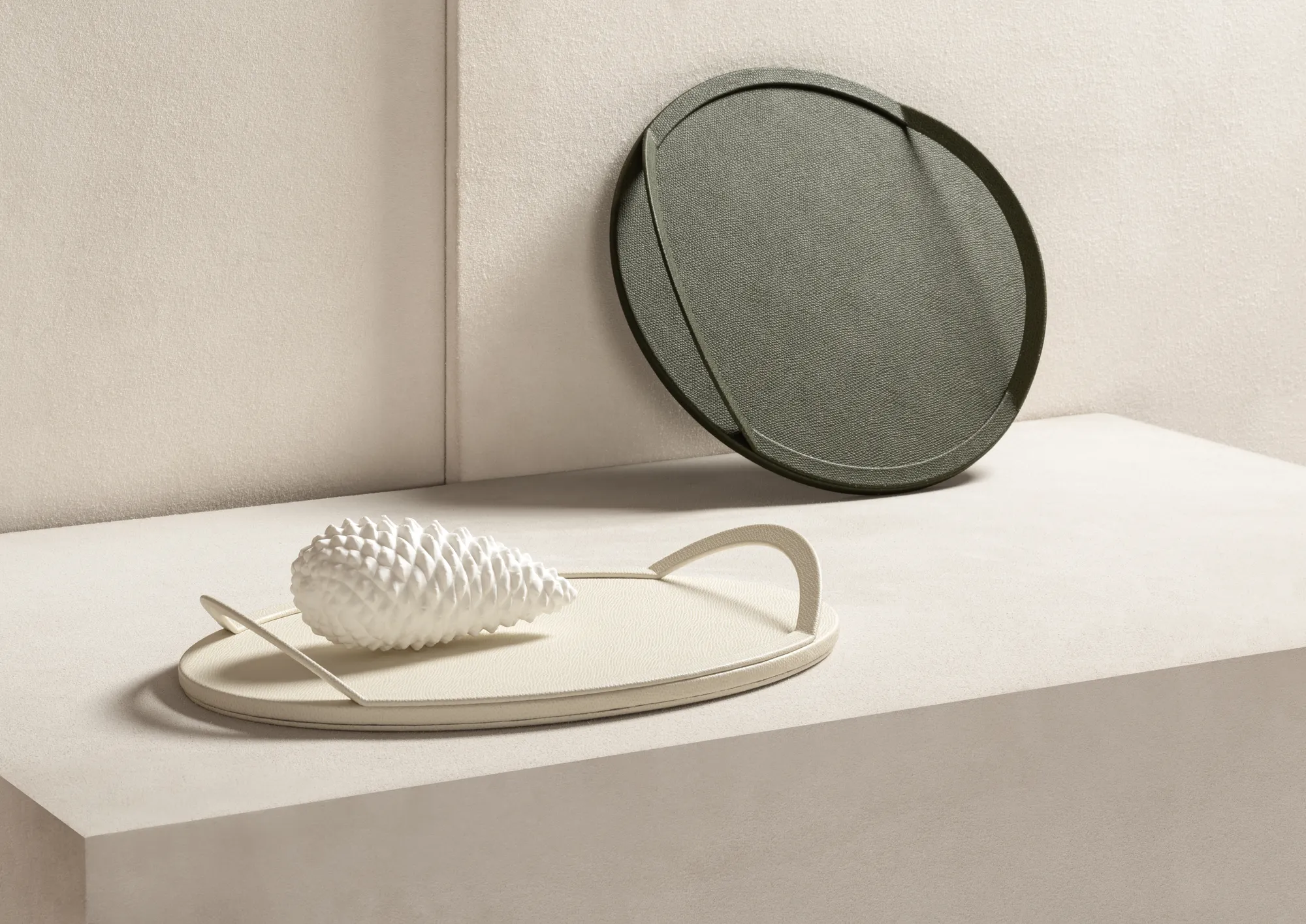 Form is an exquisite collection of table accessories that seamlessly marries the principles of 'form follows function' with an unwavering commitment to practical elegance. Crafted with precision, each piece in this collection embodies purity, refinement, and a timeless aesthetic, making it the epitome of sophistication for one's dining experience. At the heart of Form lies a unique sculptural quality, where the functional composition of primal shapes circles and squares intersect harmoniously, creating a visually captivating ensemble. This intentional design approach not only enhances the overall aesthetic appeal but also ensures that each accessory serves its purpose with utmost efficiency. The collection's protagonist is luxurious leather, elevating the tactile experience and adding a touch of opulence to the functional elements. The choice of leather not only underscores the commitment to quality but also enhances the longevity of these pieces' unfading charm. Form is more than just a collection; it's an expression of thoughtful design that transcends trends, making it a lasting addition to any table setting.