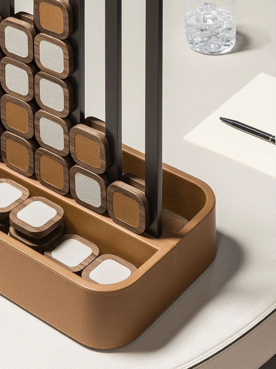 Made in Italy savoir-faire and a taste for fun come together in the Games Collection, designed for those who desire playful moments enhanced by a touch of refinement. Giobagnara and Poltrona Frau combine their expertise to reinterpret the most iconic and beloved board games of all time, giving them a contemporary aesthetic and transforming them into authentic collector's items.