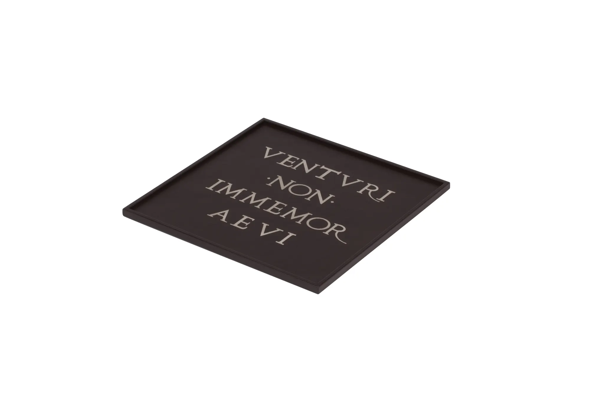 This set of four trays in marquetry of nappa leather and suede presents a reinterpretation of various decorative elements and the motto "Venturi non immemor aevi" (=looking to the future without forgetting the past) emblazoned on the façade of the Bagnara family palazzo at Via Garibaldi 12 in Genoa. An architecturally informed vocabulary manifests itself with all the force of timeless elegance.