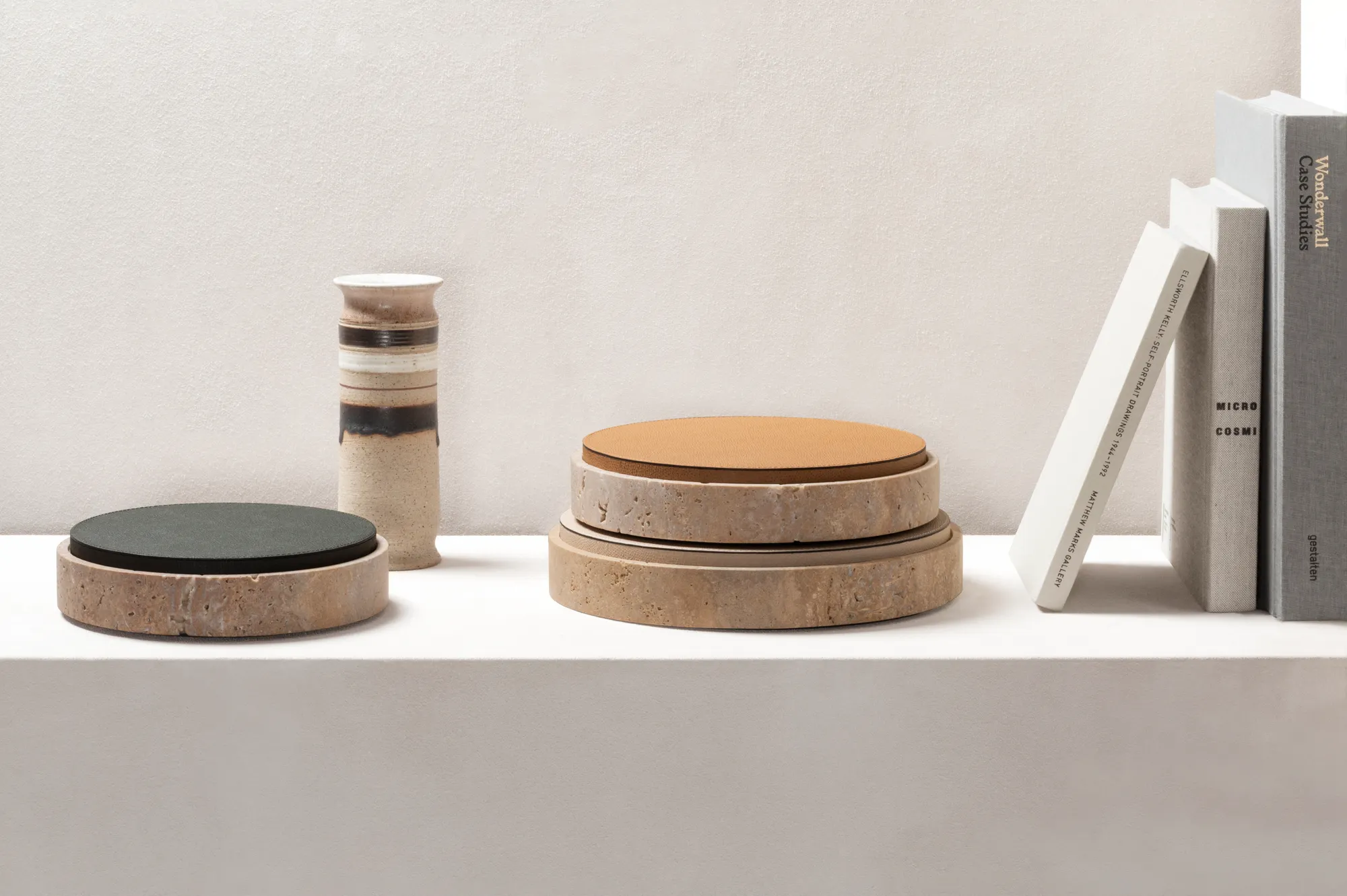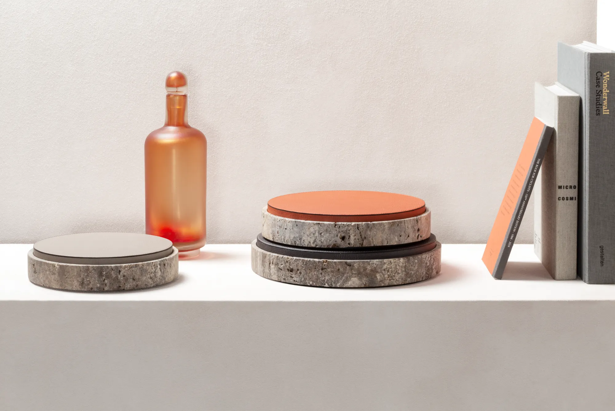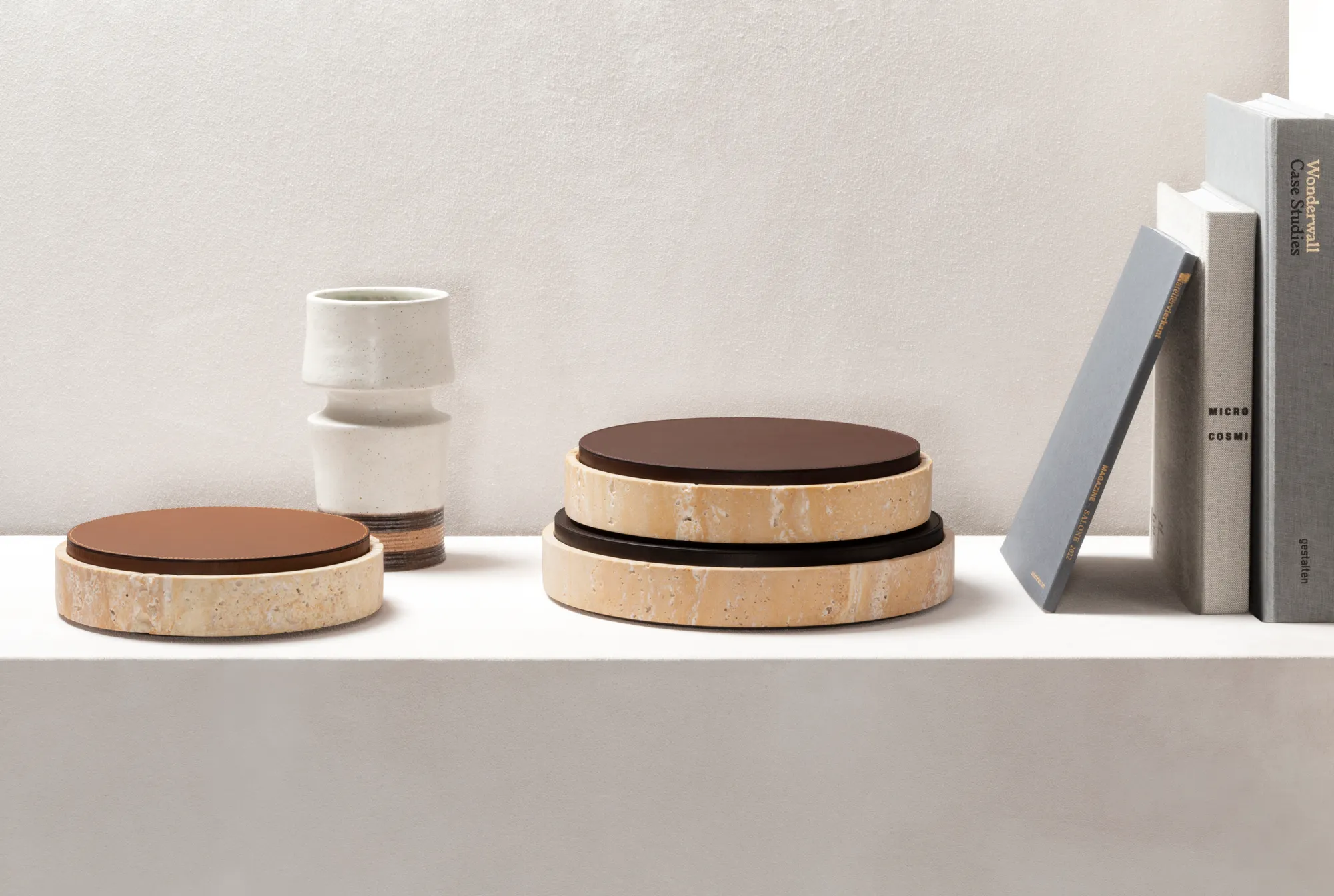 Featuring minimal geometric shapes, these boxes combine the beauty of travertine in several nuances of choice with the finest italian leather. Custom sizes available on request.