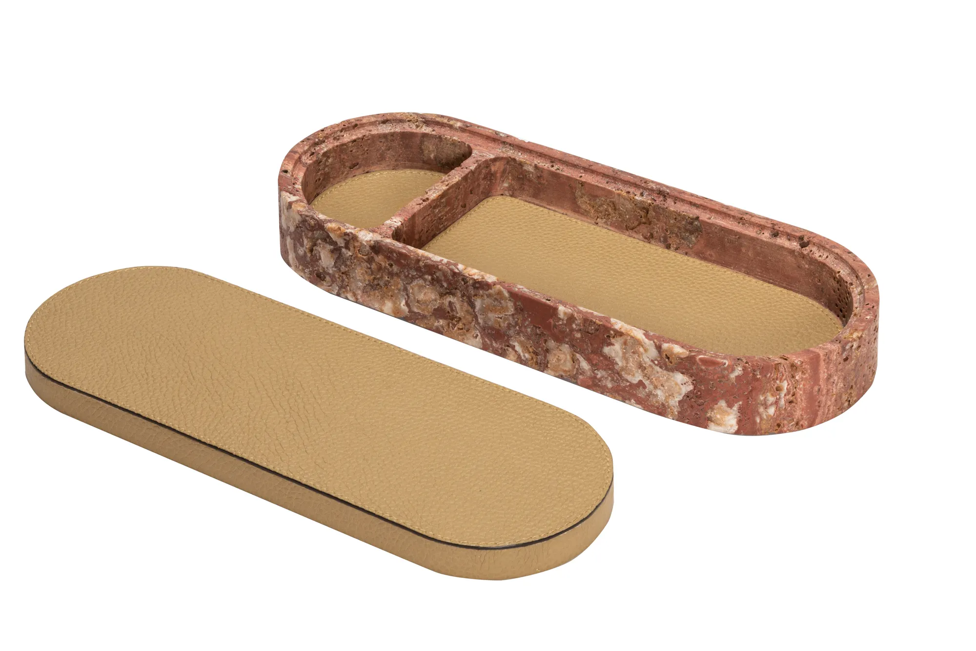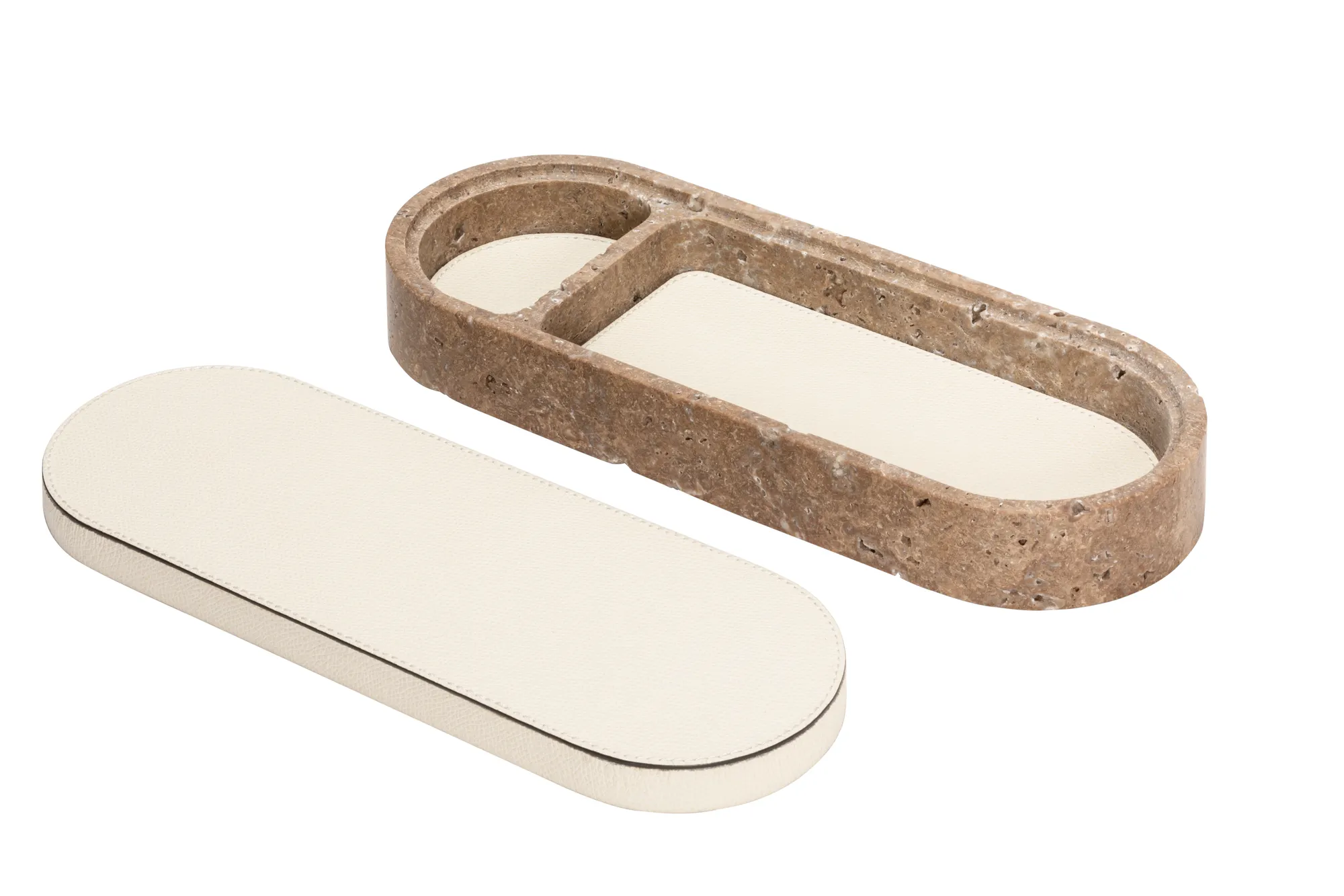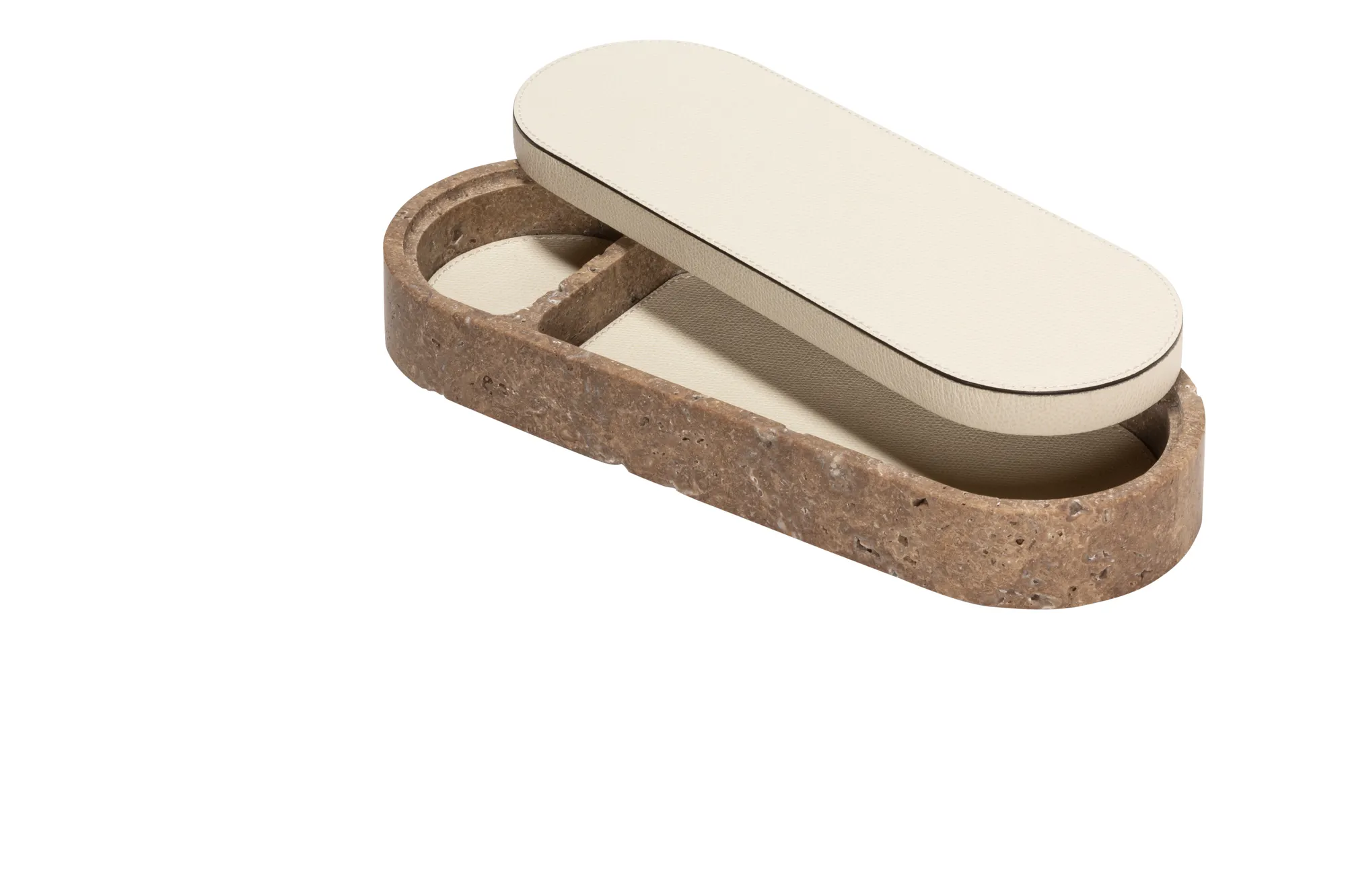 Featuring minimal geometric shapes, these boxes combine the beauty of travertine in several nuances of choice with the finest italian leather. Custom sizes available on request.