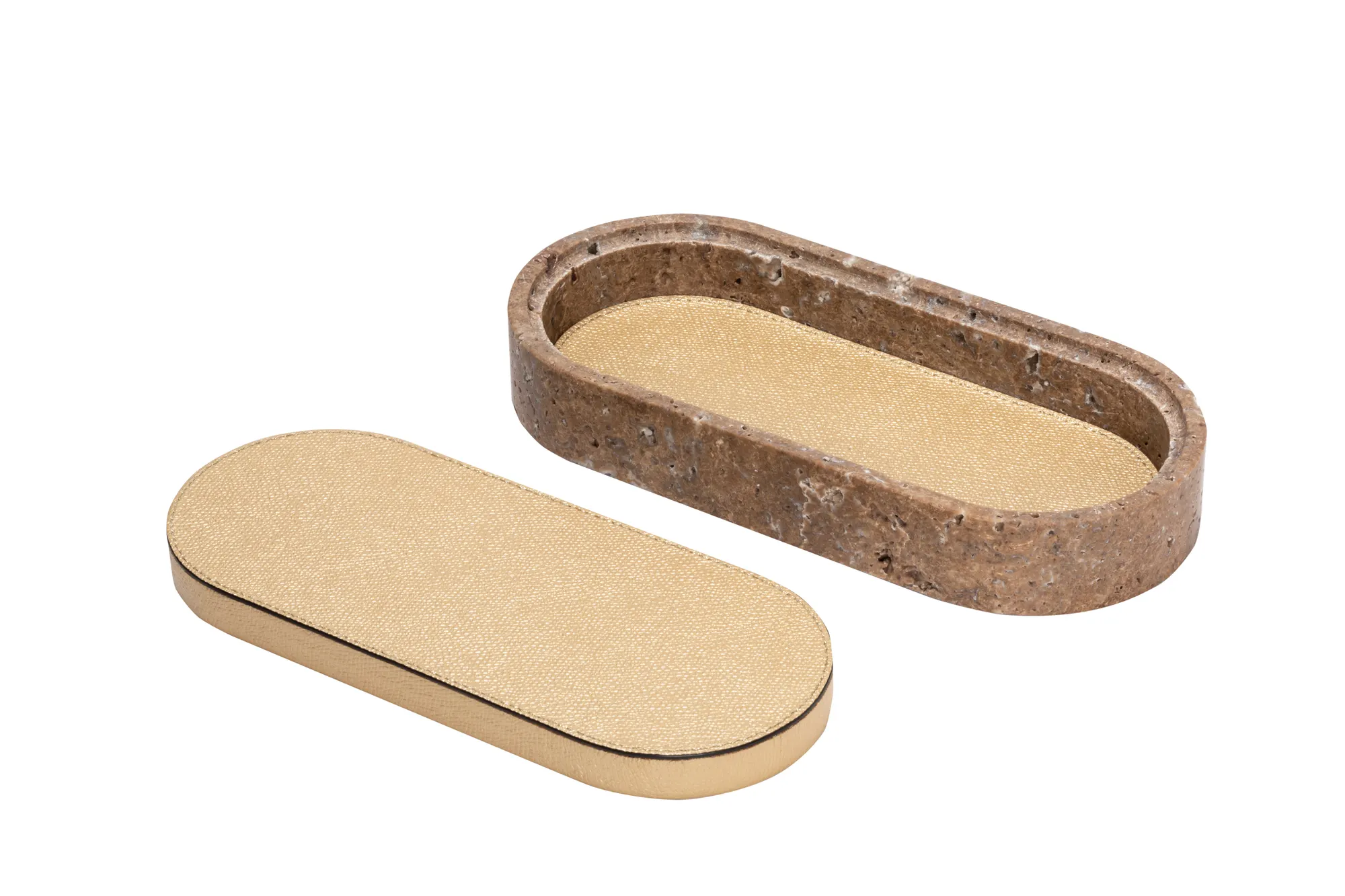Featuring minimal geometric shapes, these boxes combine the beauty of travertine in several nuances of choice with the finest italian leather. Custom sizes available on request.