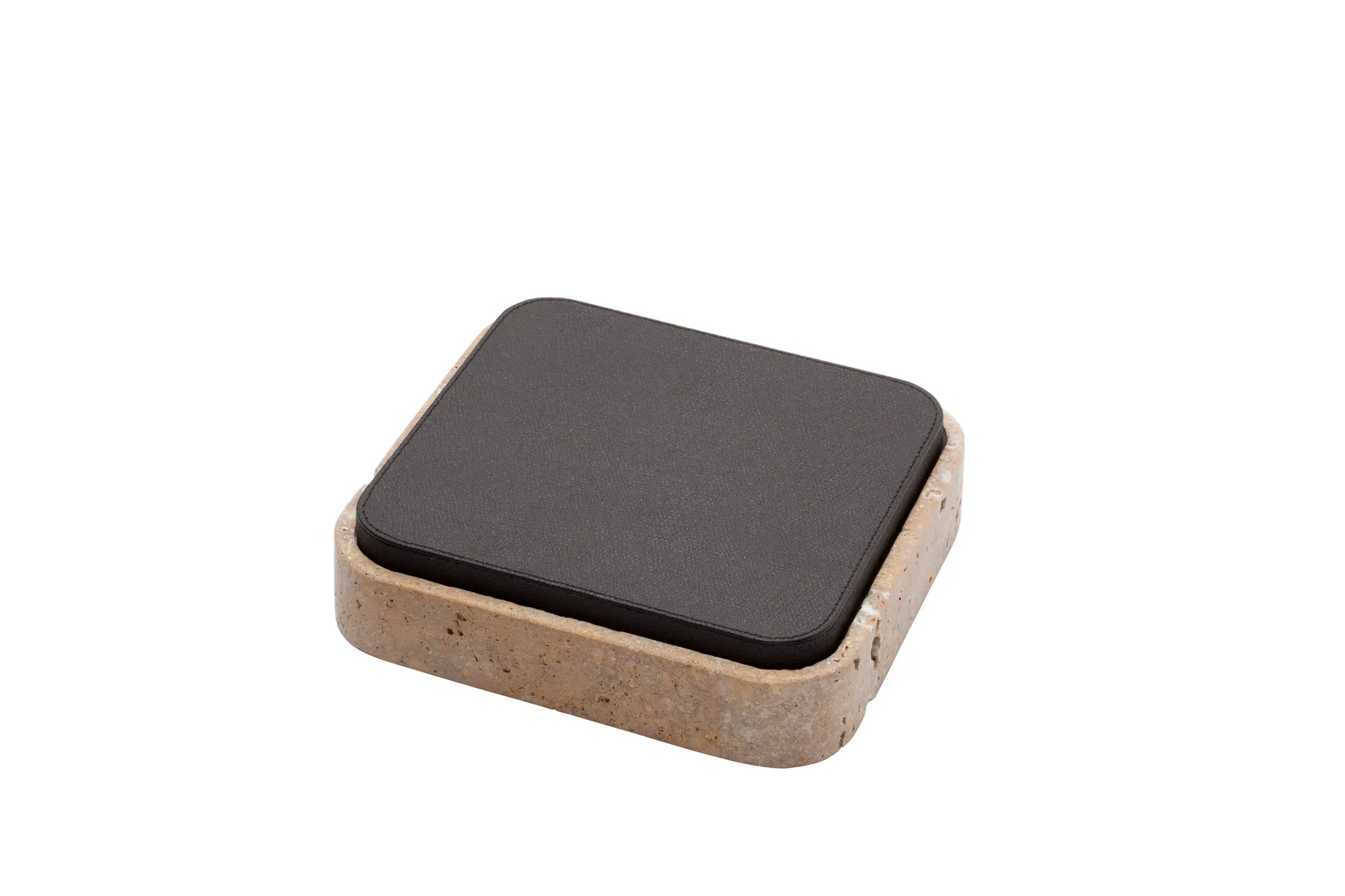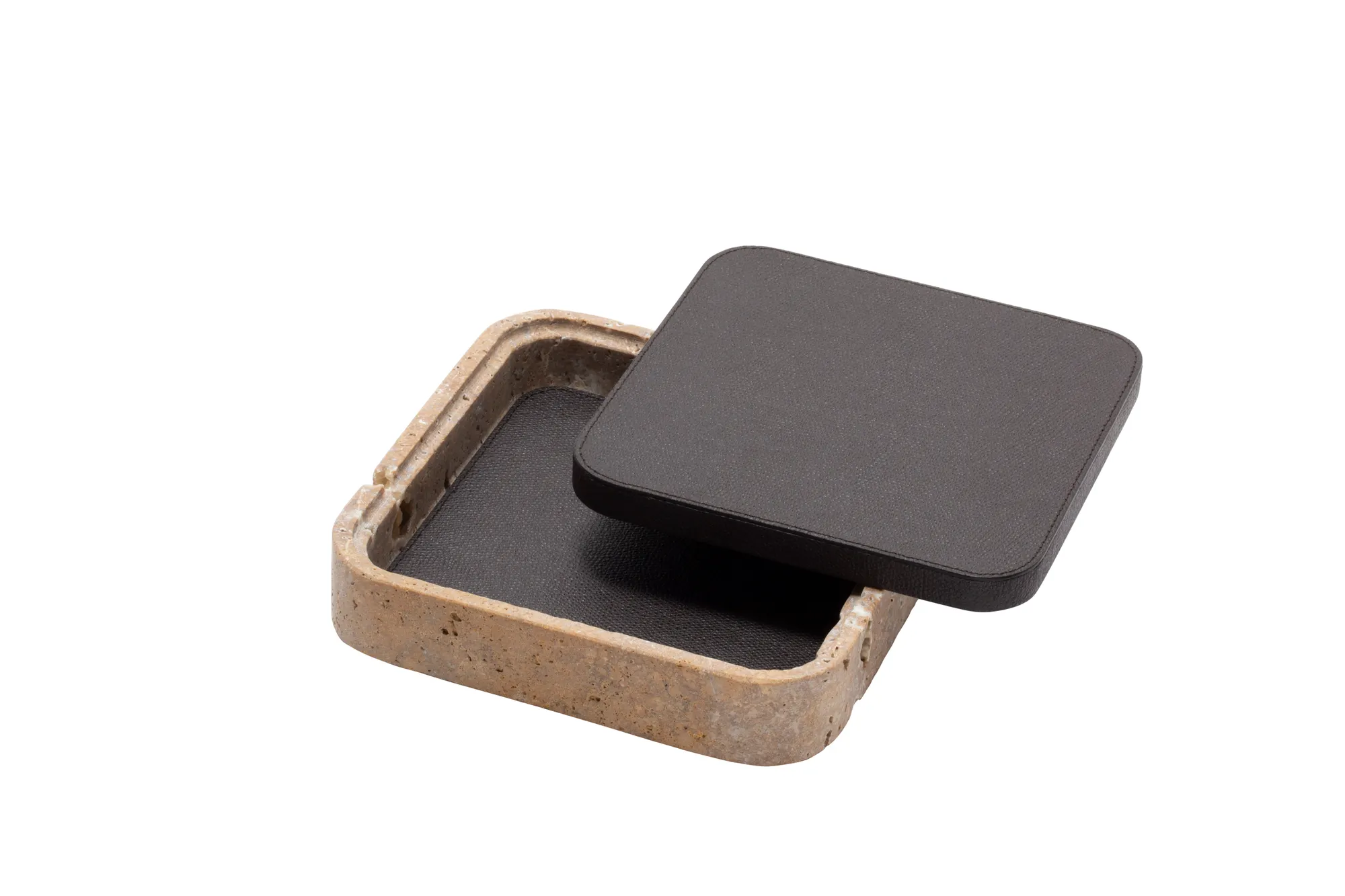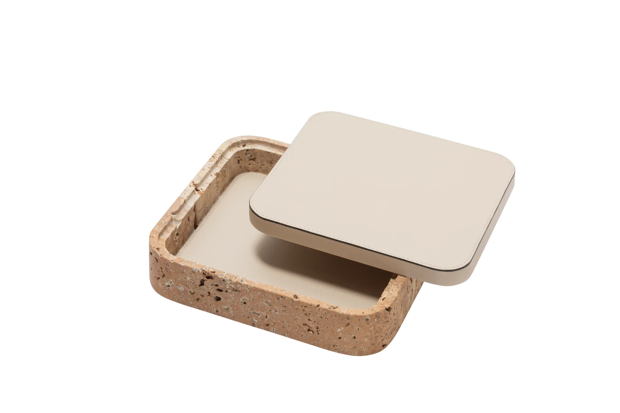 Featuring minimal geometric shapes, these boxes combine the beauty of travertine in several nuances of choice with the finest italian leather. Custom sizes available on request.