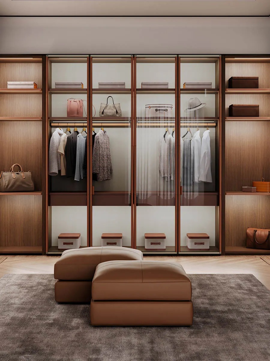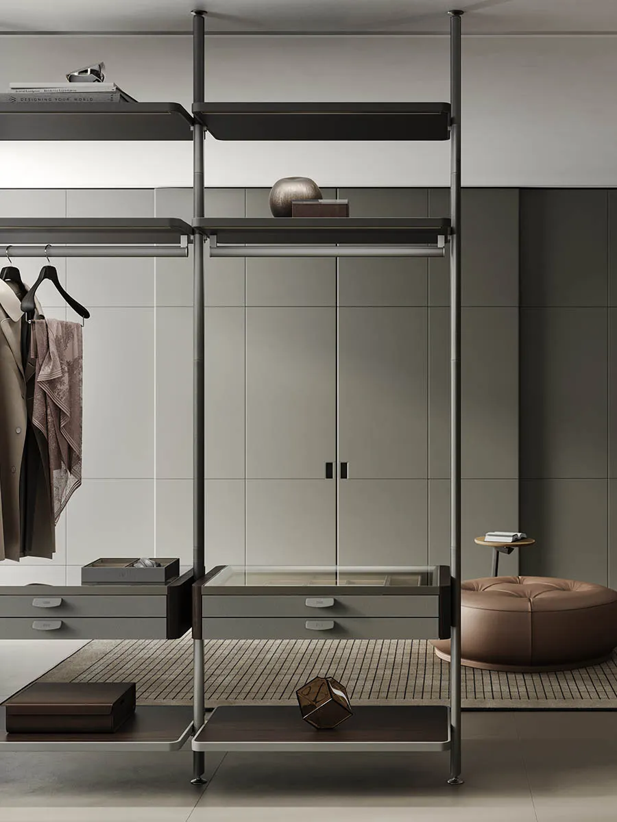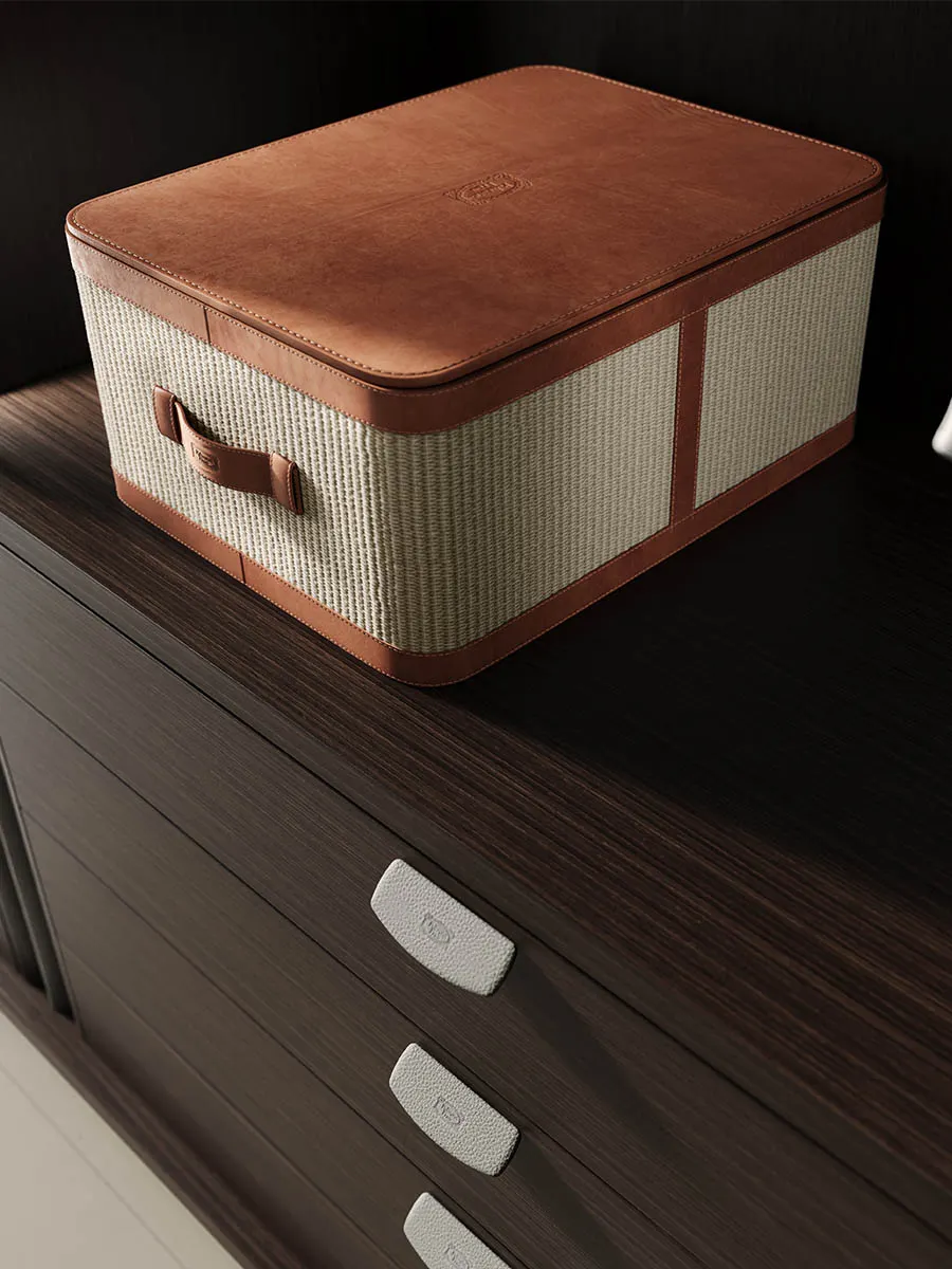 The wardrobe accessories are designed to elegantly complete Poltrona Frau’s bedroom solutions. Hangers, boxes and other handcrafted accessories are made using premium materials that enrich both traditional and walk-in wardrobes, making them even more functional.