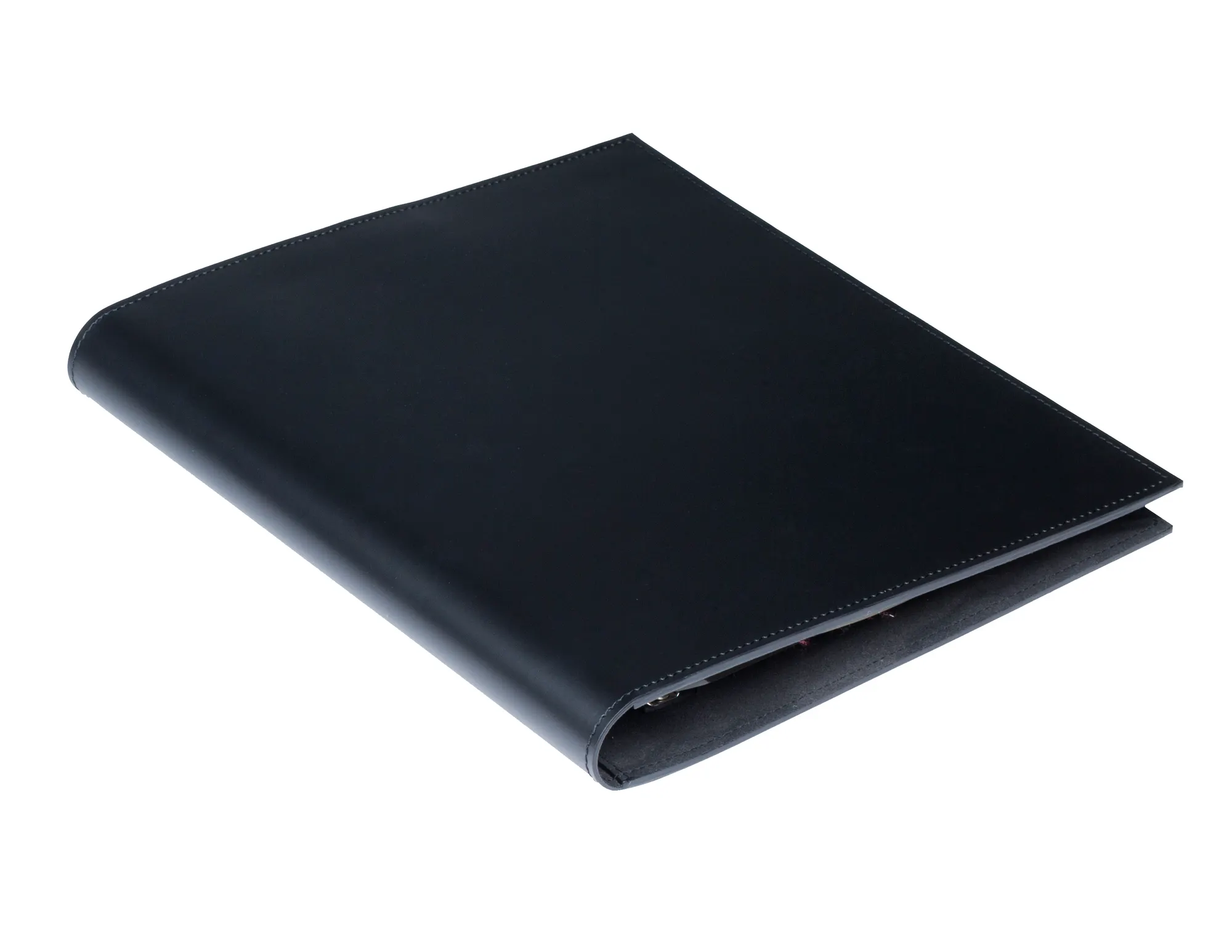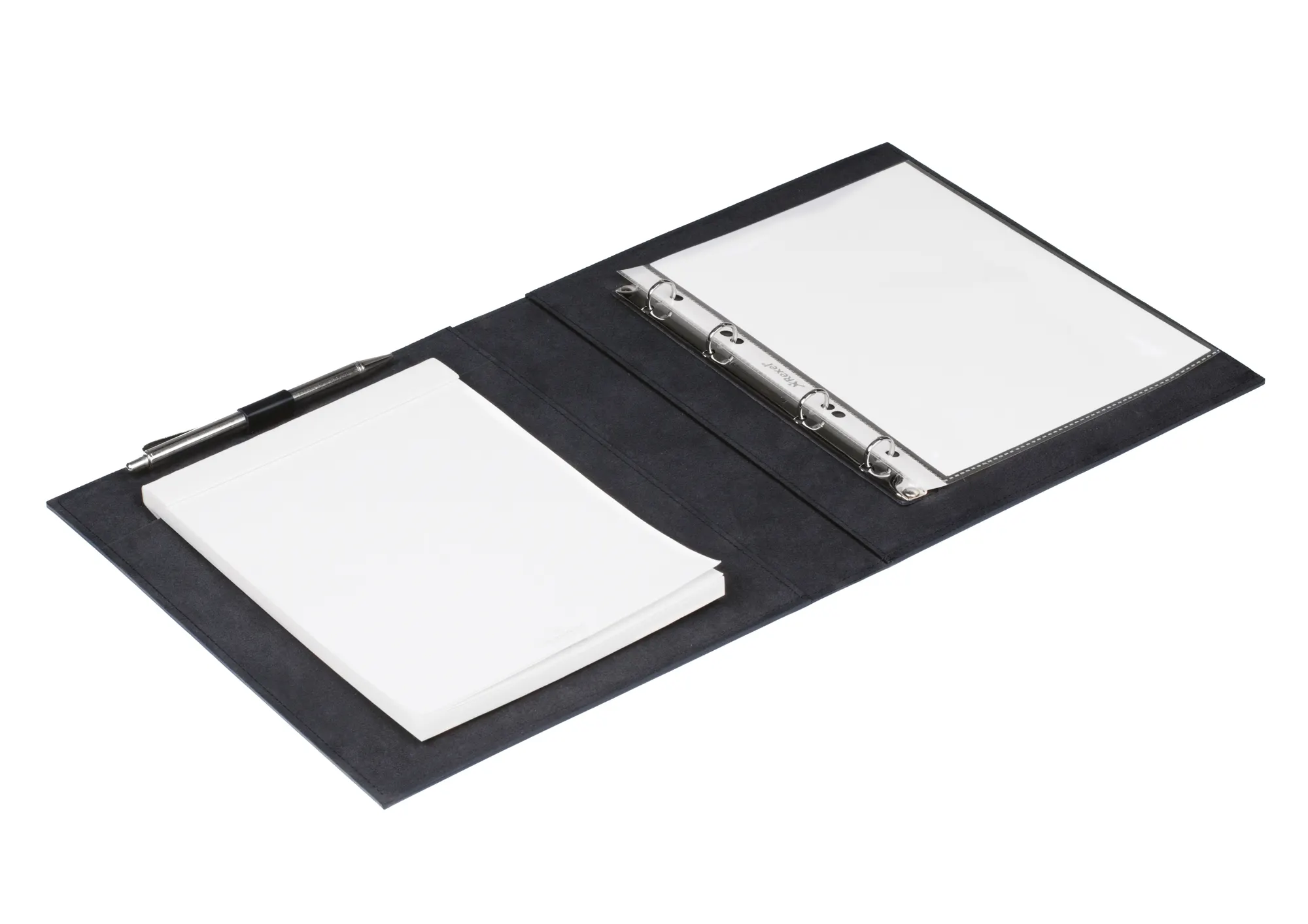 Finest regenerated leather structure with water-resistant and UV-resistant finish. Provided with pen holder adjustable to different pen sizes. Black microfiber lining.