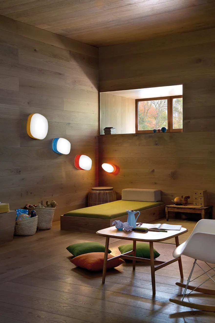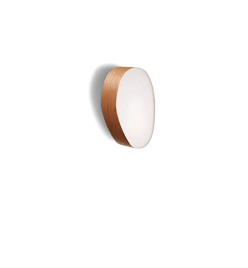 GUIJARRO THE FAMILY LIGHT. Guijarros is a family of three pebble-like lights, each one perfect for use on a wall or ceiling. Designed by Mariví Calvo, the Guijarro lamps were inspired by fine shingle: small, smooth and rounded pebbles whose individual shapes have been carved over many years by water and sand. A tiny wonder of nature, every pebble exhibits its own colour, contours and form. With three different sizes and a choice of wood veneer finishes, the Guijarro lights are especially eye-catching when displayed in a group formation. Just as pebbles live in harmony, the Guijarros present a strong sense of oneness.