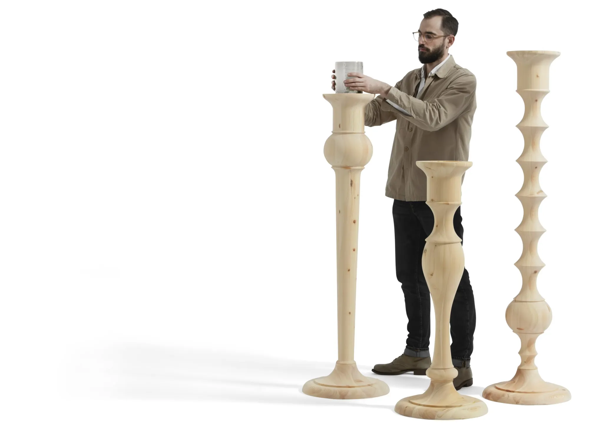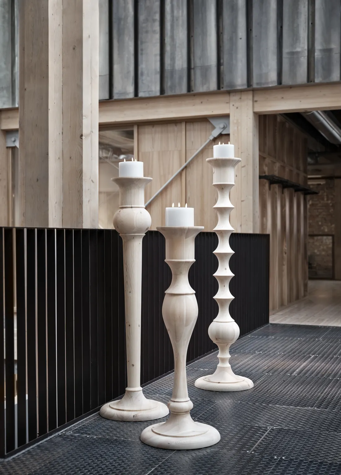 Times are changing and more than ever we need to surround ourselves with objects that inspire us, that create a mood and make us reflect. HOLY MOLY ENCOURAGES US TO CELEBRATE The monumental candlestick Holy Moly encourages us to celebrate in our everyday lives. Holy Moly embraces the Scandinavian traditions of worship and the importance of illumination during our long Nordic winter nights with the magical warmth of candlelight. The shapes are drawn from classical models, each with its own expression, that complement and interact with each other.