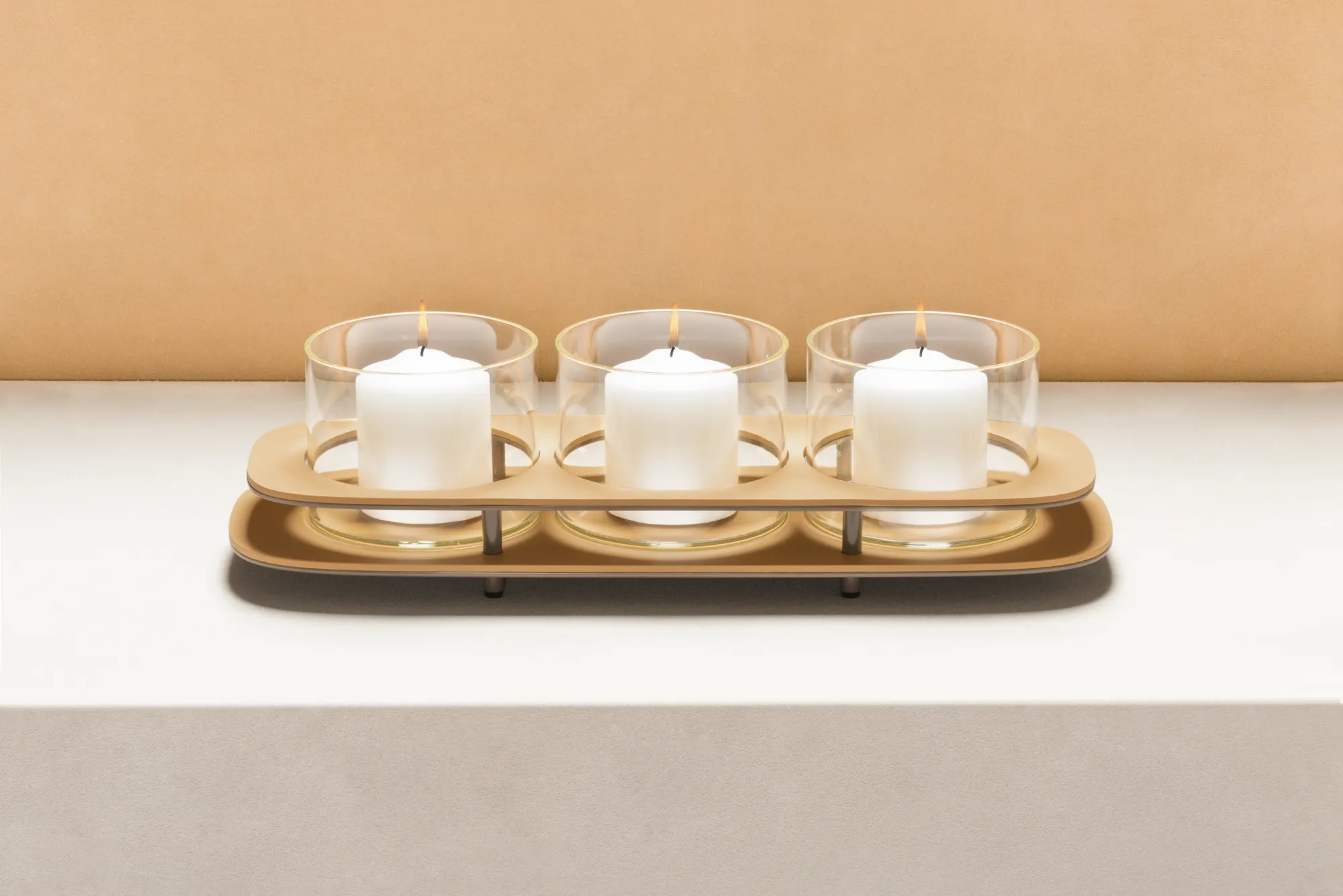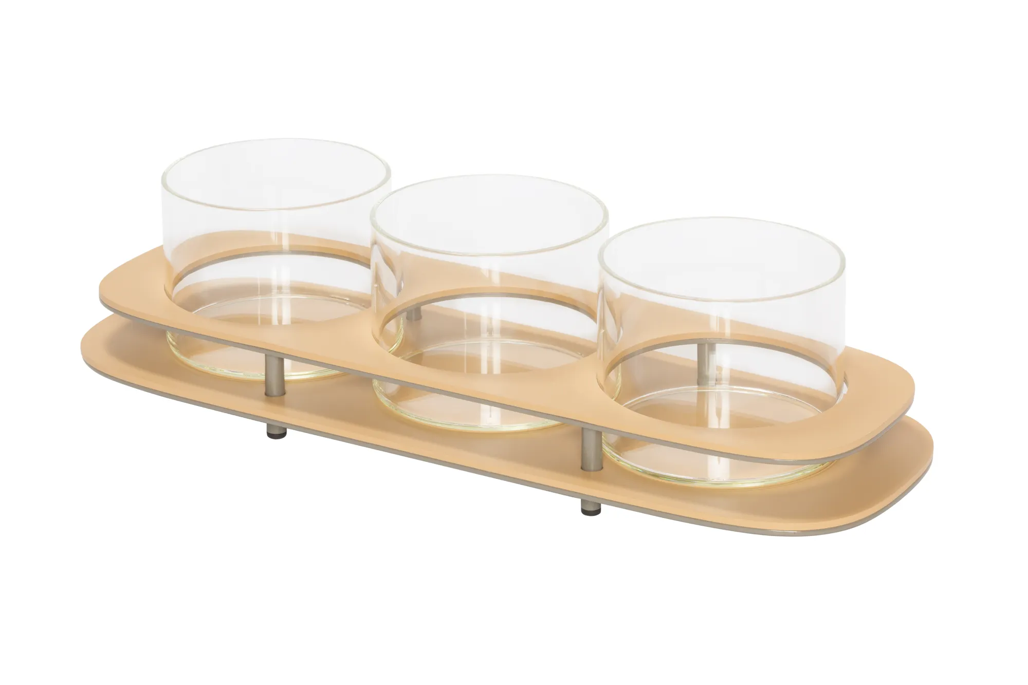 Finest regenerated leather structure with water-resistant and UV-resistant finish. It features polished-chrome inserts and one/three transparent borosilicate glass container/s. The glass is removable for easy cleaning. Design by Simone Fanciullacci.