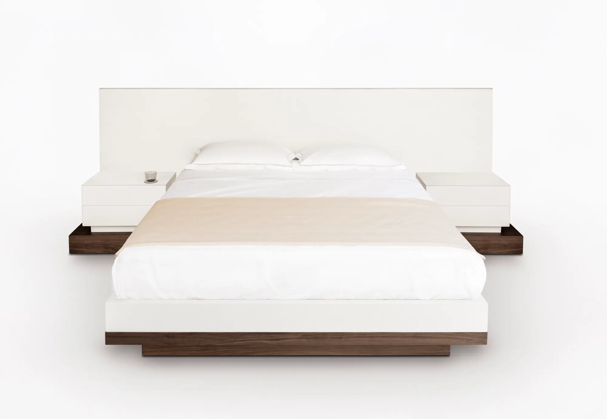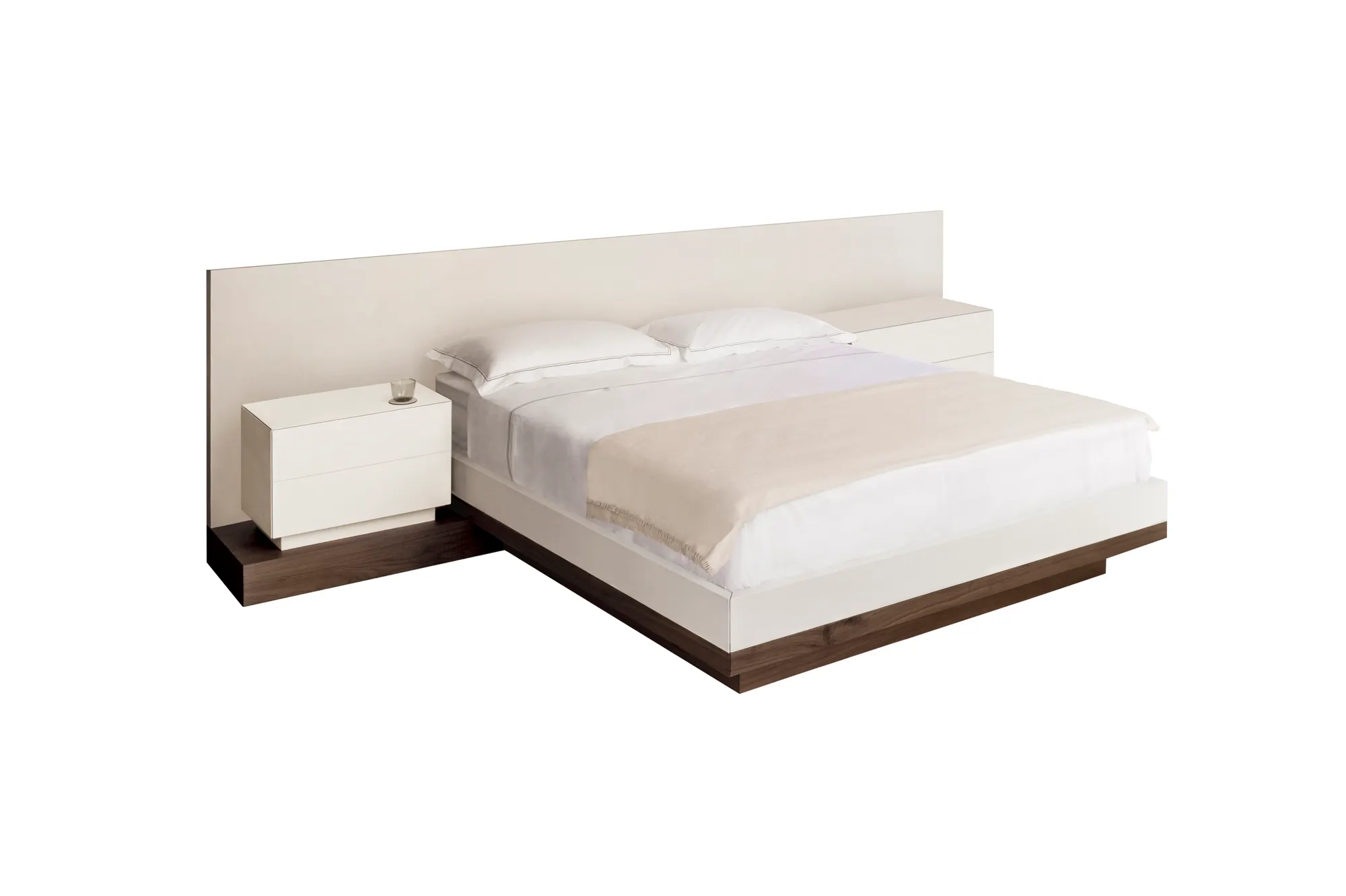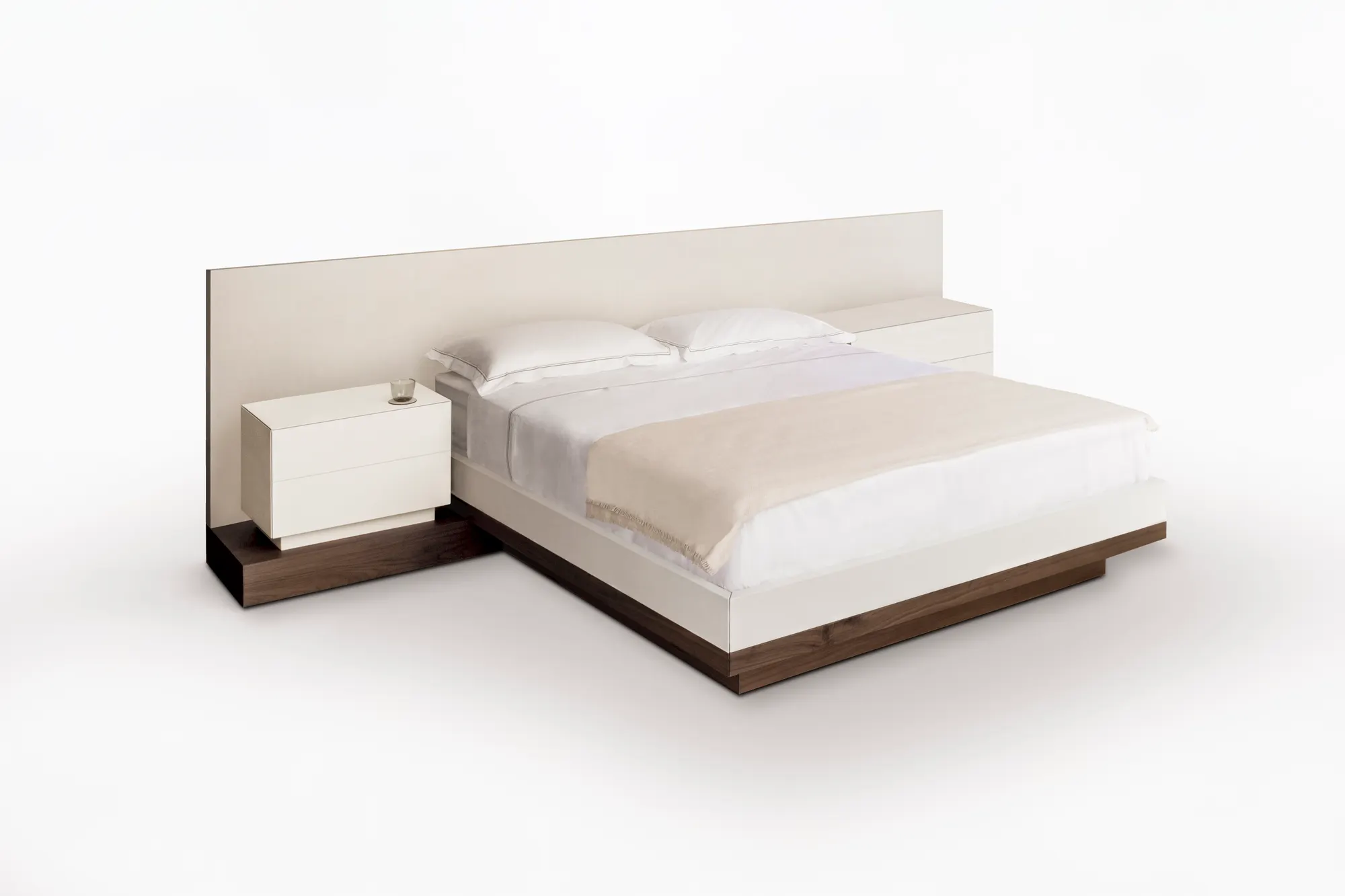 Resulting from the combination of the most skillful craftsmanship with a minimal contemporary design, Horizon boasts both sculptural aesthetics and clever functionality. As an ensemble, it hosts a couple side tables with push-pull mechanism and a mattress that can incorporate a container underneath. All the upper volumes are dressed in the finest Italian leather and float on an elegant wood platform, creating an overall balance of clean lines.