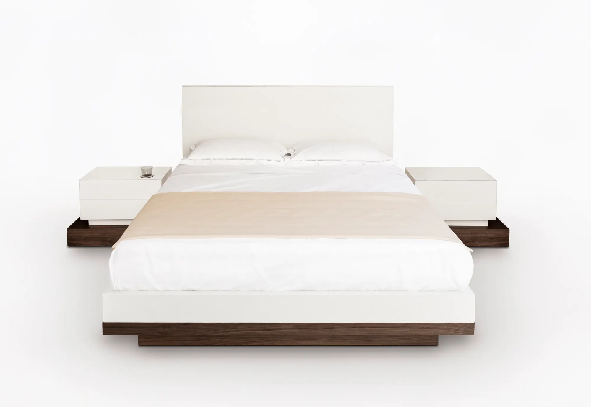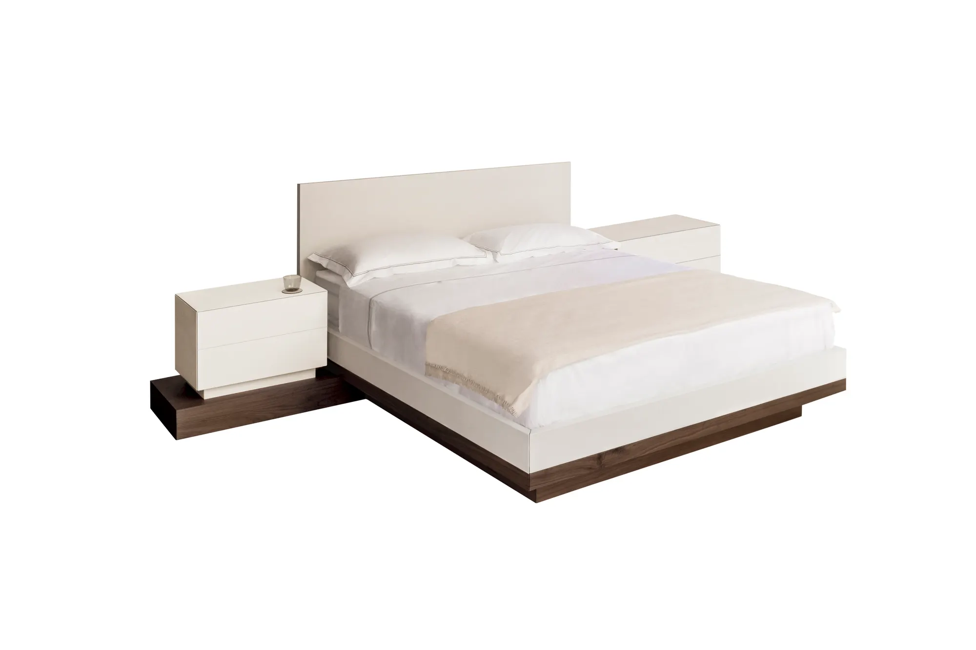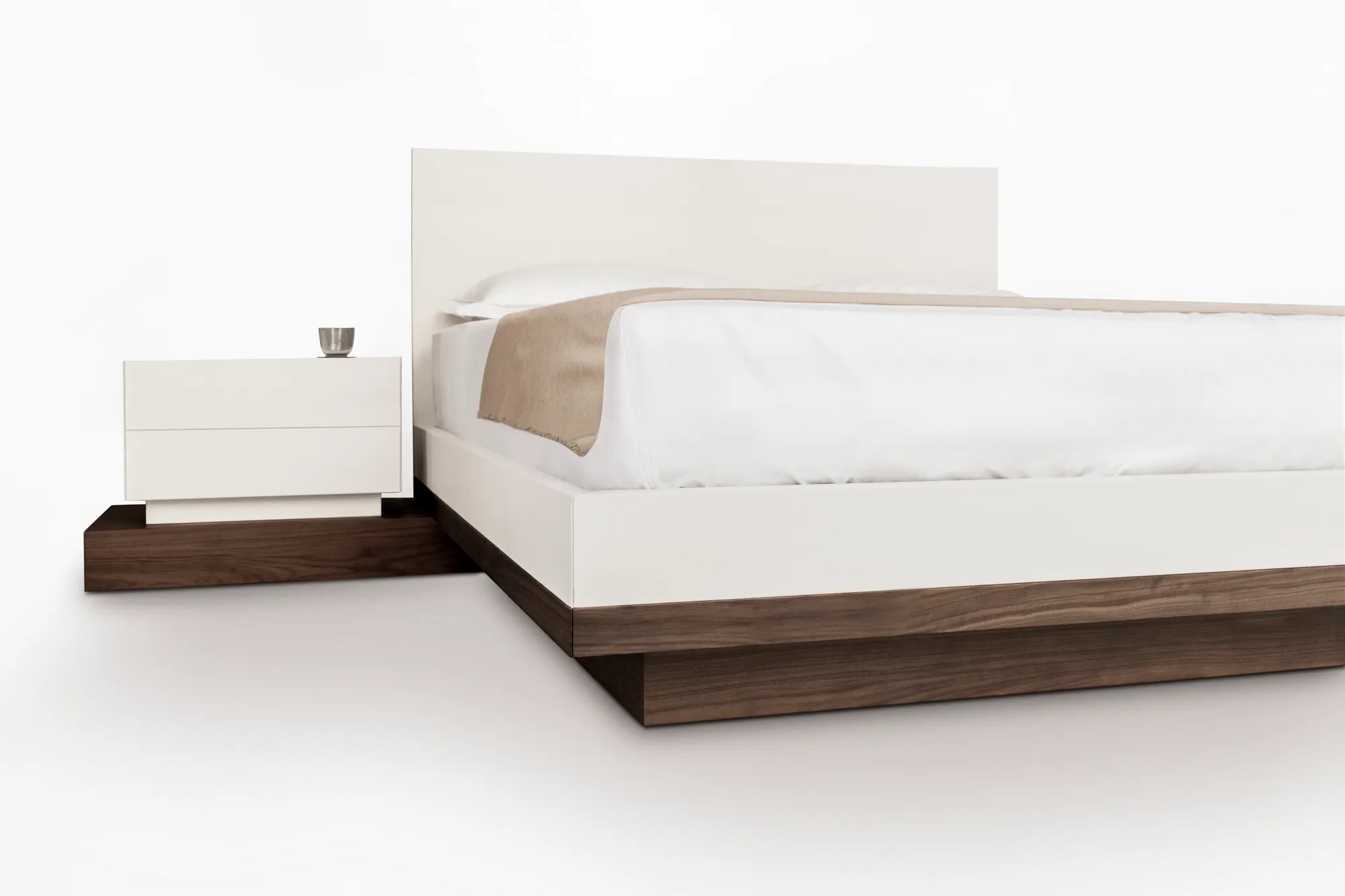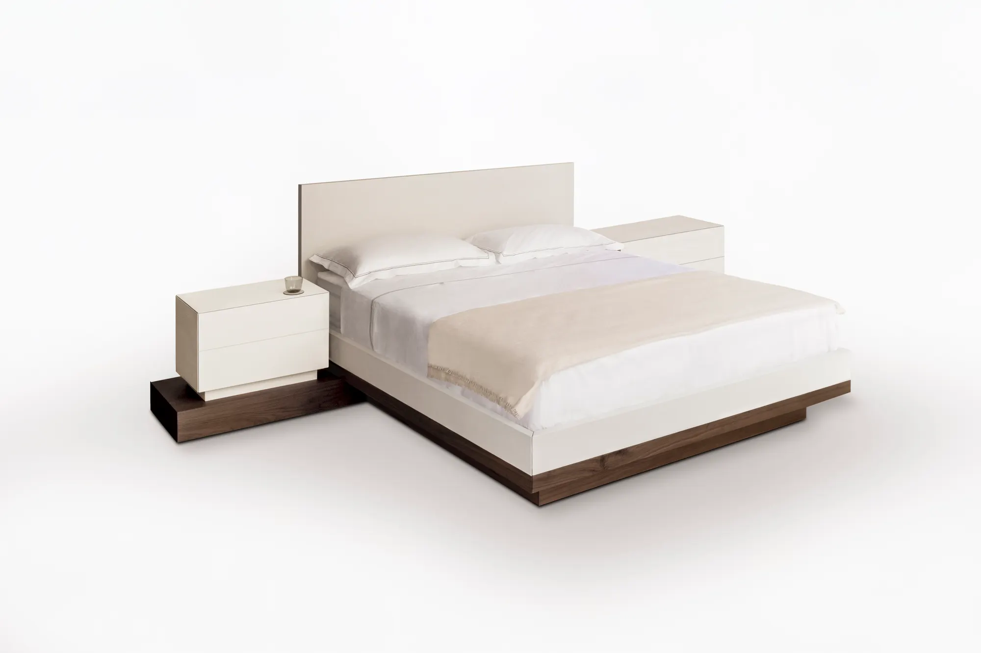 Resulting from the combination of the most skillful craftsmanship with a minimal contemporary design, Horizon boasts both sculptural aesthetics and clever functionality. As an ensemble, it hosts a couple side tables with push-pull mechanism and a mattress that can incorporate a container underneath. All the upper volumes are dressed in the finest Italian leather and float on an elegant wood platform, creating an overall balance of clean lines.