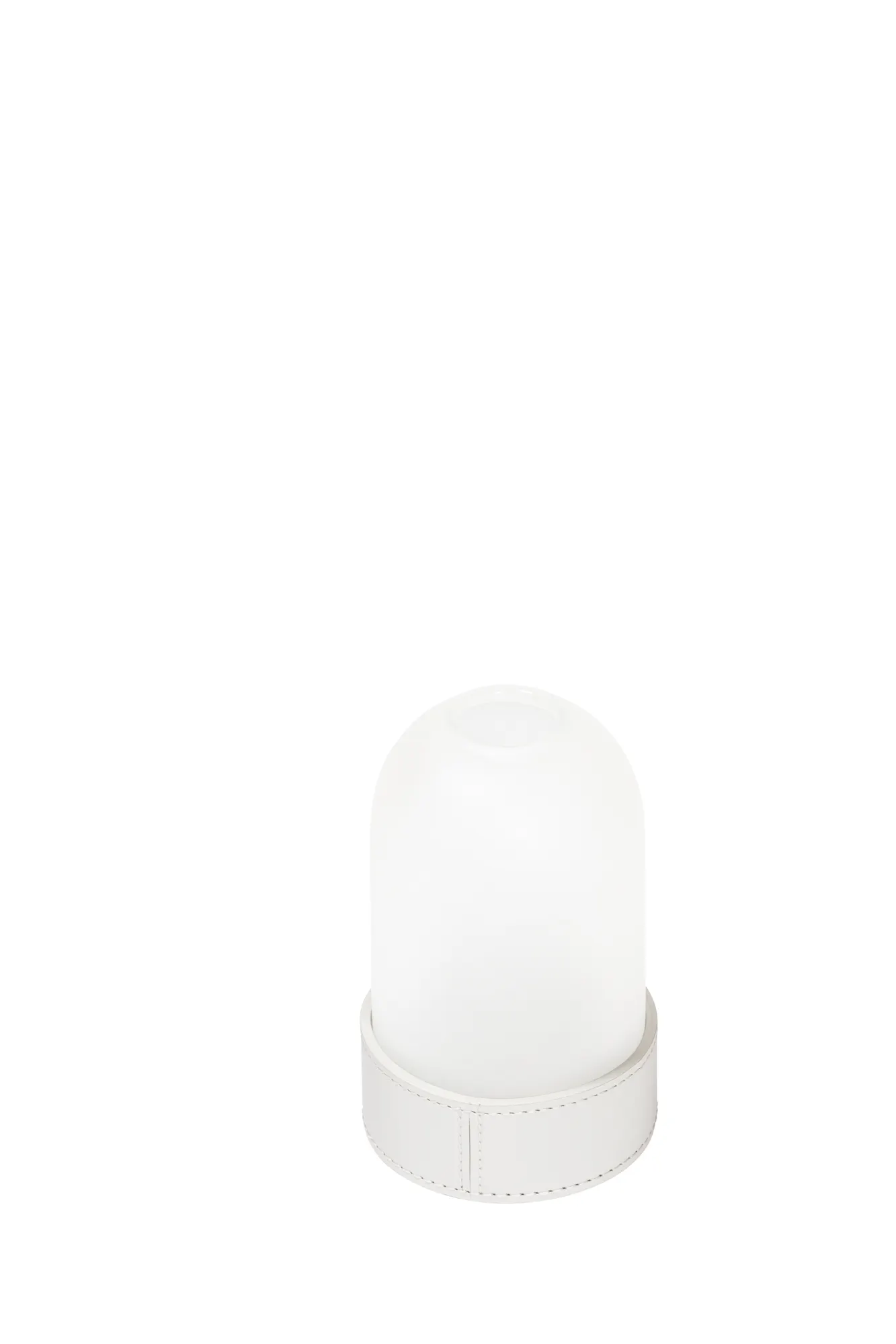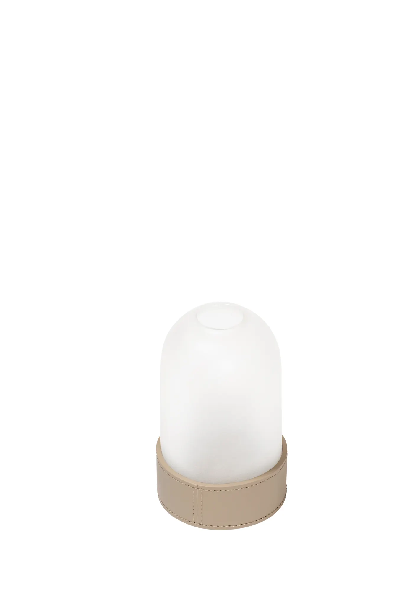 Hotaru lanterns serve as versatile accents able to enhance their surroundings. A finest regenerated leather base with water-resistant and UV-resistant finish hosts a removable frosted borosilicate glass cap which emanates a subtle, diffused glow creating enchanting atmospheres.