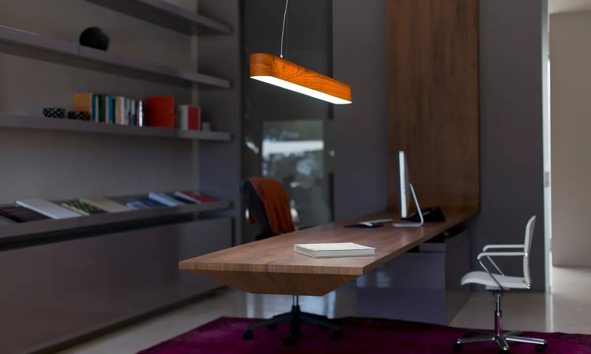 I-CLUB SLIM THE SYMMETRICAL LIGHT. Designed by Burkhard Dämmer, I-Club epitomises the use of clean lines in good design. The symmetrical beauty of this lamp is evident across each of its forms. Available as a Short or Long lighting fixture, the I-Club Slim Suspension has the option of a black or white top diffuser (black preventing any upward light), and a matt satin acrylic bottom diffuser. This sharp and elegant lamp is especially ideal for any environment requiring directional, downward lighting, for example, above a desk or kitchen surface. The I-Club Slim Suspension is also striking when arranged in a uniform formation. The I-Club Slim Suspension is available in the following wood veneers: Natural Cherry, Ivory White, Natural Beech, Yellow, Orange, Red, Blue, Grey, Pale Rose, and Sea Blue.