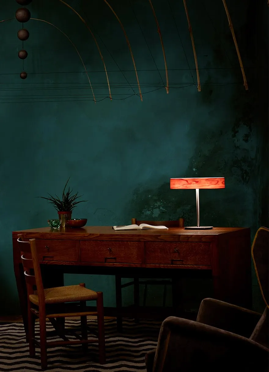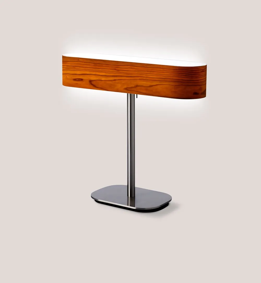 I-CLUB THE SYMMETRICAL LIGHT. Designed by Burkhard Dämmer, I-Club epitomises the use of clean lines in good design. The symmetrical beauty of this lamp is evident across each of its forms. The I-Club Table is both sharp and refined. This elegant lamp will accentuate any space on which it is placed. The I-Club Table is available in the following wood veneers: Natural Cherry, Ivory White, Natural Beech, Yellow, Orange, Red, Blue, Grey, Pale Rose, and Sea Blue.