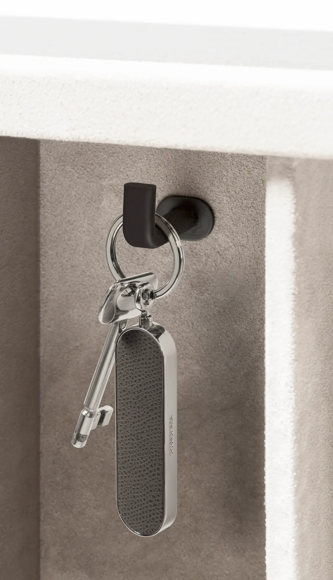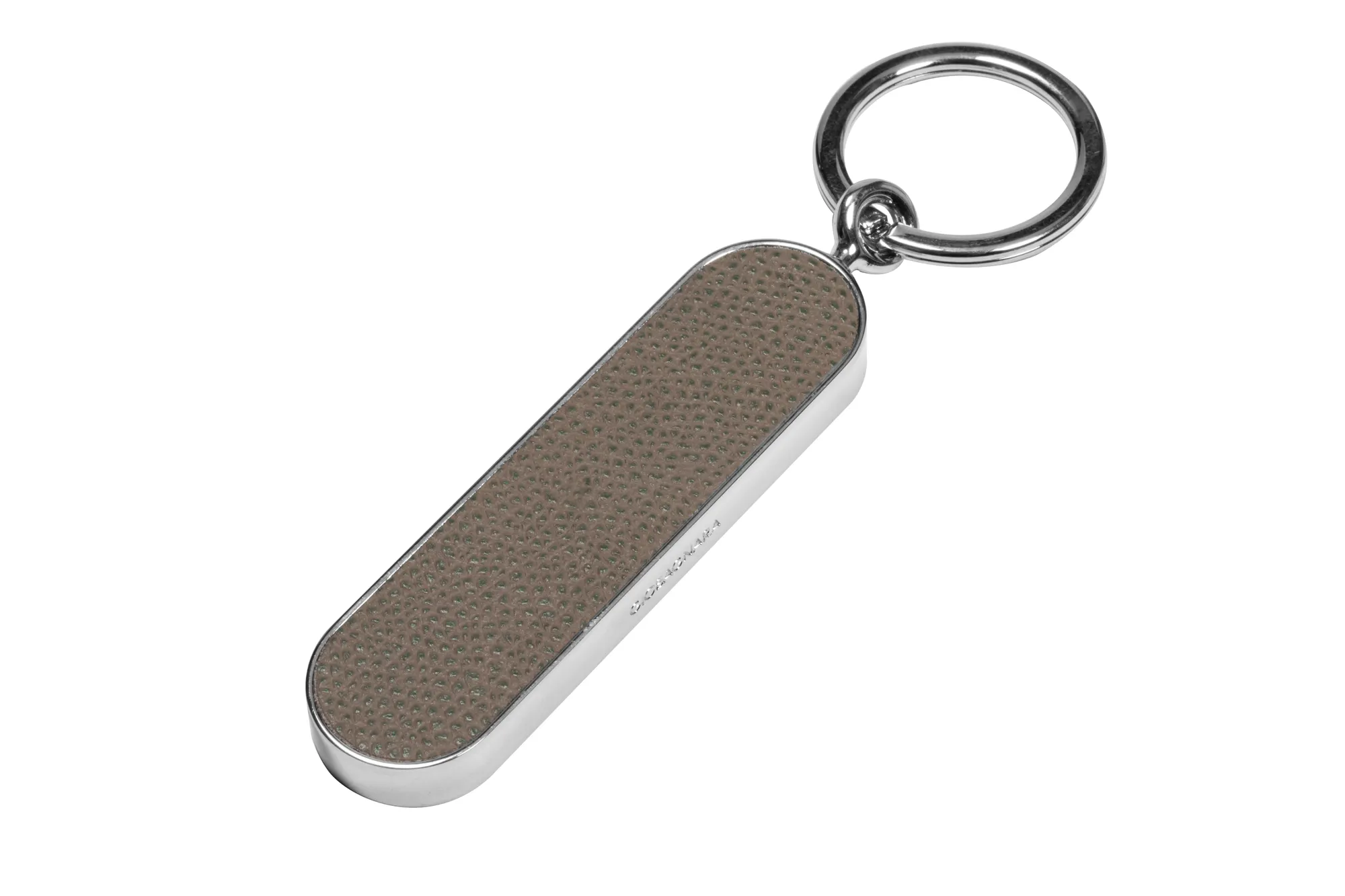 Heavy double-sided keyring featuring fine leather inserts framed by a precious palladium-plated border. Opt for the real shagreen or the real crocodile version for something unique. Ideal for hospitality.