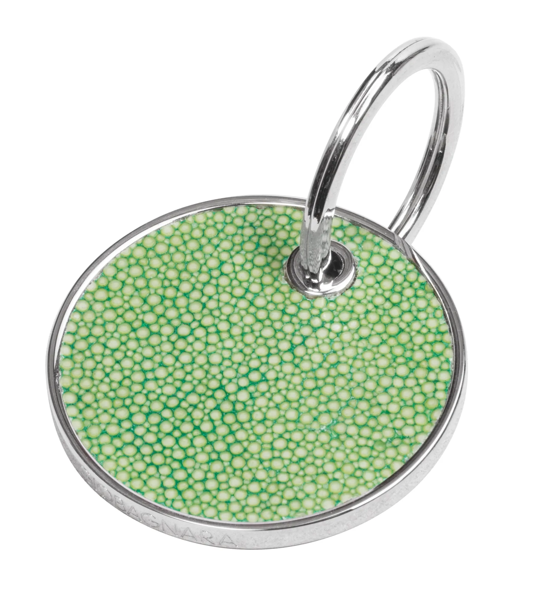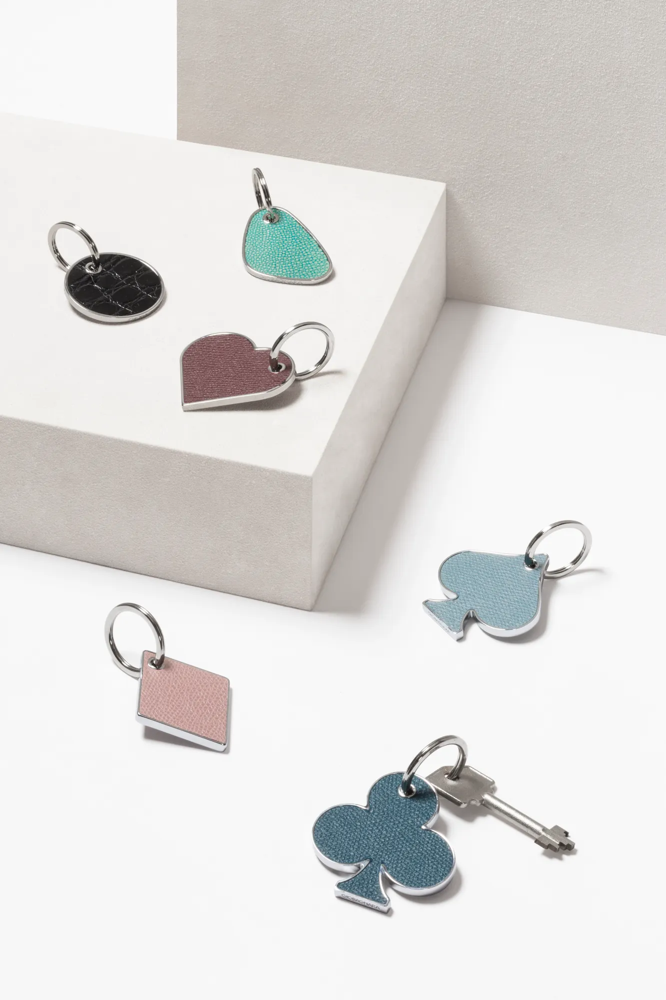 A series of double-sided keyrings featuring iconic shapes where the leather is framed by a precious palladium-plated border. Opt for the real shagreen or the real crocodile version for something unique.