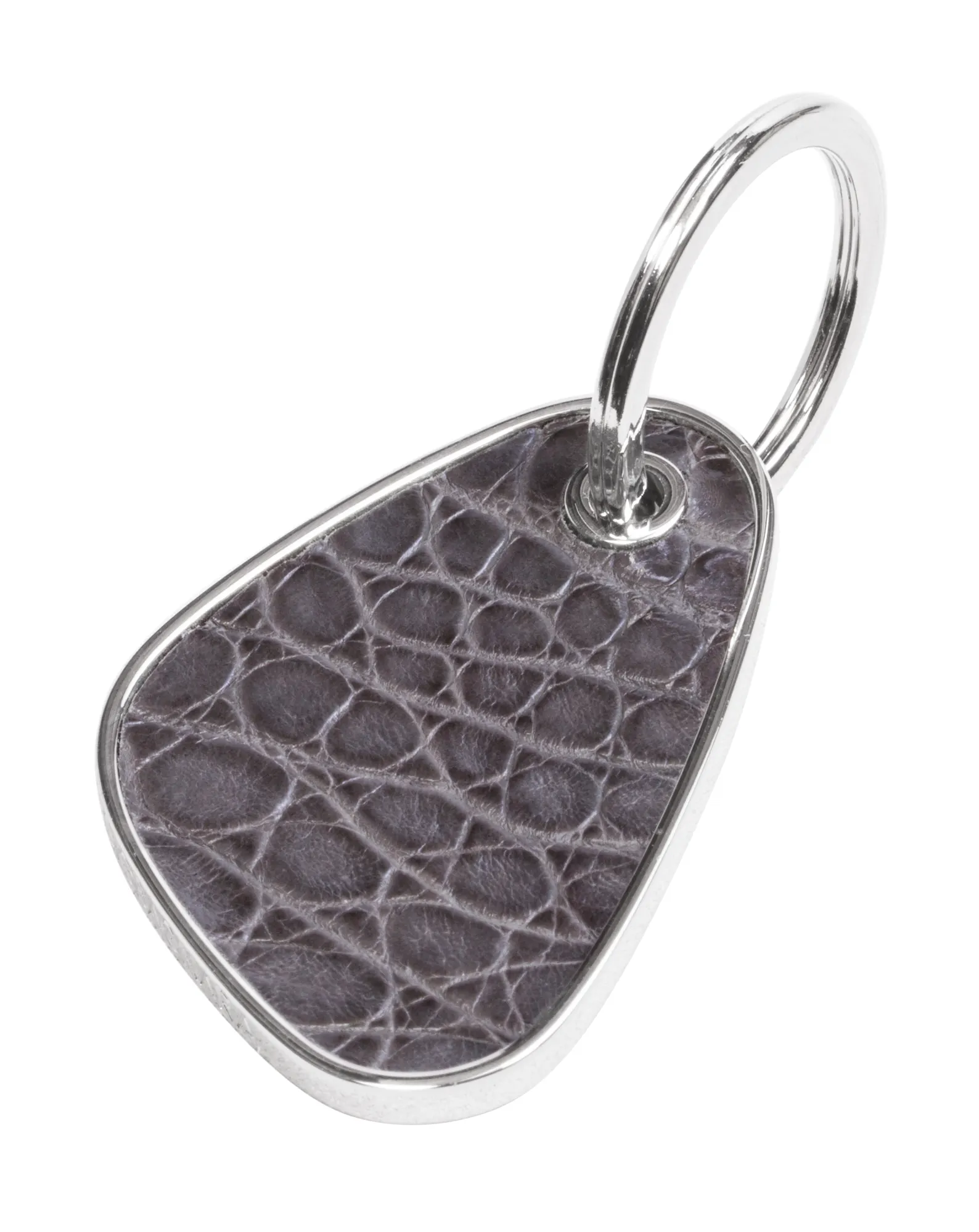 A series of double-sided keyrings featuring iconic shapes where the leather is framed by a precious palladium-plated border. Opt for the real shagreen or the real crocodile version for something unique.