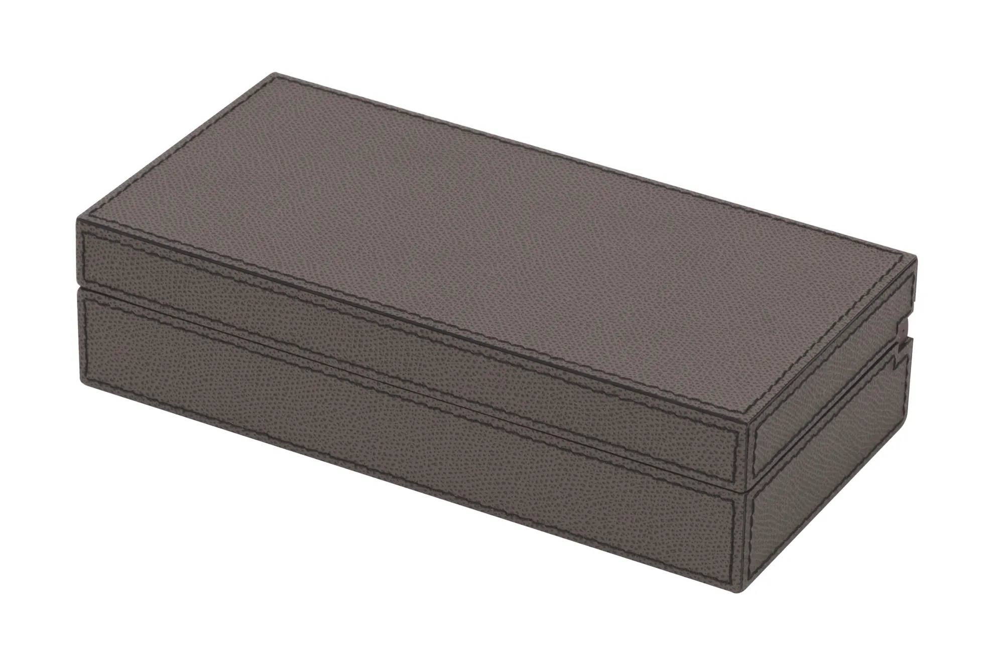 Leather covered walnut case with walnut hinge. Provided with 12 inner partitions.