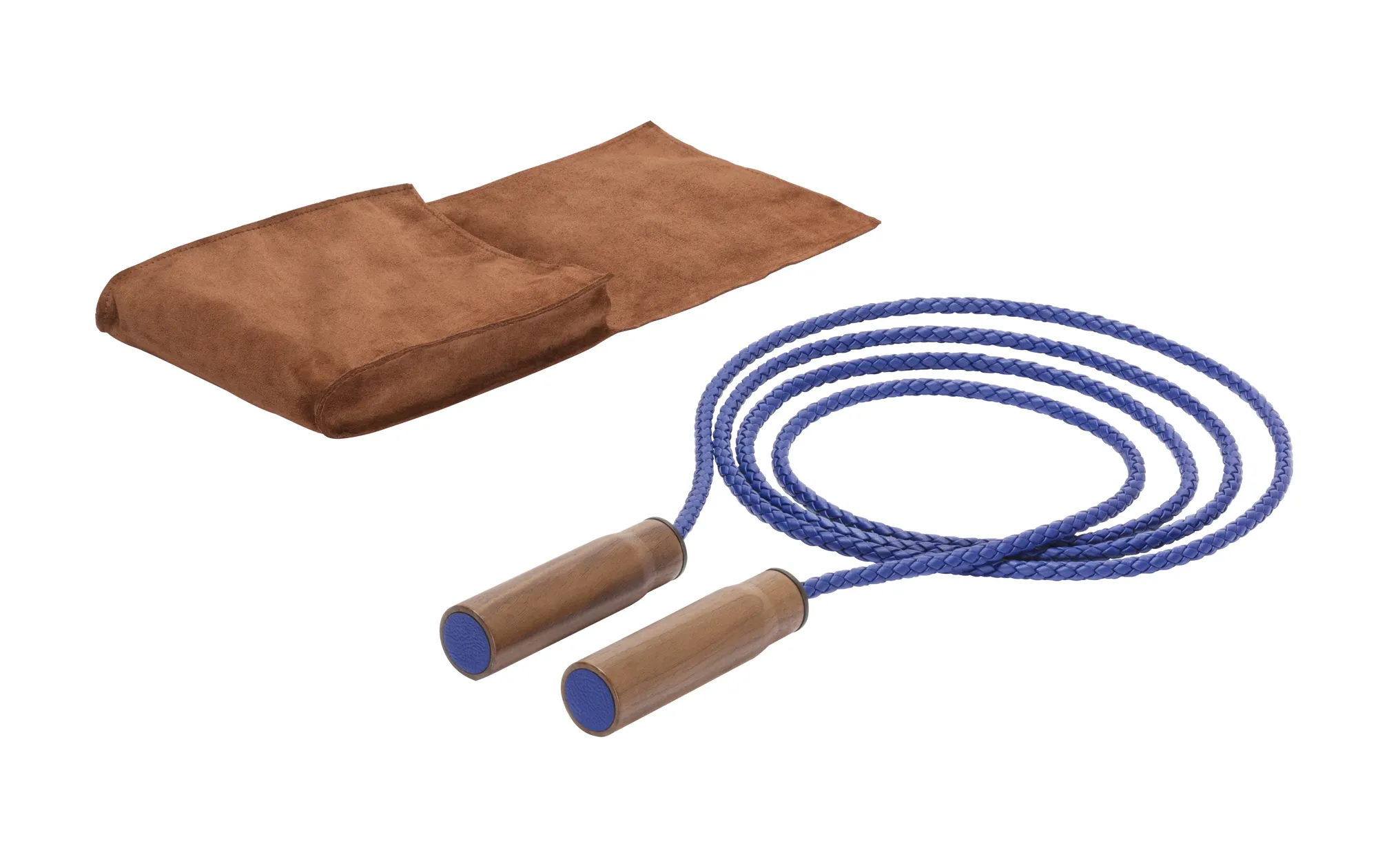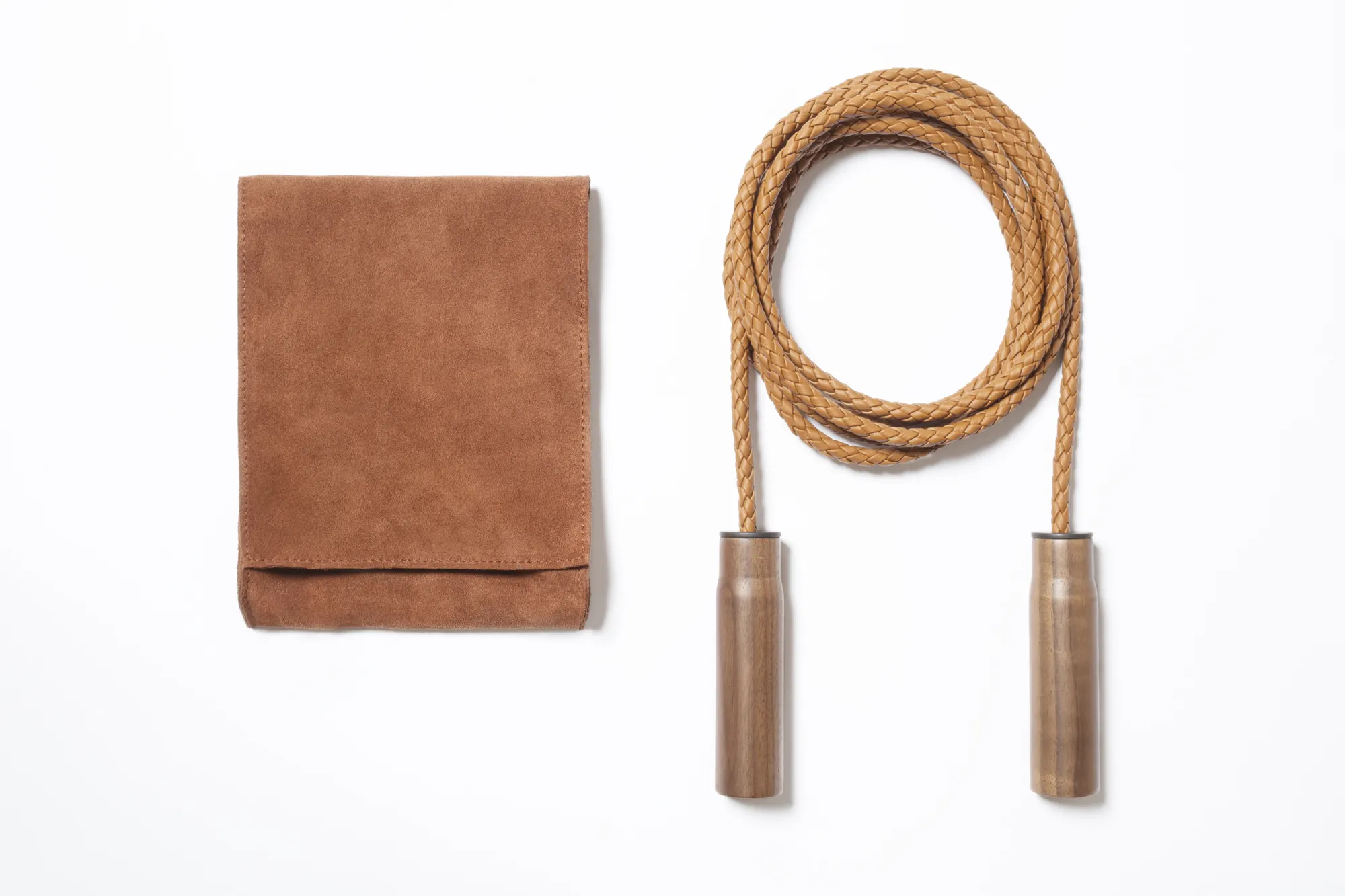 This jump rope is a sporty yet stylish accessory that can be used for both home workouts and as an eyecatching decor thanks to the finely woven leather rope. Leather cord made of woven leather from the Pelle Frau®. Handles made of walnut wood featuring fine leather inserts on both sides.