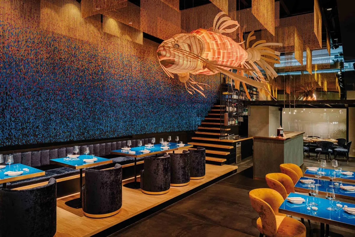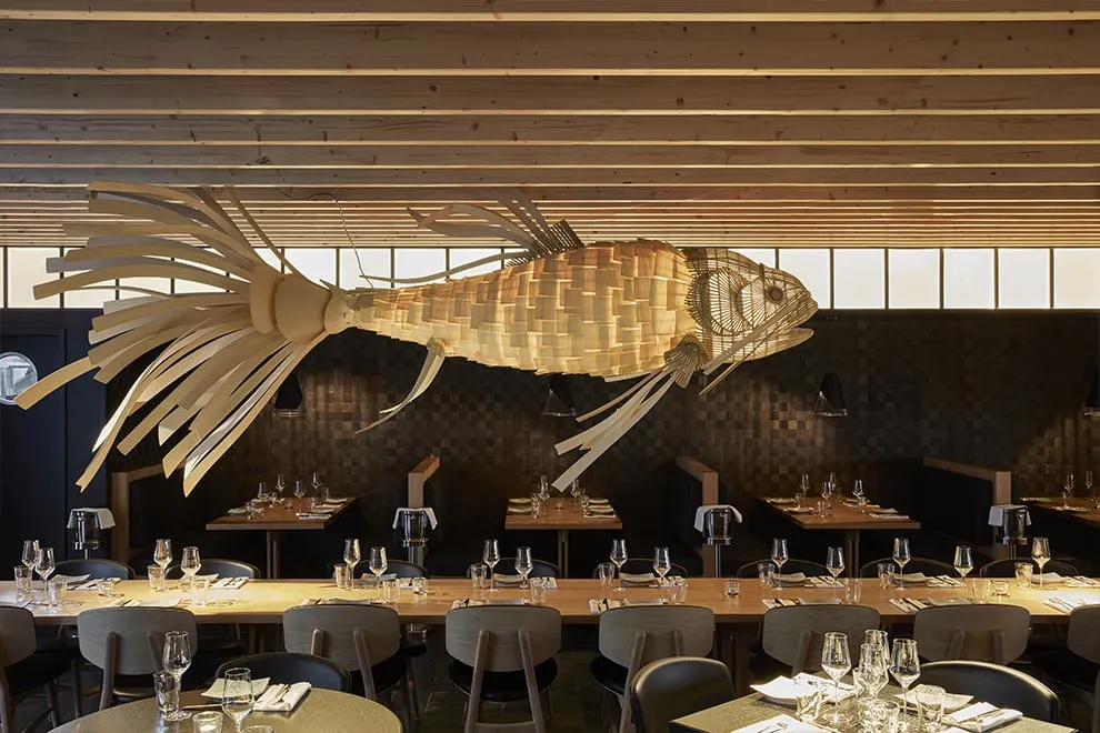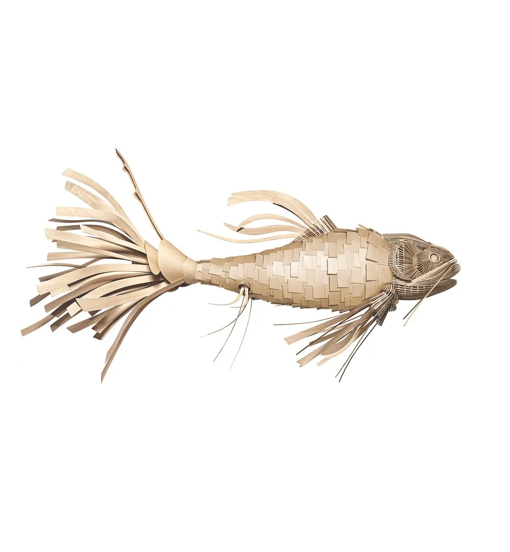KOI THE SURREAL LIGHT. Part pendant, part sculpture, Koi is a dramatic and decorative light that appears as a surreal wooden creature. Clever, playful and artistic, Koi is a carp whose being is the brainchild of Inocuo The Sign and LZF Lab. Koi has an ethereal beauty: engendering a considerable sense of wonderment, its animated form captivates the eye. Cutting an imposing figure, it offers the perfect lighting climax. Koi was inspired by an interlacing wood system and the translucent qualities this brings about when illuminated. The overlaying of wooden slats, similar to fish scales, is dubbed the Koi Fabric. Made by hand, employing traditional Valencian carpentry skills, Koi is a veritable wonder to behold. As well as the Koi, the smaller Kogoi is also available, and is as dramatic, intricate and decorative as its larger sibling. Each Life Size piece is unique, as evidenced by the artisan’s handcraftsmanship in each one of them, the finish of each one is different and the raw materials used, without hiding their original nature, highlight their uniqueness, providing a coherent discourse with the artist’s intention.