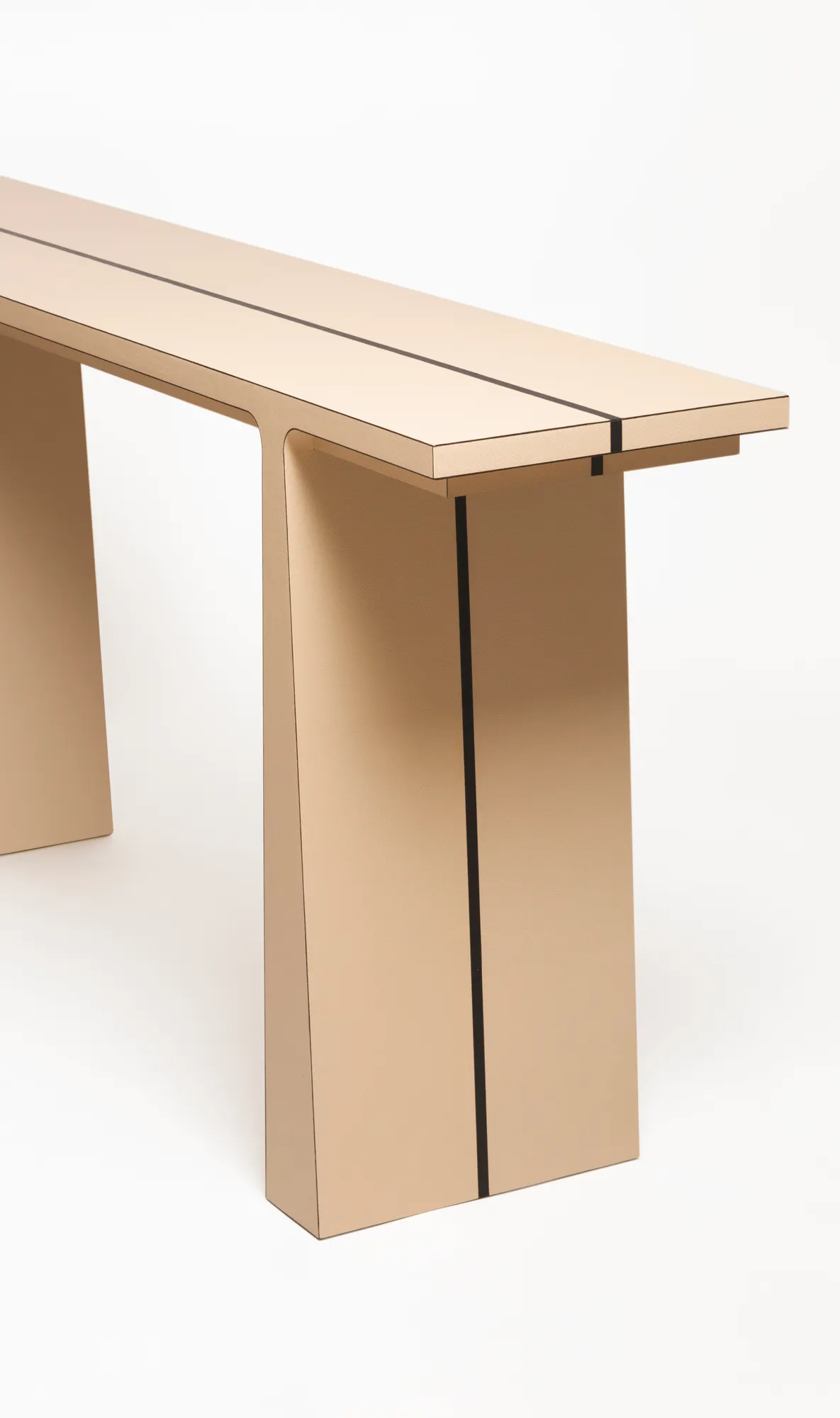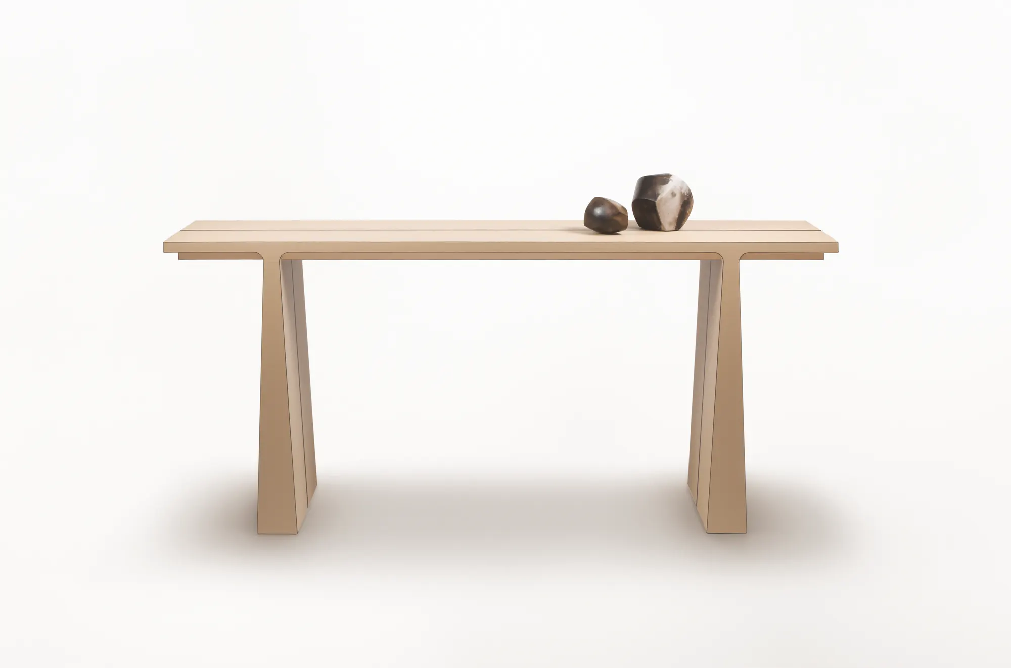 La Linea ("the Line" in Italian) is a name that describes the pleasing visual quality of this collection of tables, desks and consoles where fields of colour are separated by a thin line, as in the paintings of Barnett Newman. The curves of the legs, a reminder of the array of diverse shapes that occur in nature, connect with ordered rectilinear forms of the upper part by a seamless transition in the geometry.