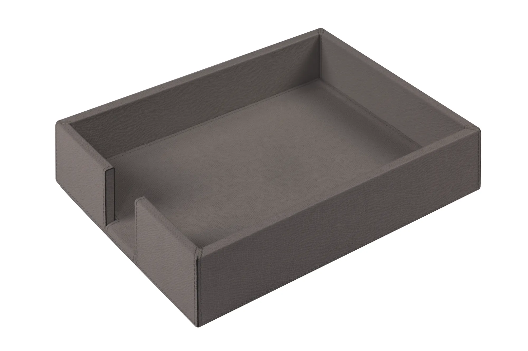 A4 PAPER TRAY. Leather covered wood structure. Optional lid. A double level base with different dimensions makes this pieces stackable.