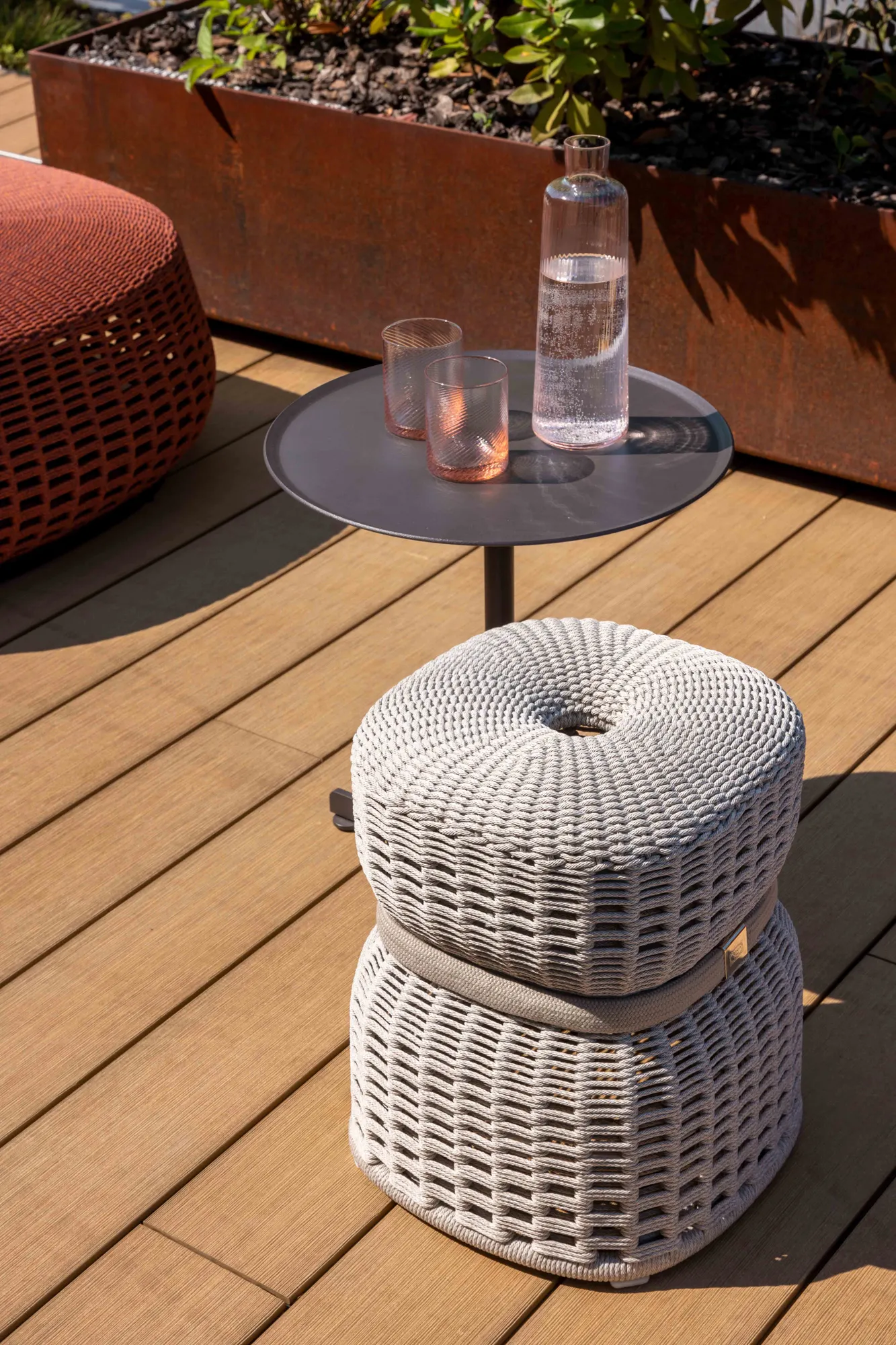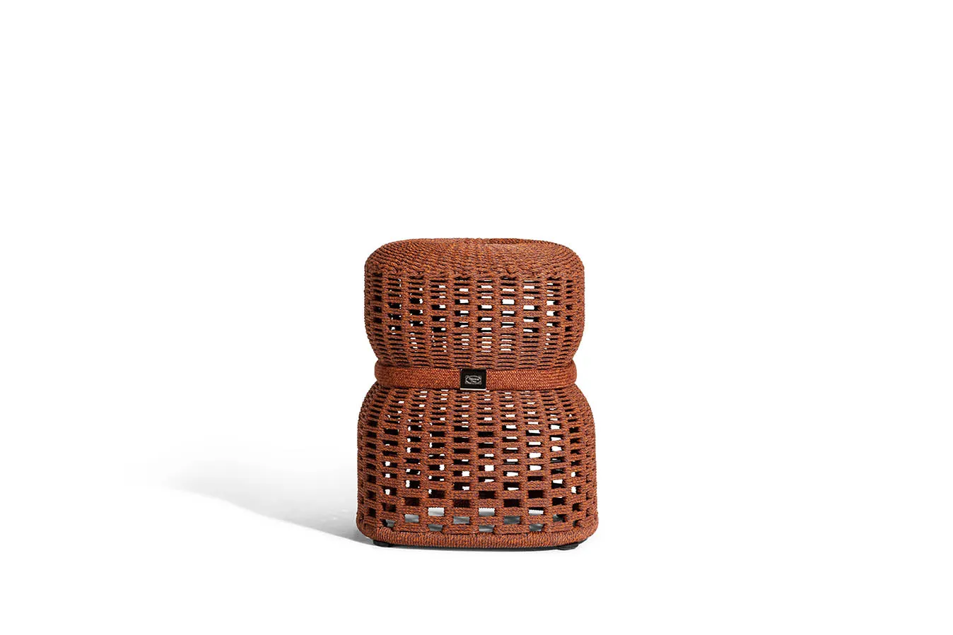 Leplì is a stool, bench and pouf. Kensaku Oshiro designs four versatile pieces with a strong identity. The designer draws on traditional Poltrona Frau processes and decorations, combining them with sartorial details borrowed from the world of fashion. Classic stitching and soft folds bring out the sinuous simplicity of the design. The voluptuous curves of the stool, in particular, are inspired by the female form and, like in a dress, a slender belt highlights her “waist”.