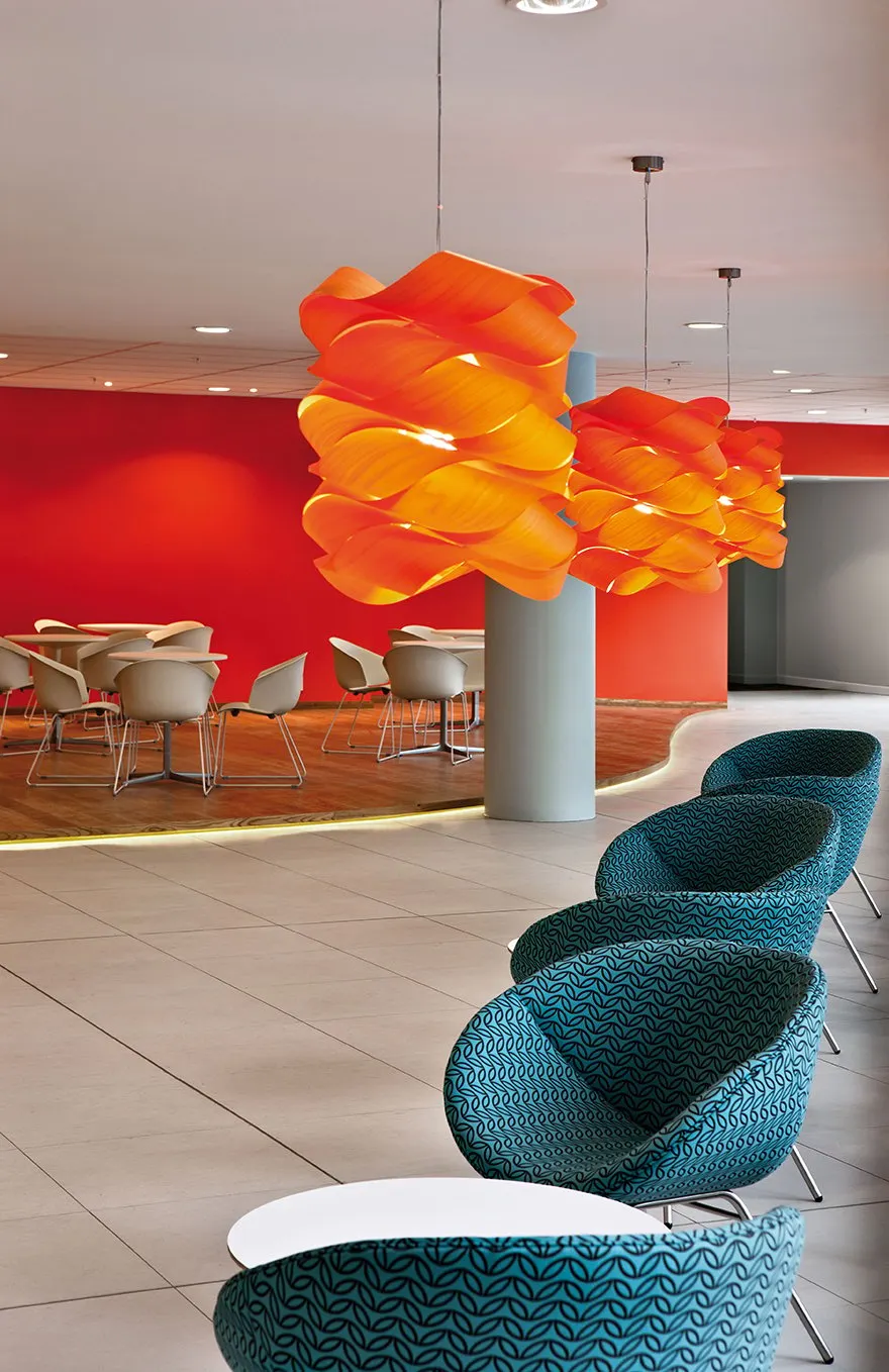 LINK CHAIN THE HEROIC LIGHT. The Link Chain is a pendant that immediately draws the eye. Resplendent in its precise arrangement, the Link Chain is especially heroic: bold and venturesome, prodigious and grand. Adding an element of drama to its surroundings, the Link Chain decorates, illuminates and captivates. The Link Chain was conceived by Mariví Calvo and Ray Power. Using the Link Modular suspension lamp, the Link Chain is constructed with three, four or six modules. The effect is quite remarkable: the billowy, cloud-like Link modules are fastened together, metamorphosing into a heroic tower of light.