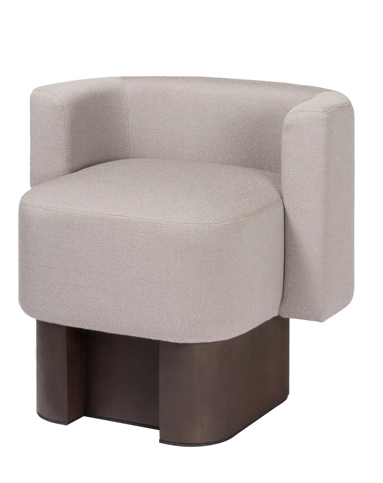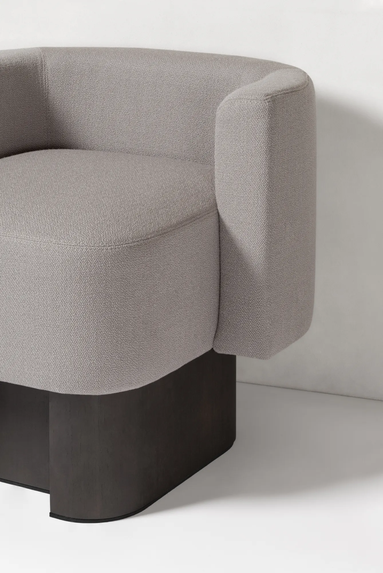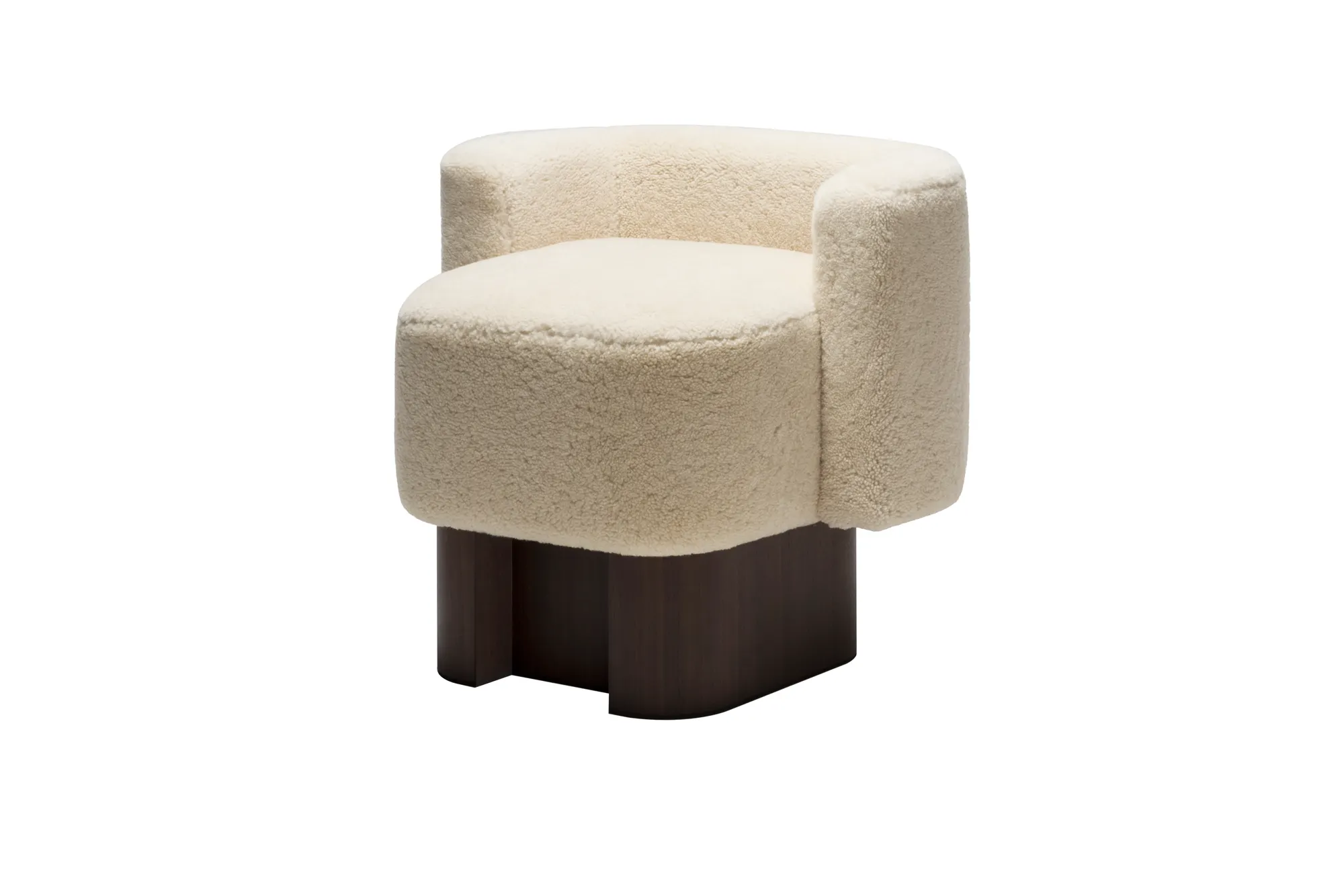 Materials: dark-stained Canaletto walnut wood & cashmere and wool.