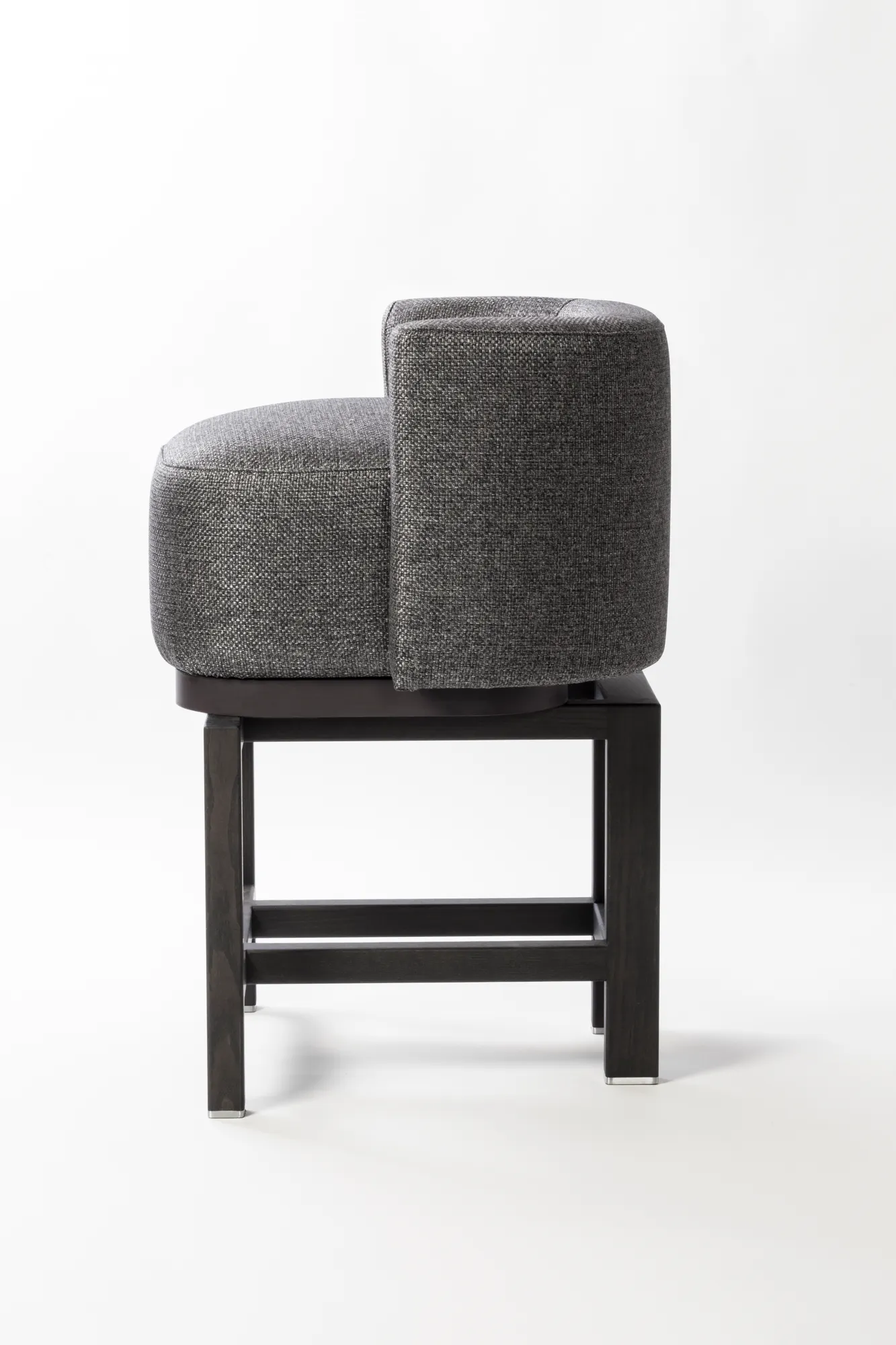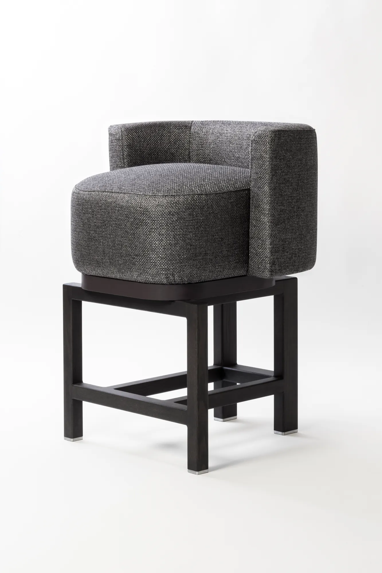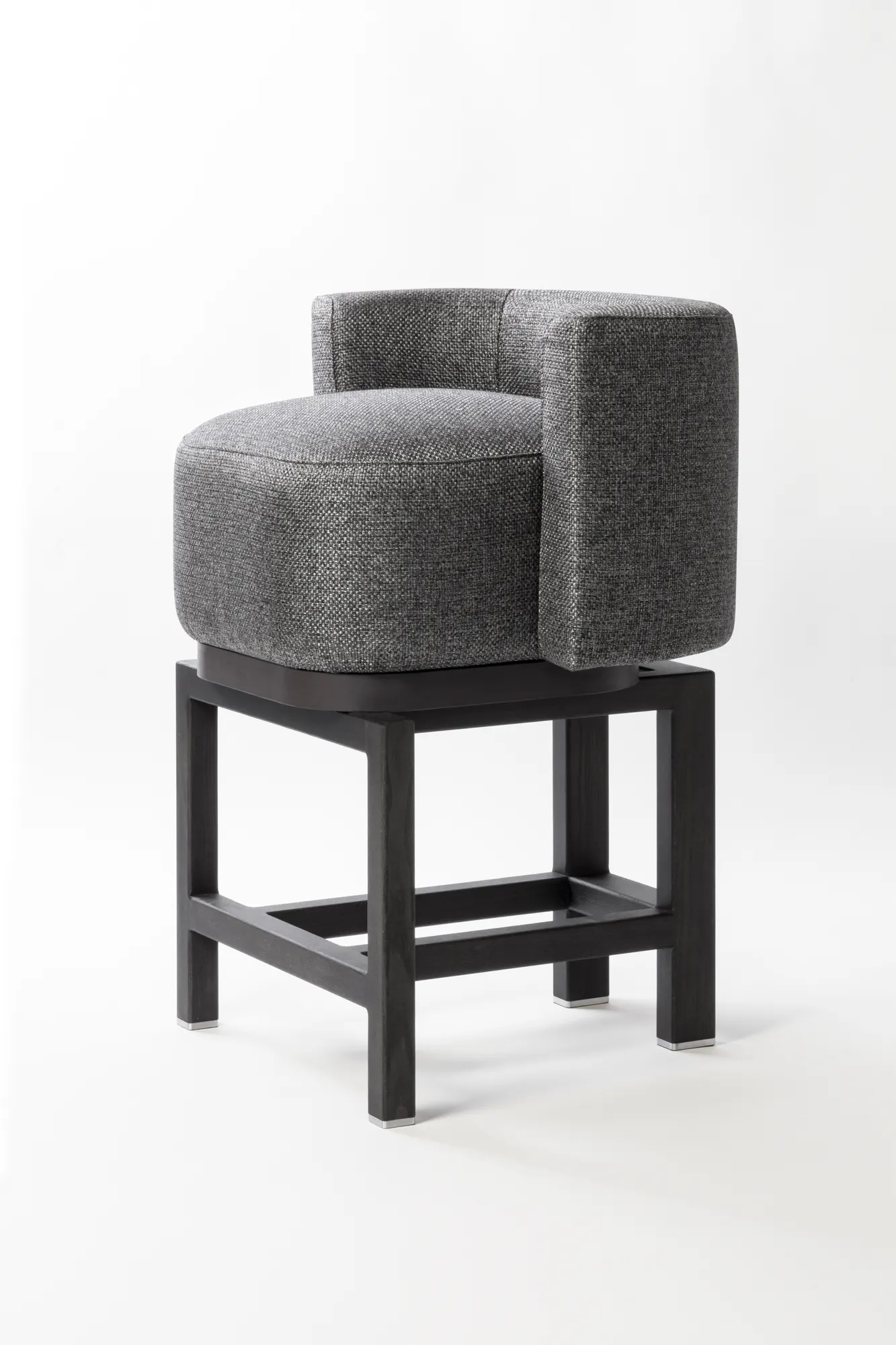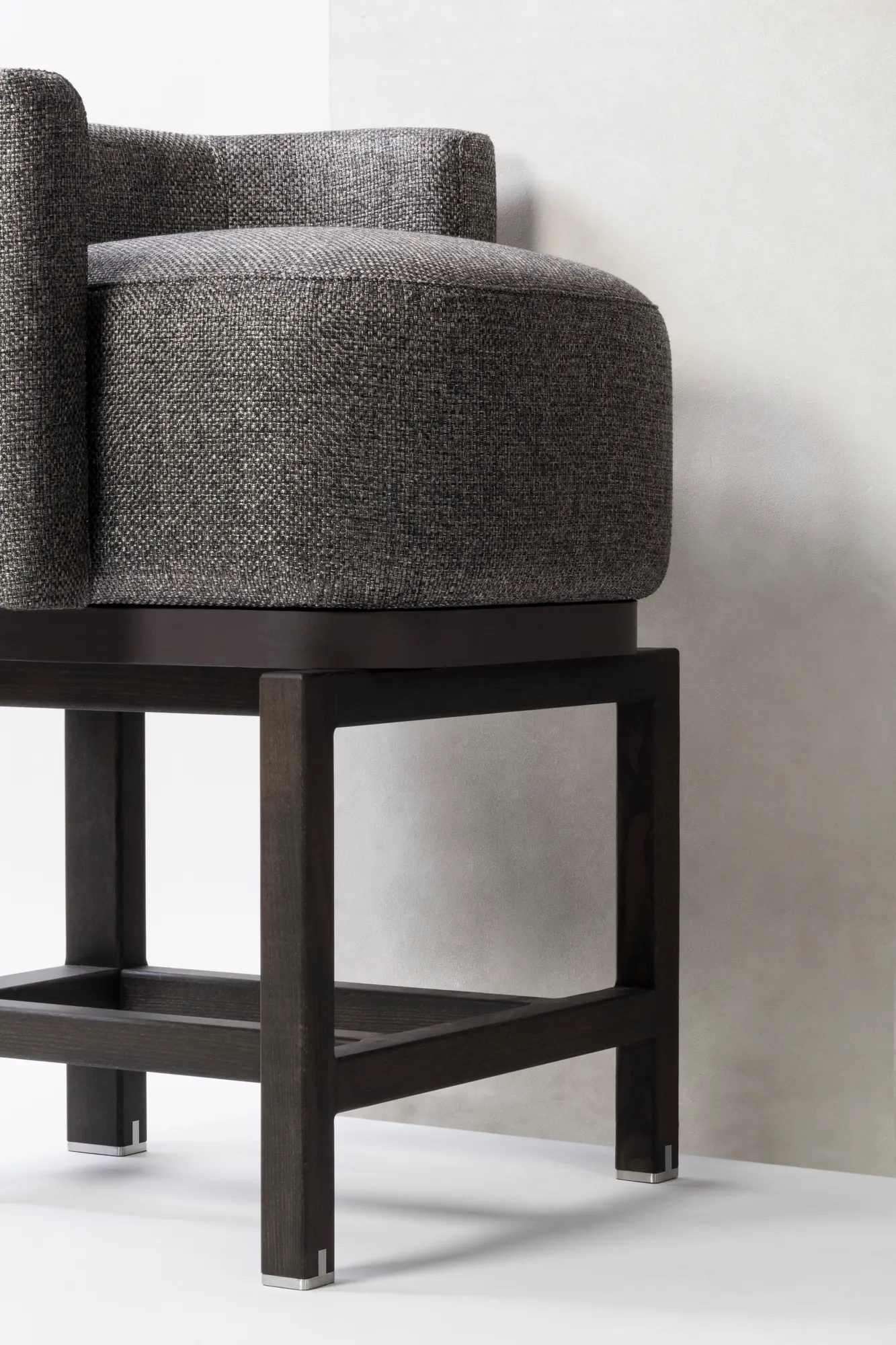 Materials: top in cashmere and wool, base in dark-stained Canaletto walnut wood. Provided with inox or brushed bronze decorative feet. Custom sizes available on request.