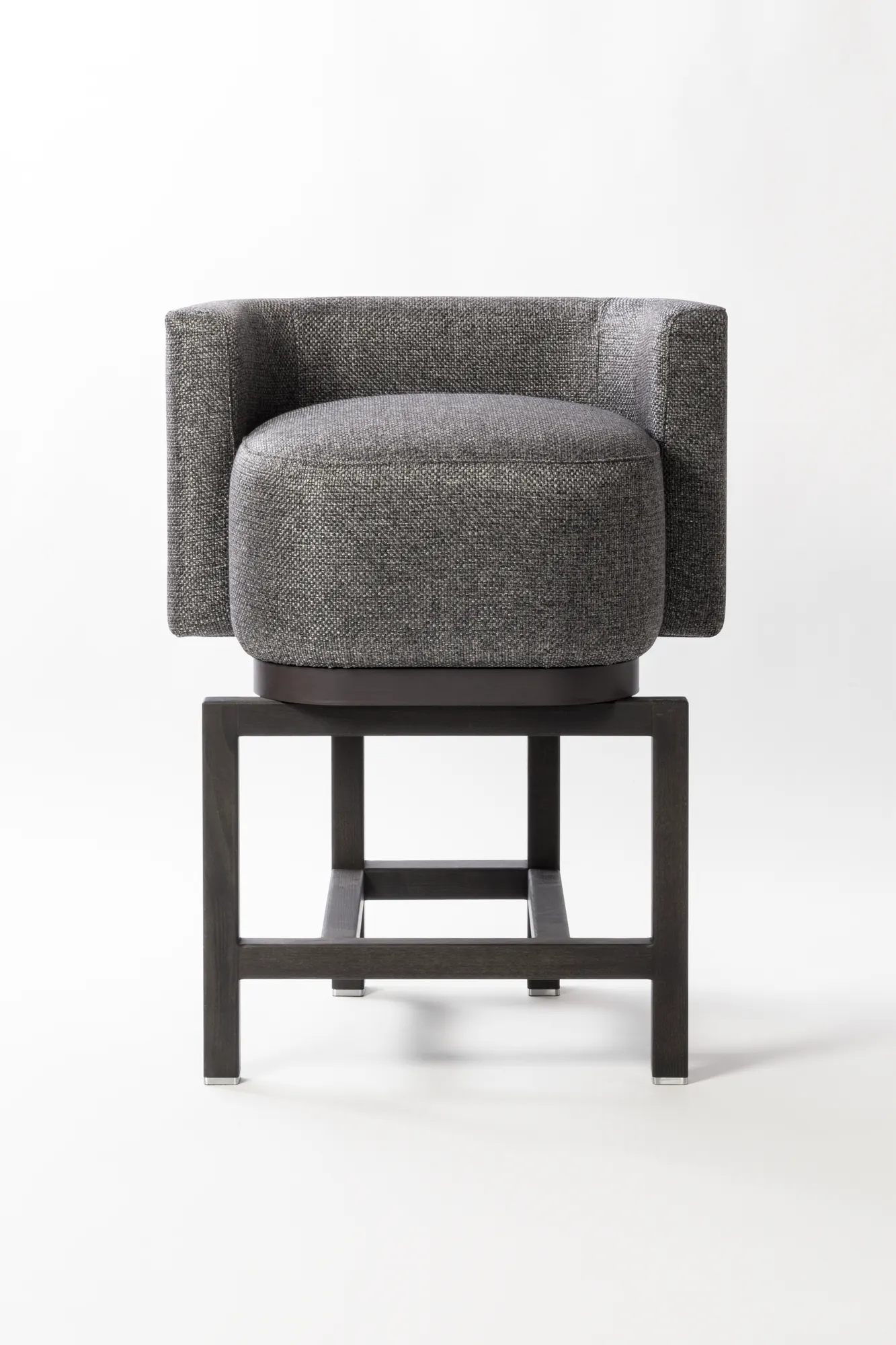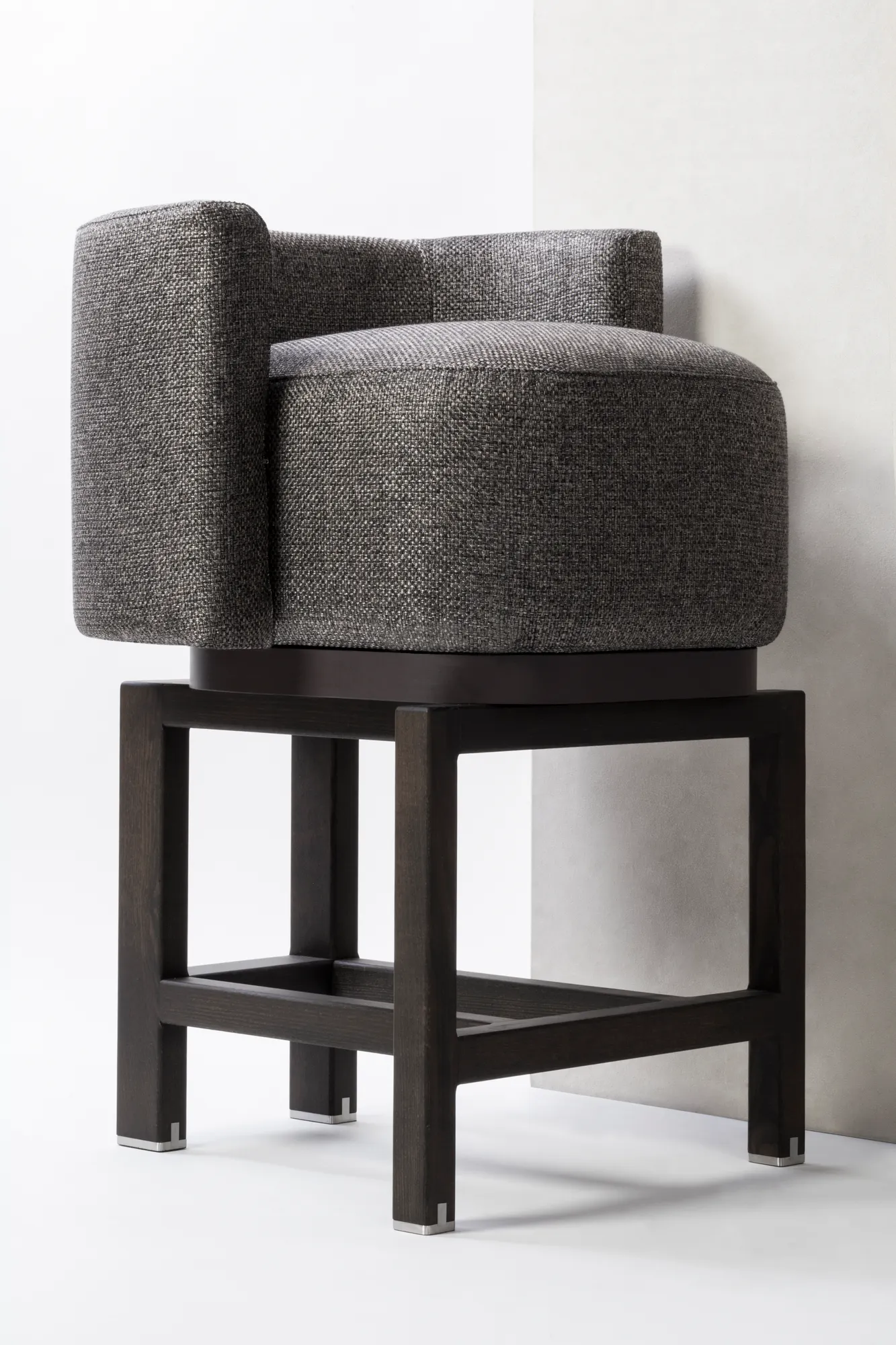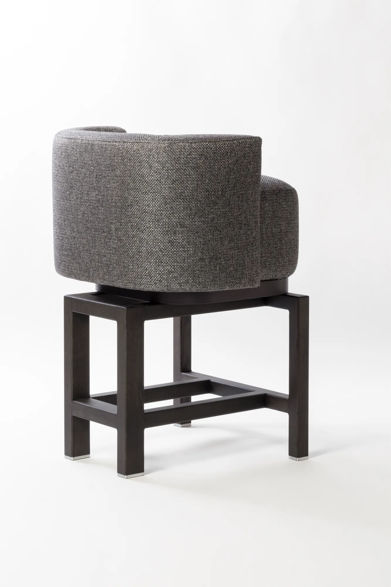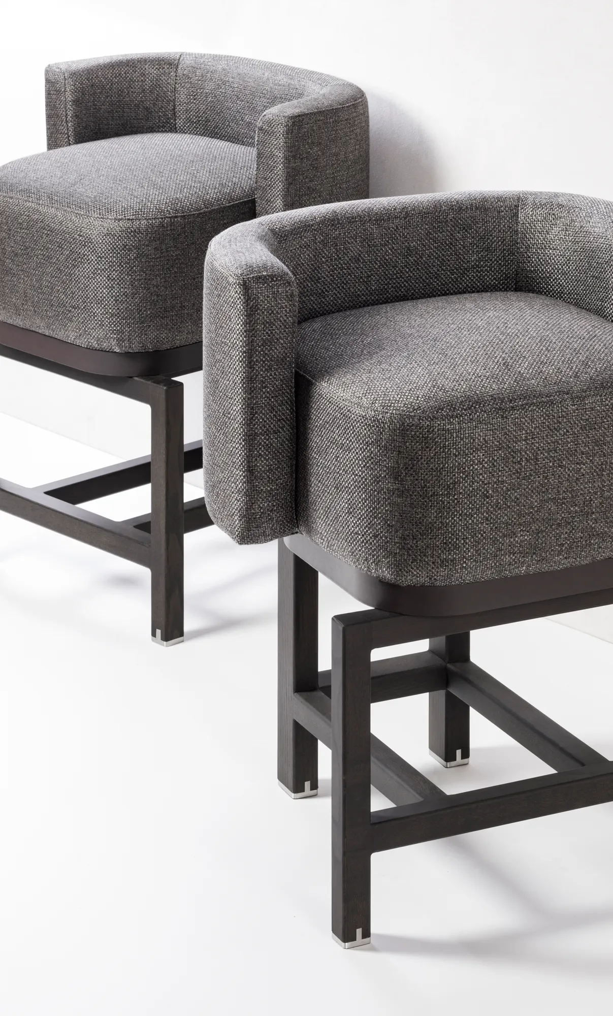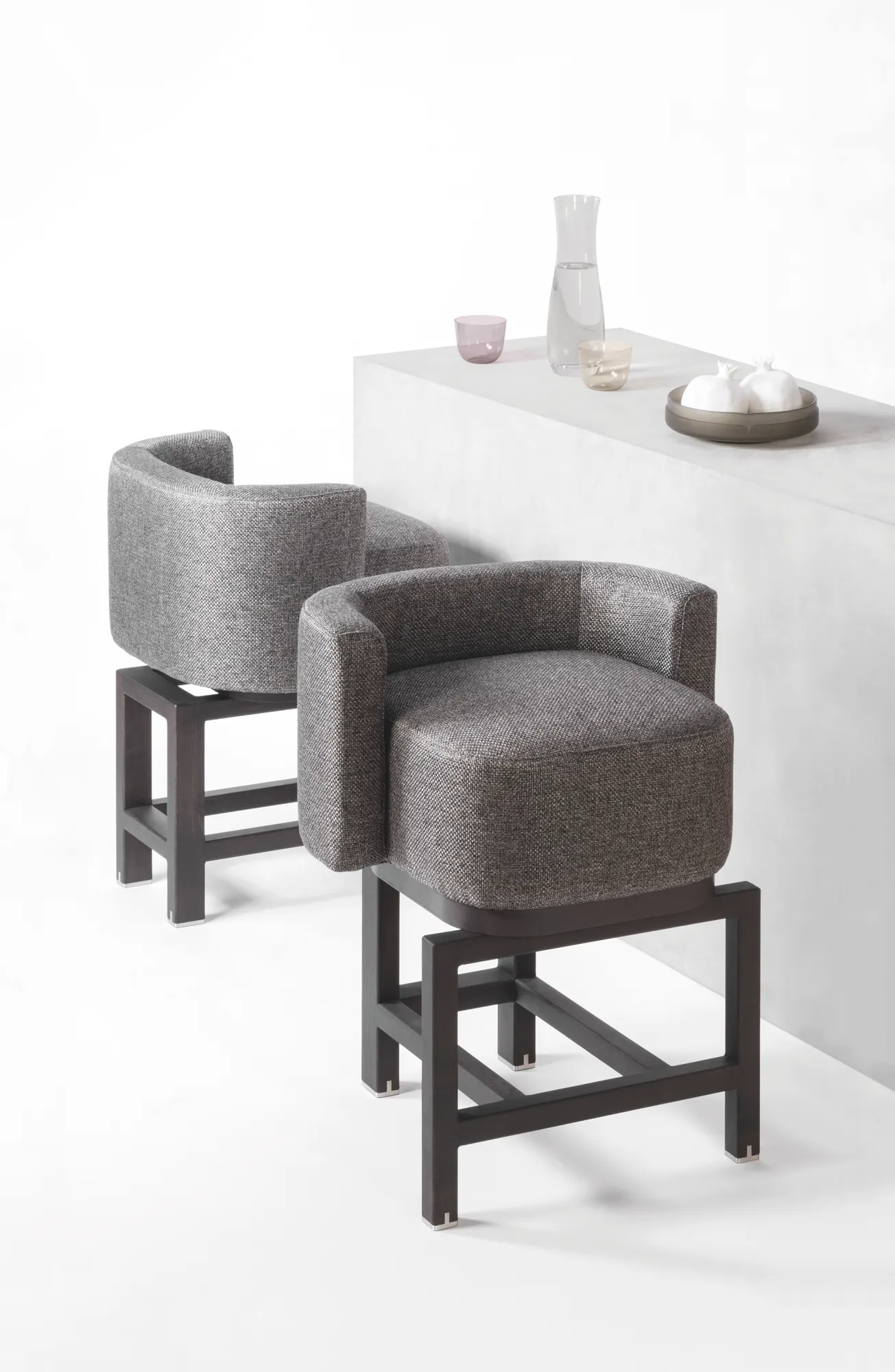 Materials: top in cashmere and wool, base in dark-stained Canaletto walnut wood. Provided with inox or brushed bronze decorative feet. Custom sizes available on request.