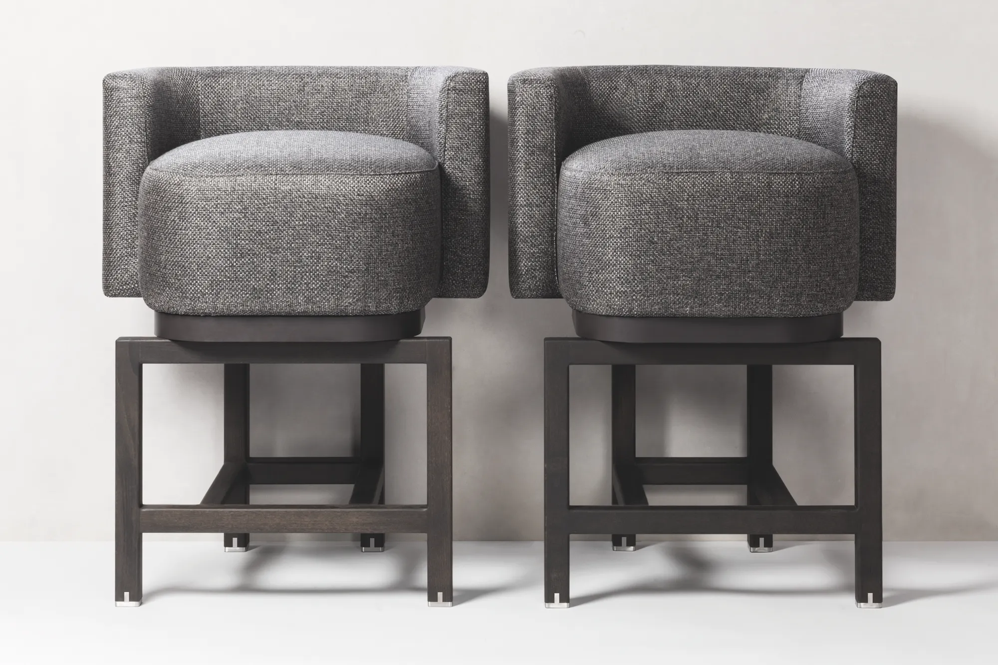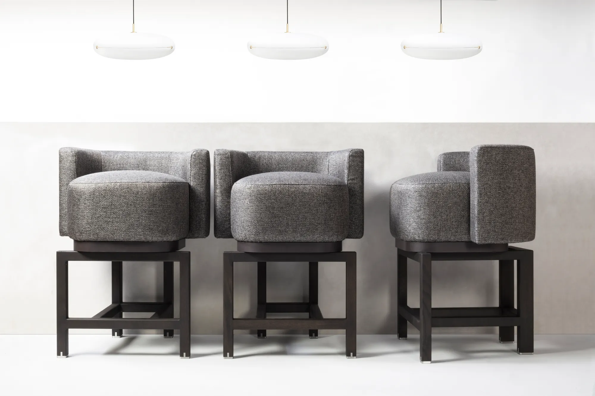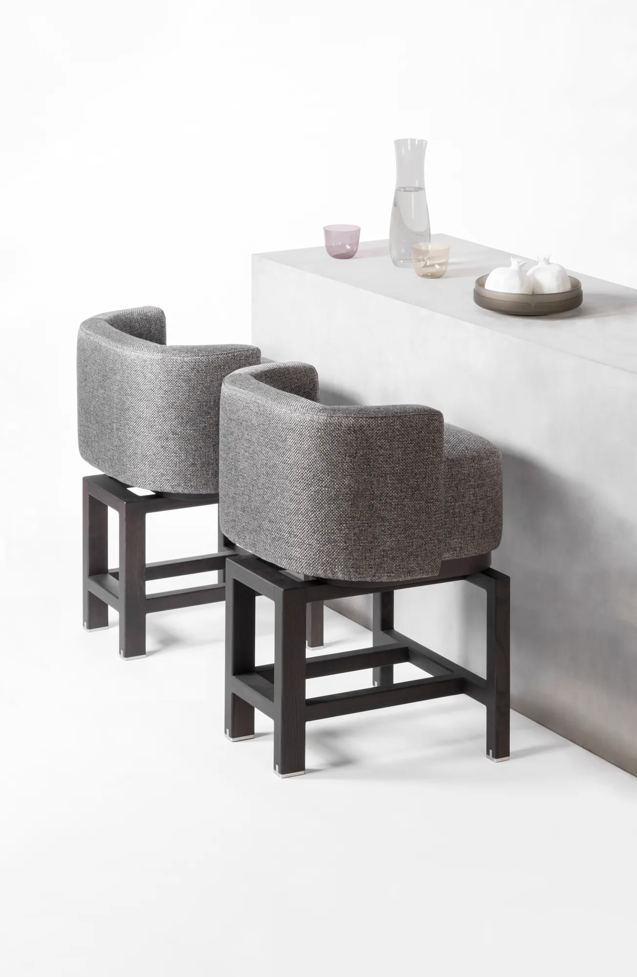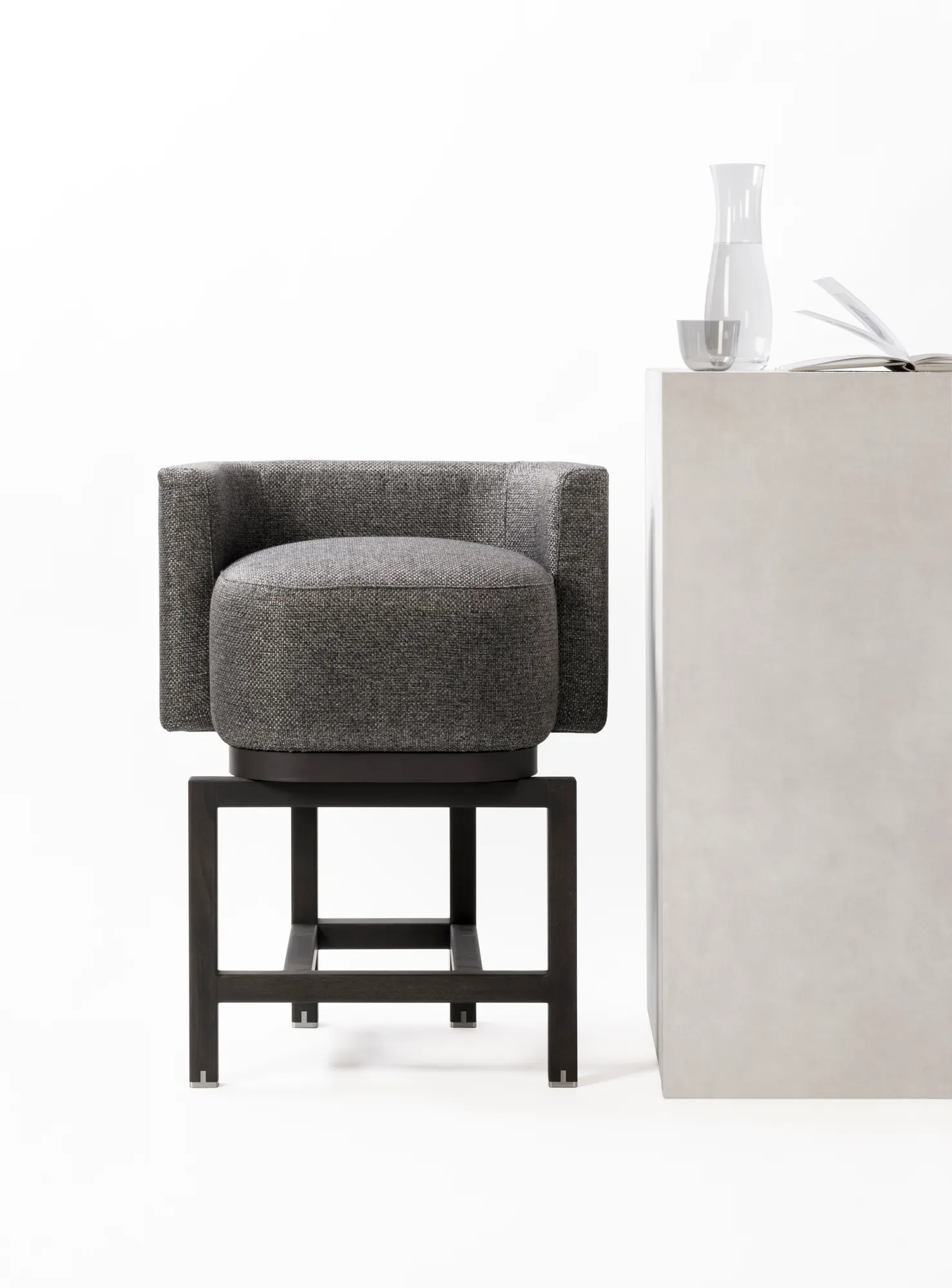 Materials: top in cashmere and wool, base in dark-stained Canaletto walnut wood. Provided with inox or brushed bronze decorative feet. Custom sizes available on request.