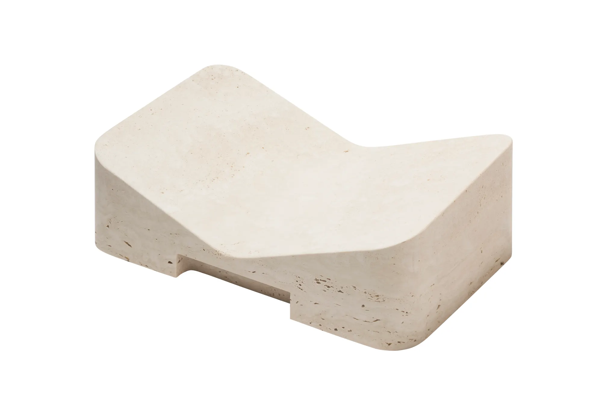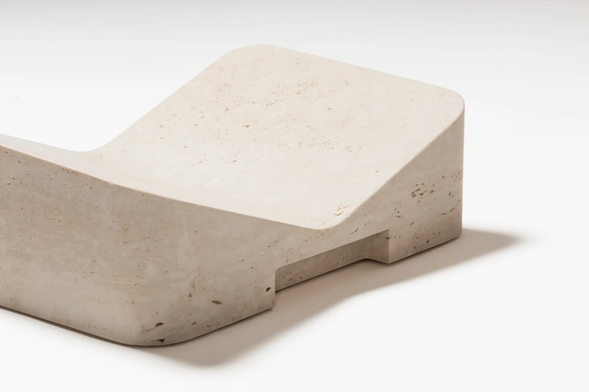 Materials: leather and wood (the wood finish can be either dark-stained Canaletto walnut or wenge), leather and travertine or all-travertine. Custom sizes available on request.