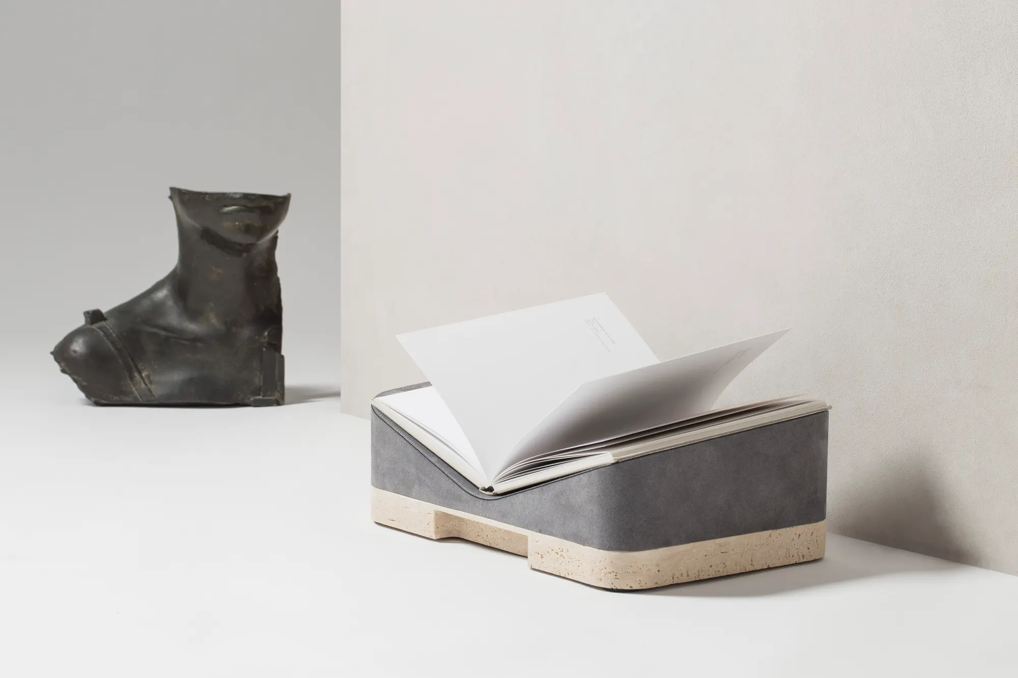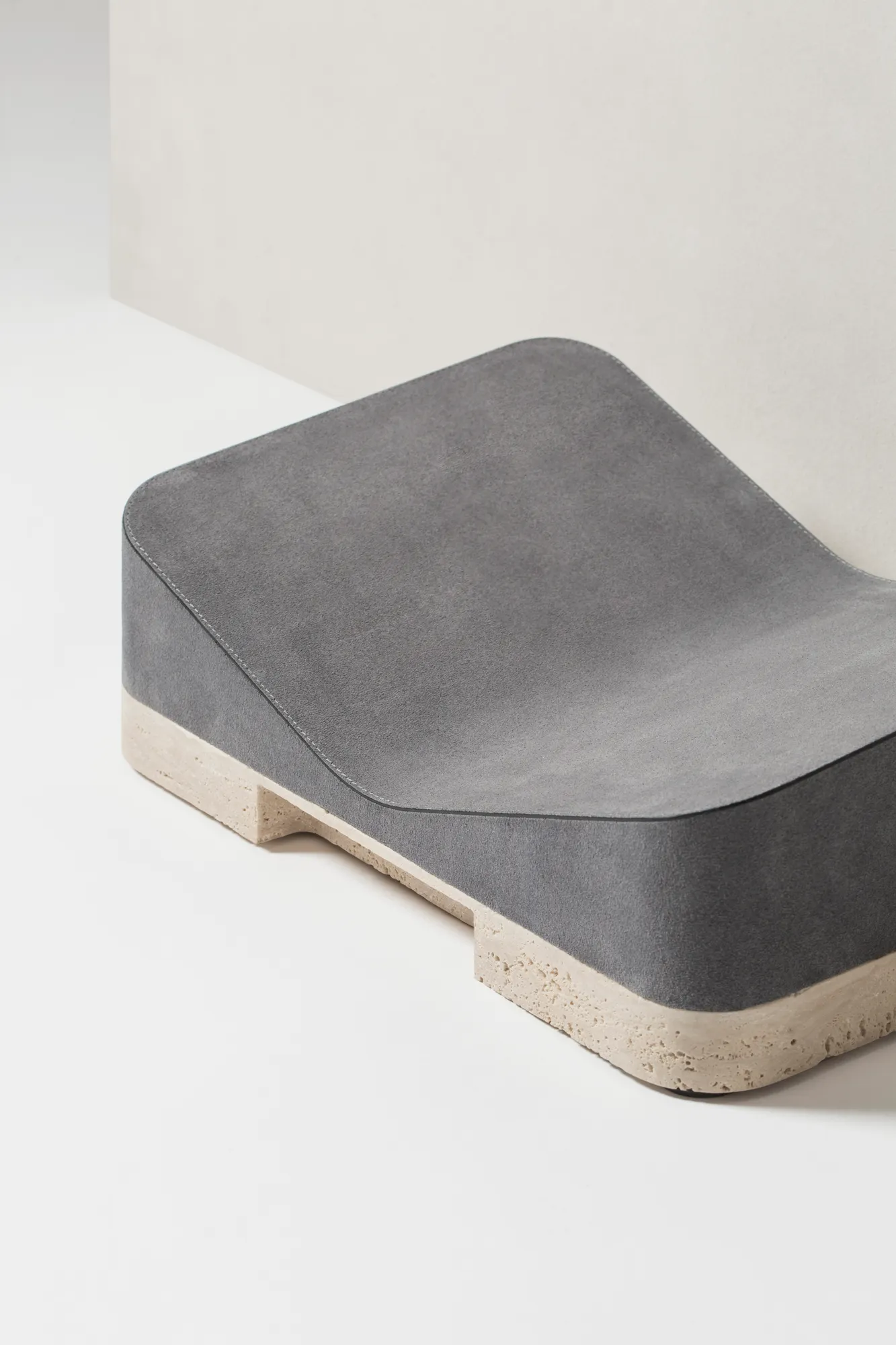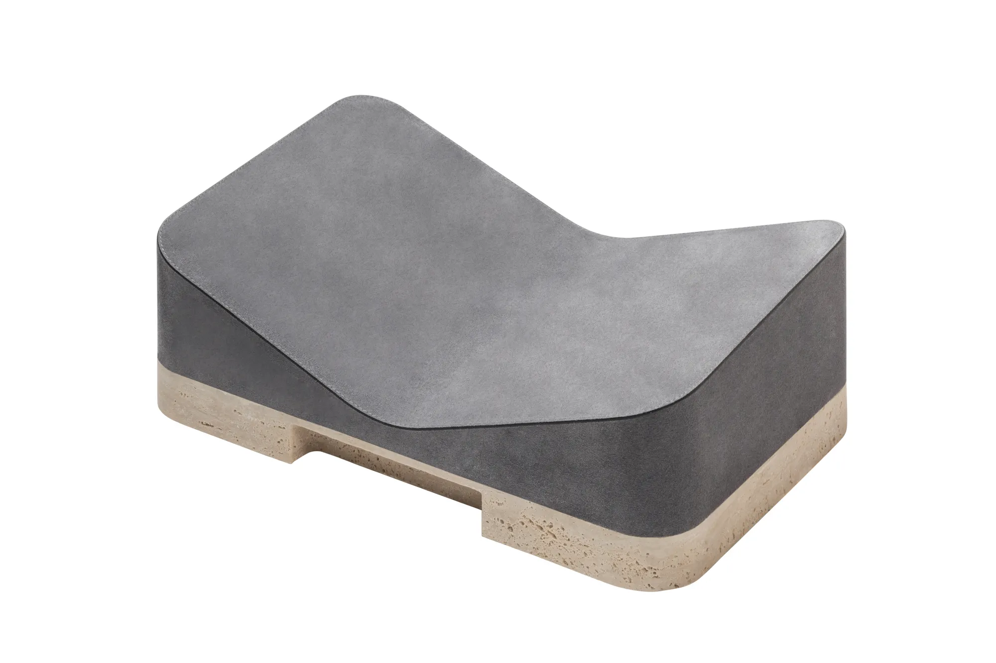 Materials: leather and wood (the wood finish can be either dark-stained Canaletto walnut or wenge), leather and travertine or all-travertine. Custom sizes available on request.