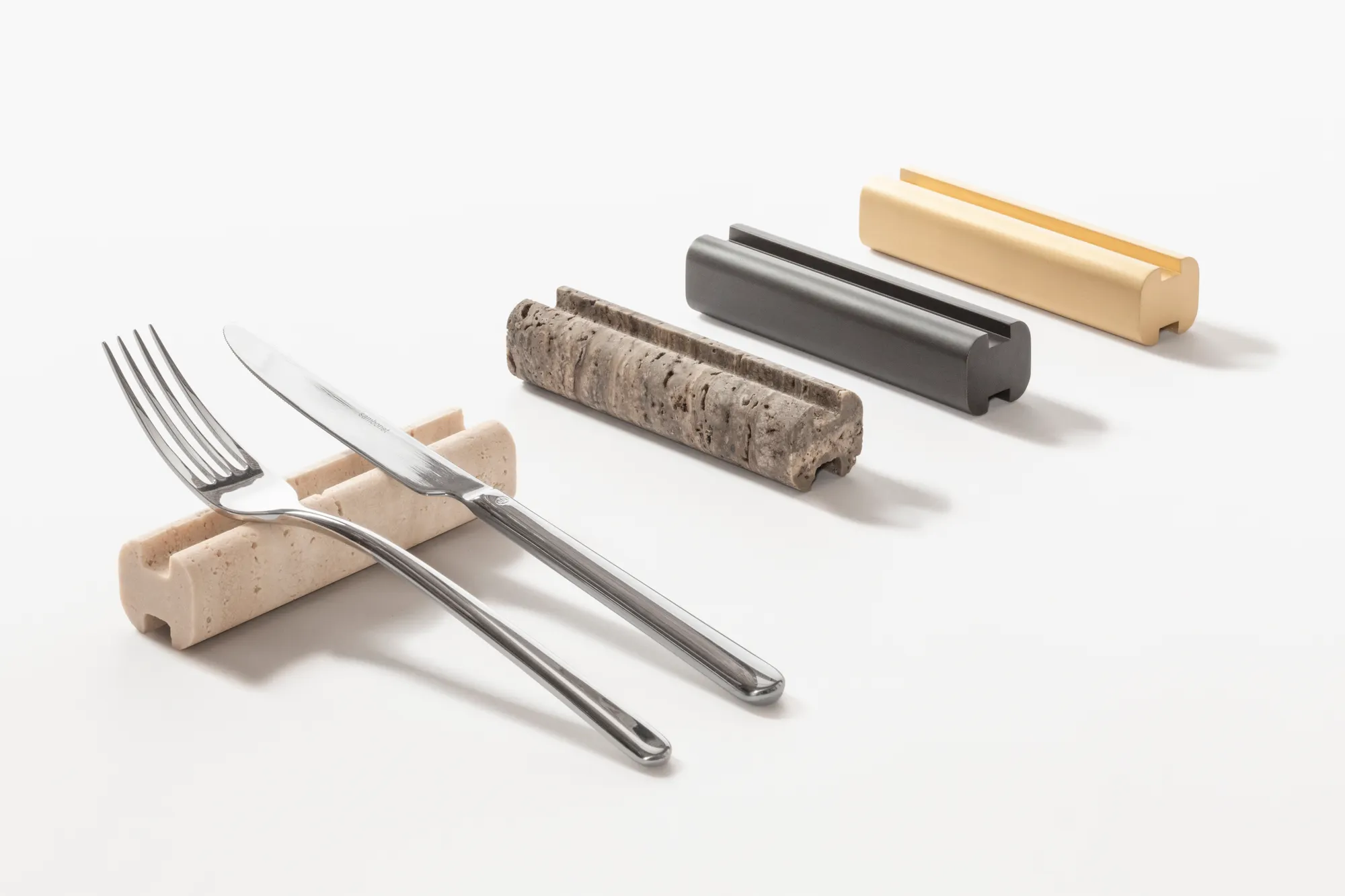 Materials: metal (brushed bronze or brushed brass) or all-travertine (travertino classic or travertino titanium). Custom sizes available on request.