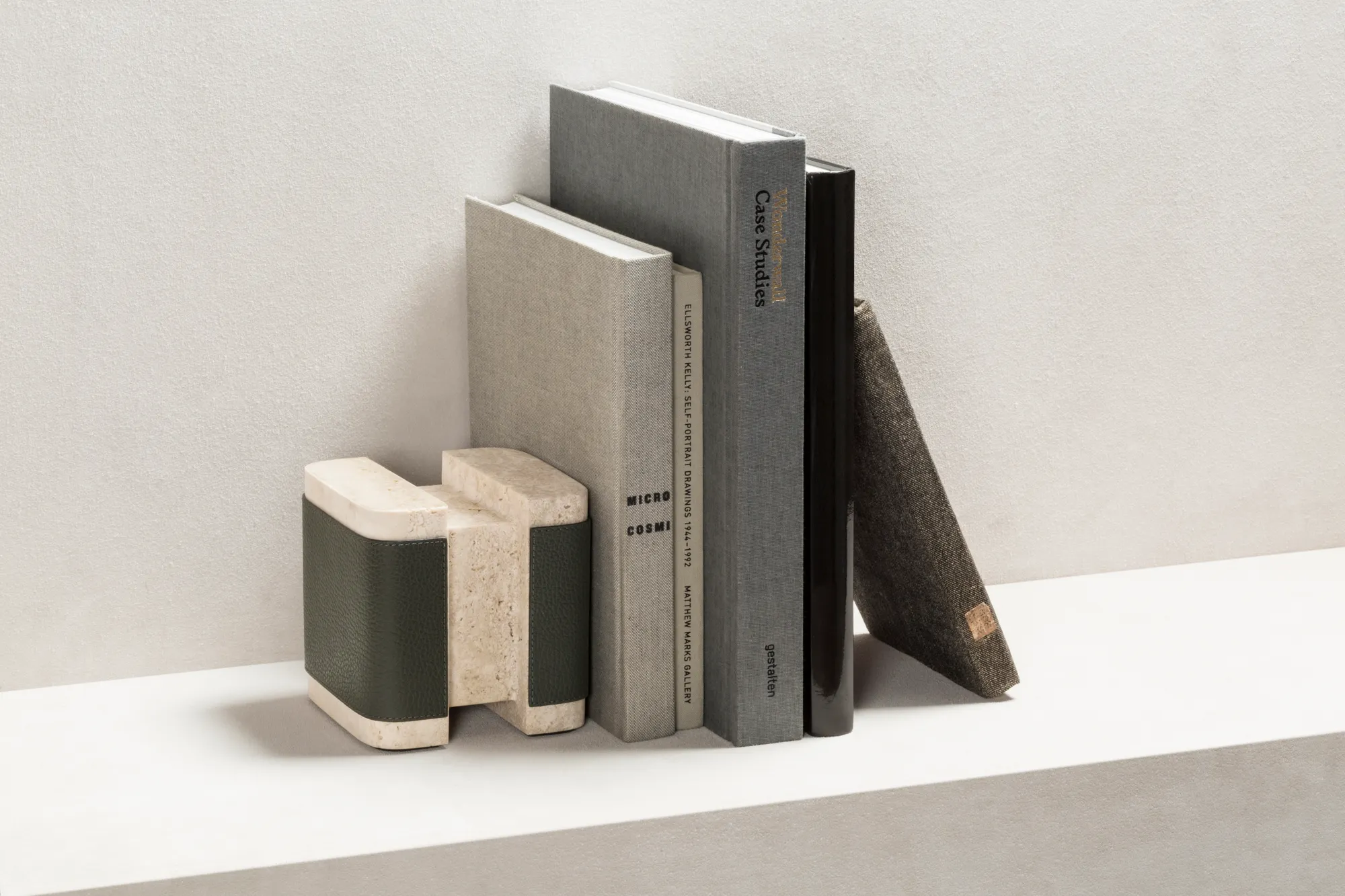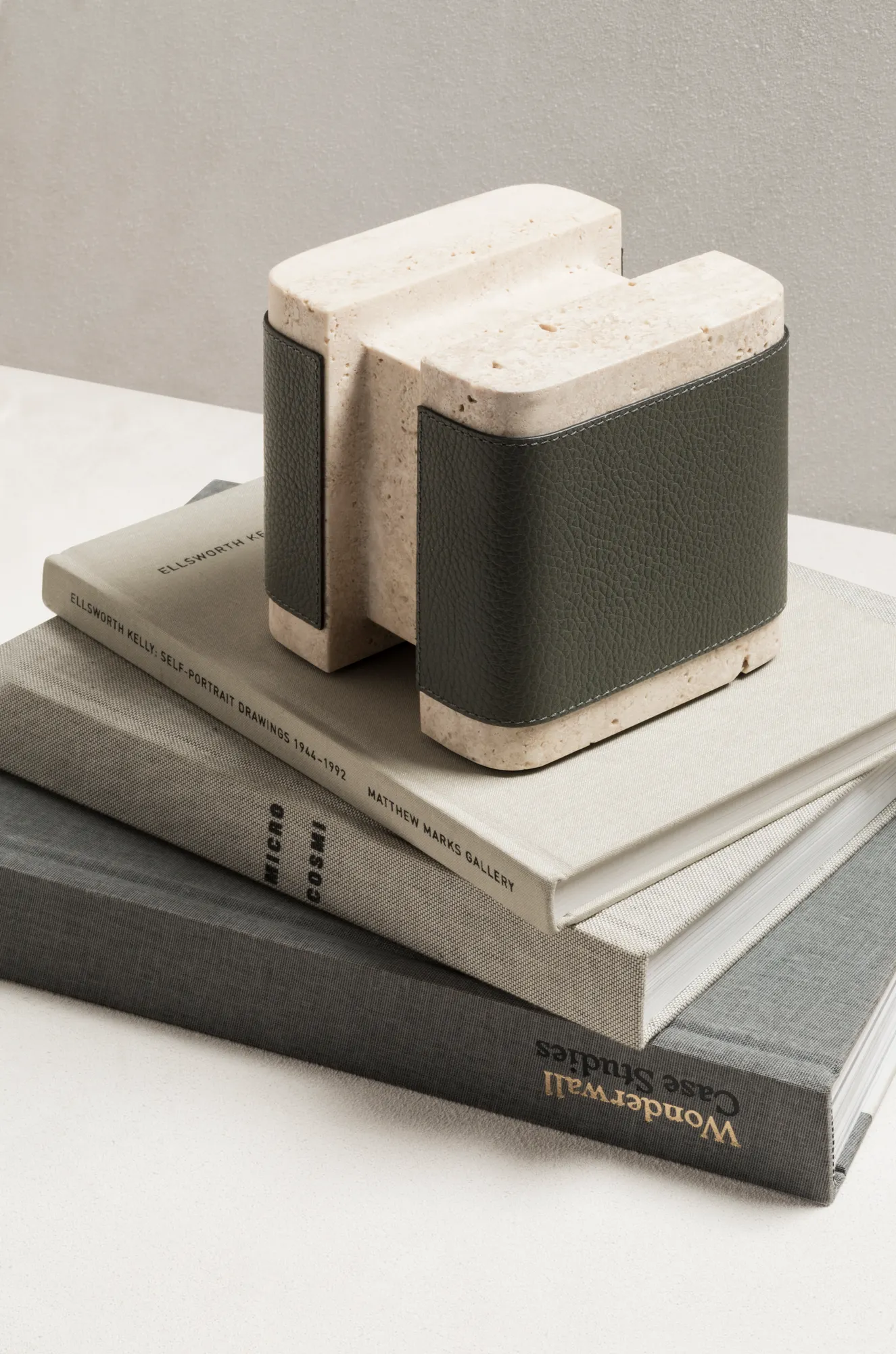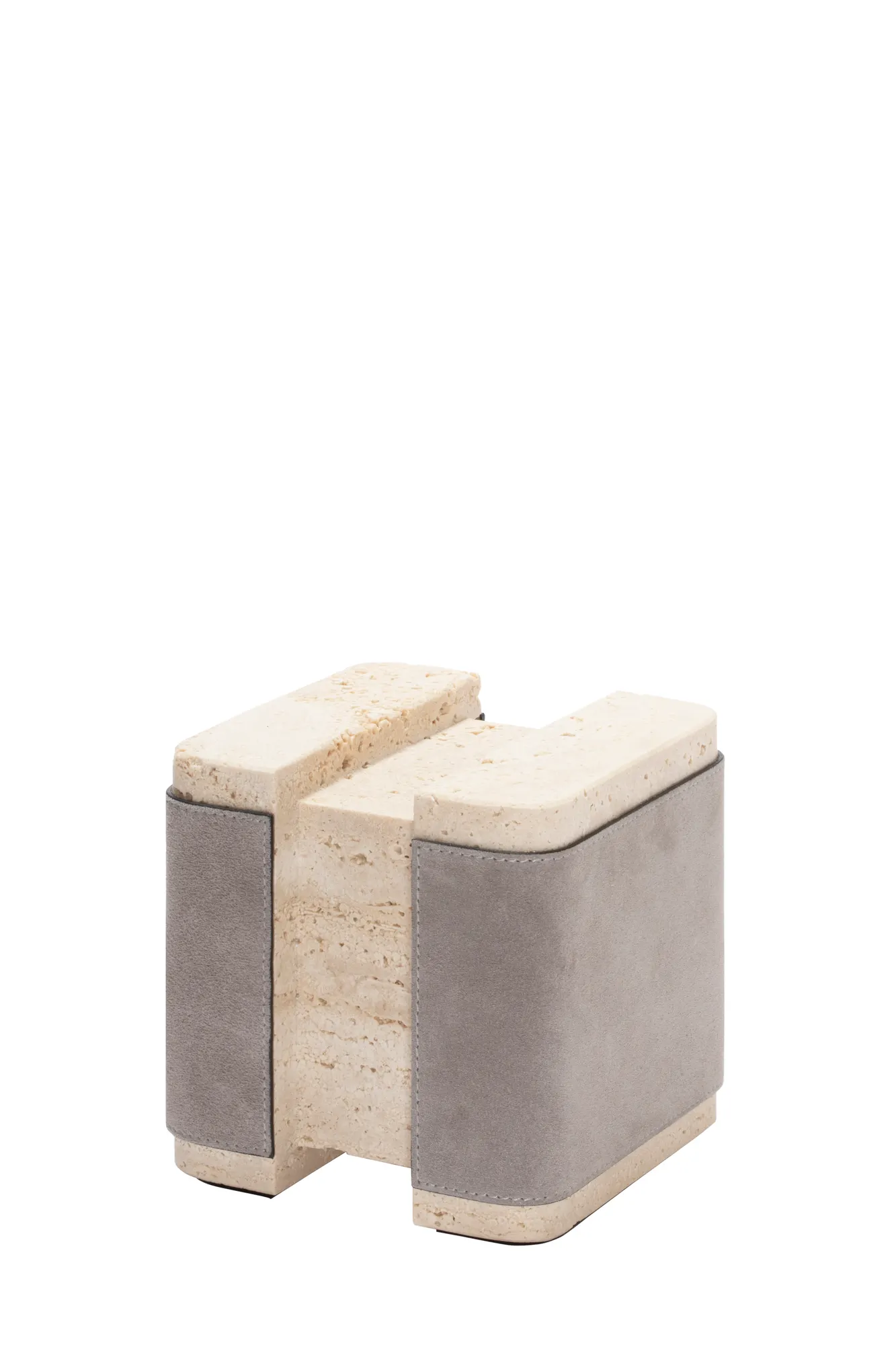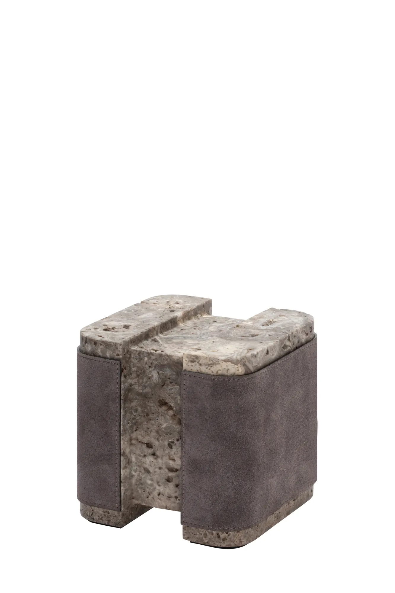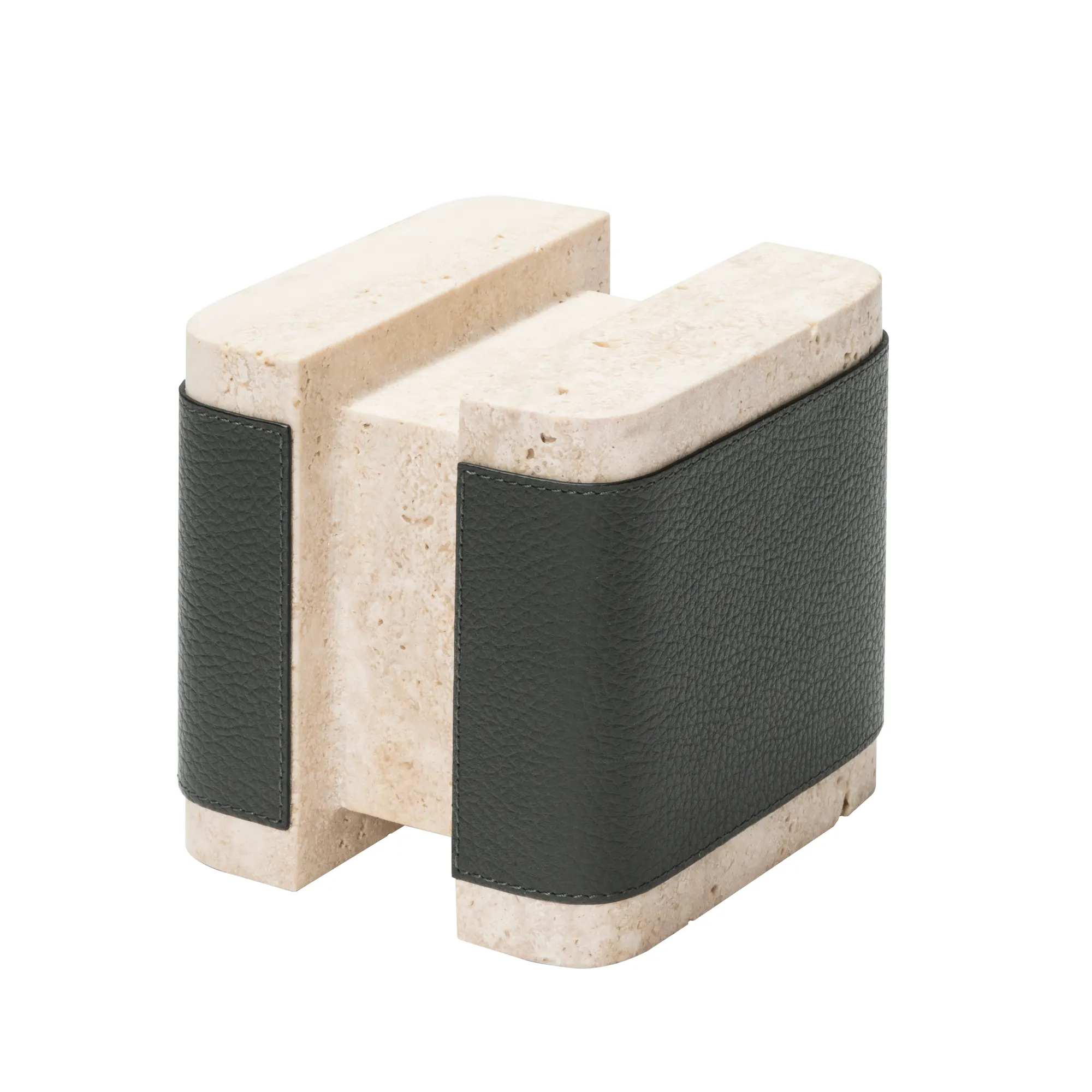 Materials: leather and travertine. Custom sizes available on request.