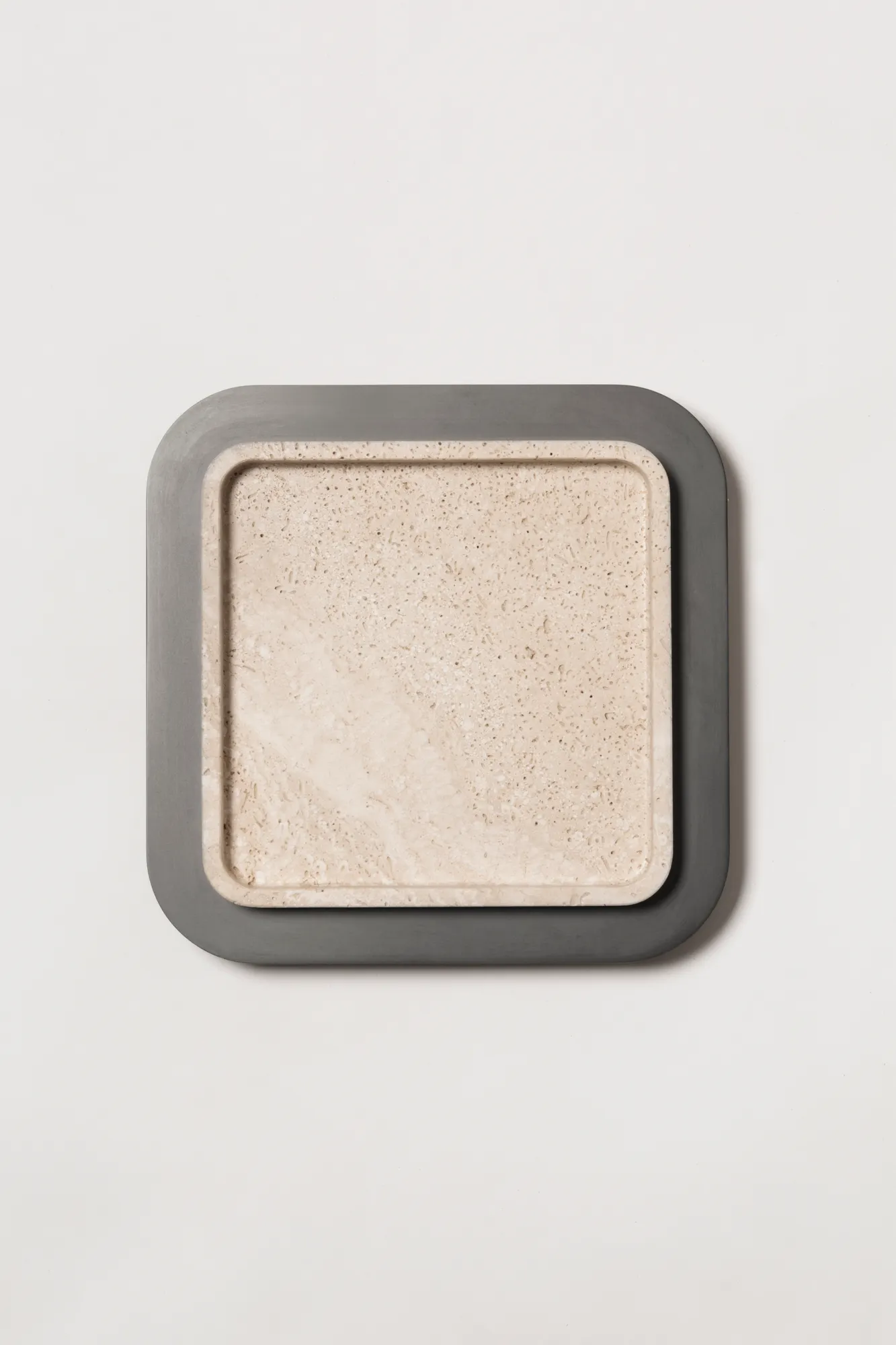 Travertine structure with brushed burnished bronze frame. Custom sizes available on request.