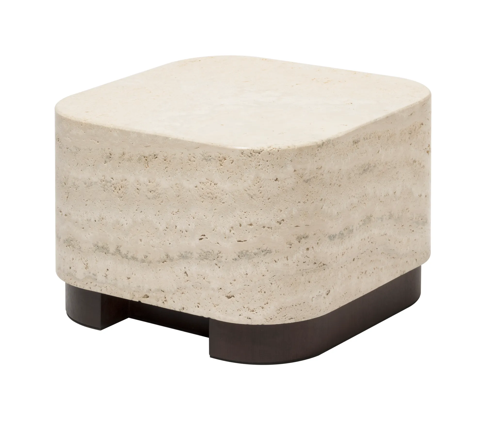 Materials: travertine & dark-stained Canaletto walnut wood. Custom sizes available on request.