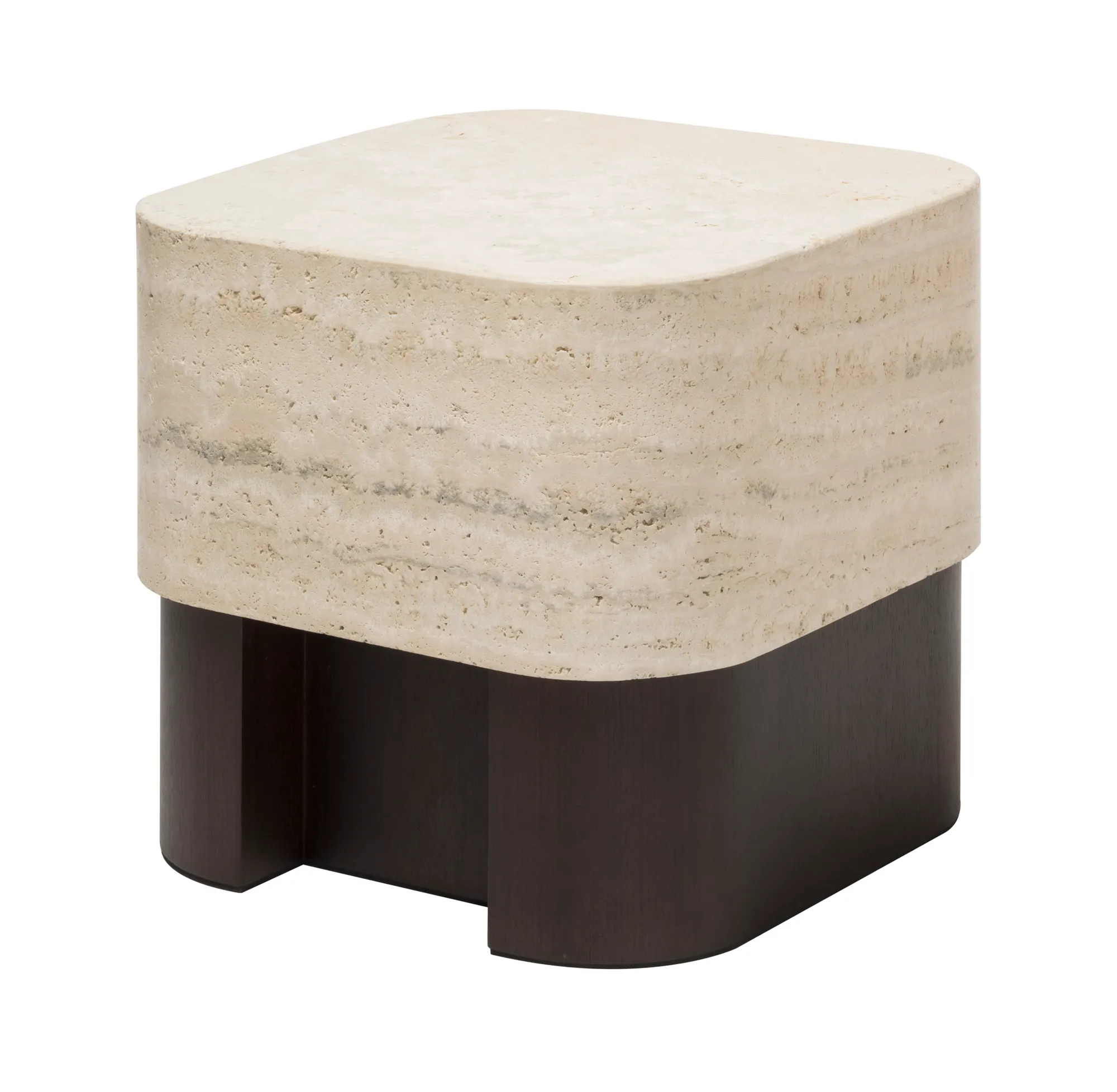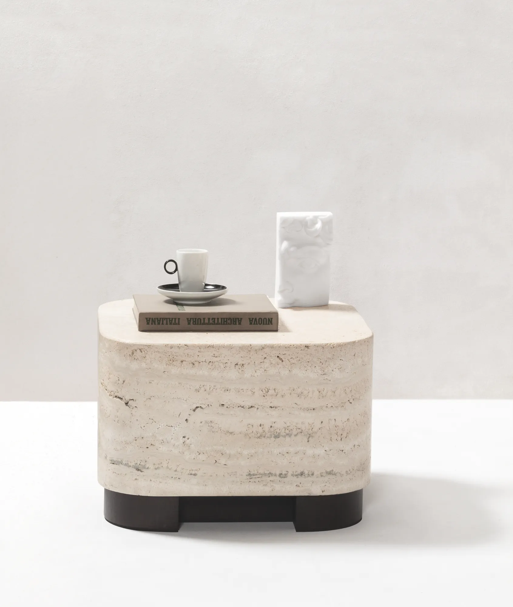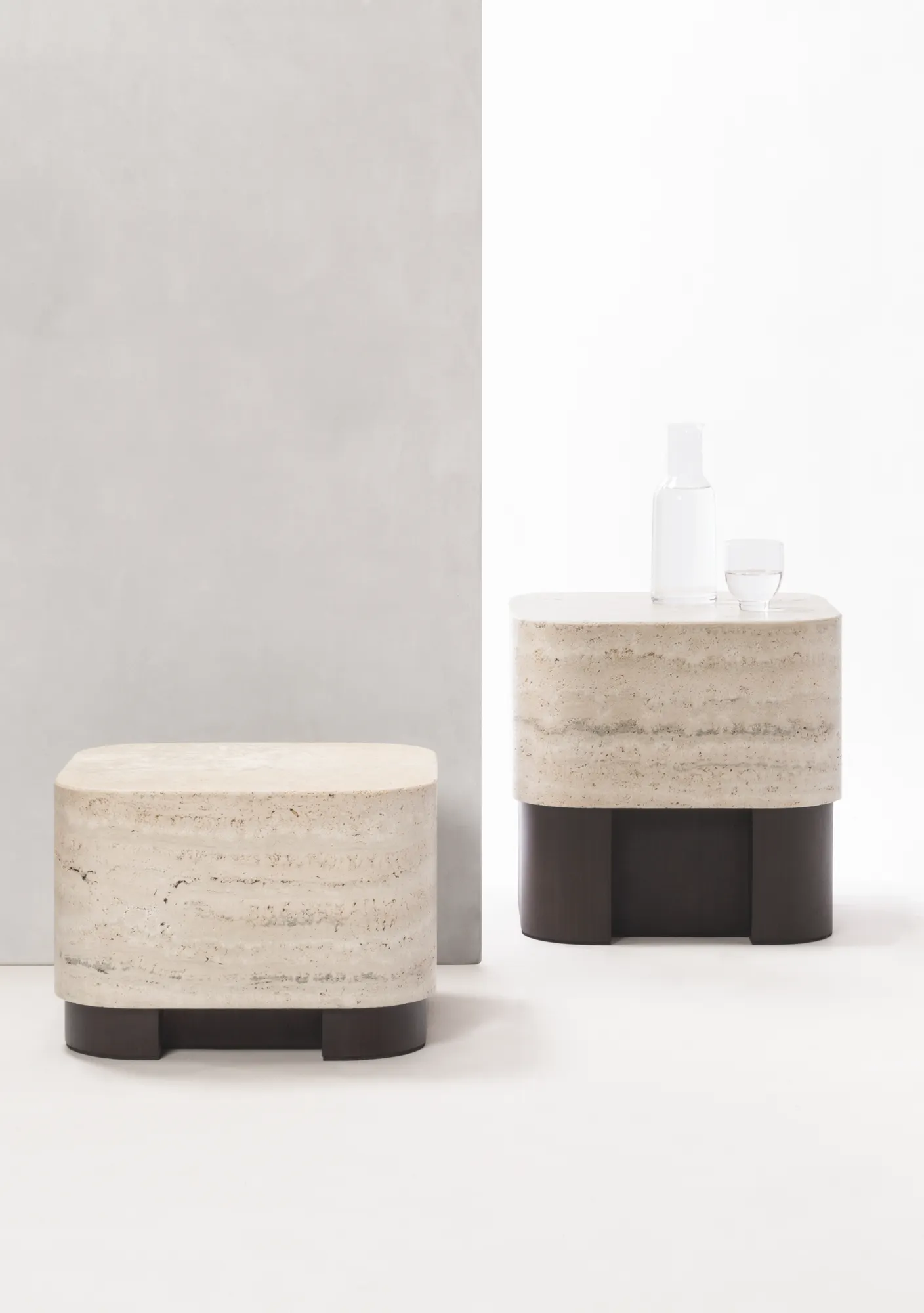 Materials: travertine & dark-stained Canaletto walnut wood. Custom sizes available on request.