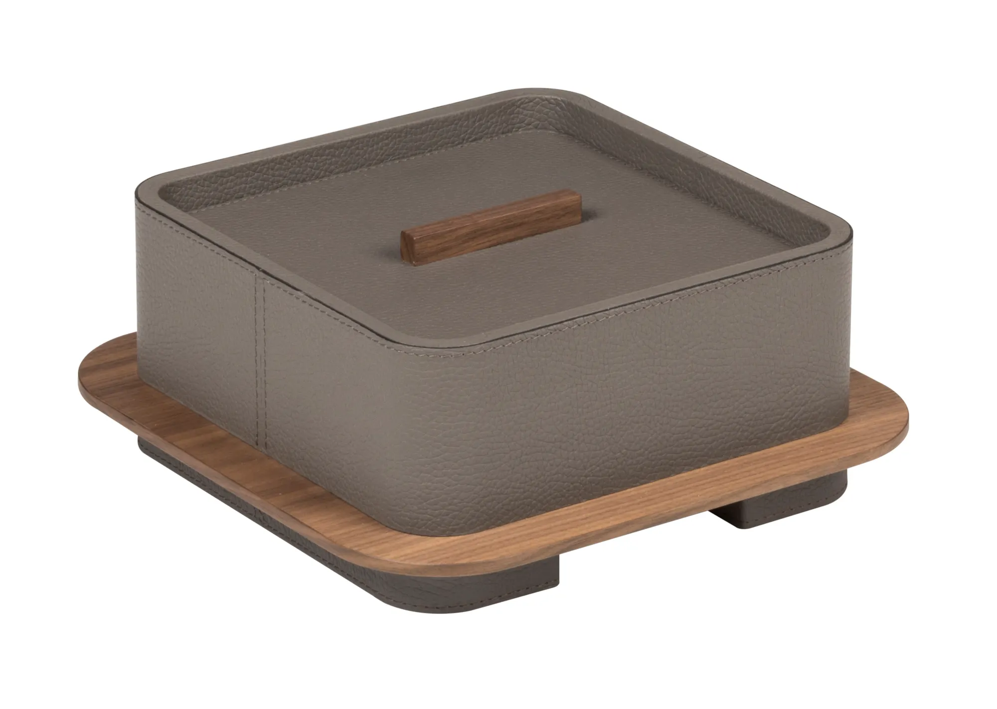 Partially leather-covered wood structure available with walnut or wenge finish. Custom sizes available on request.
