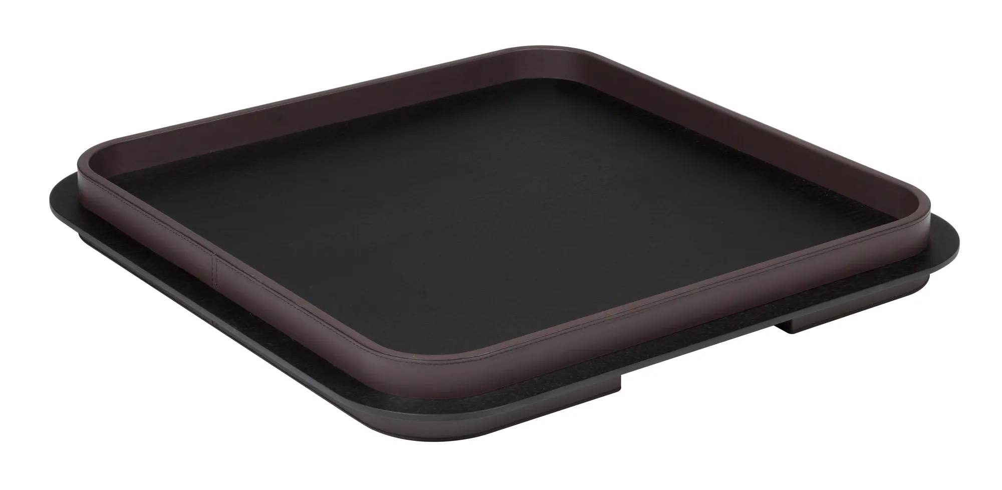 Partially leather-covered wood structure available with walnut or wenge finish. Custom sizes available on request.