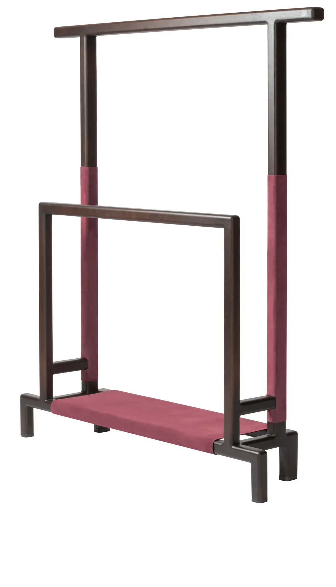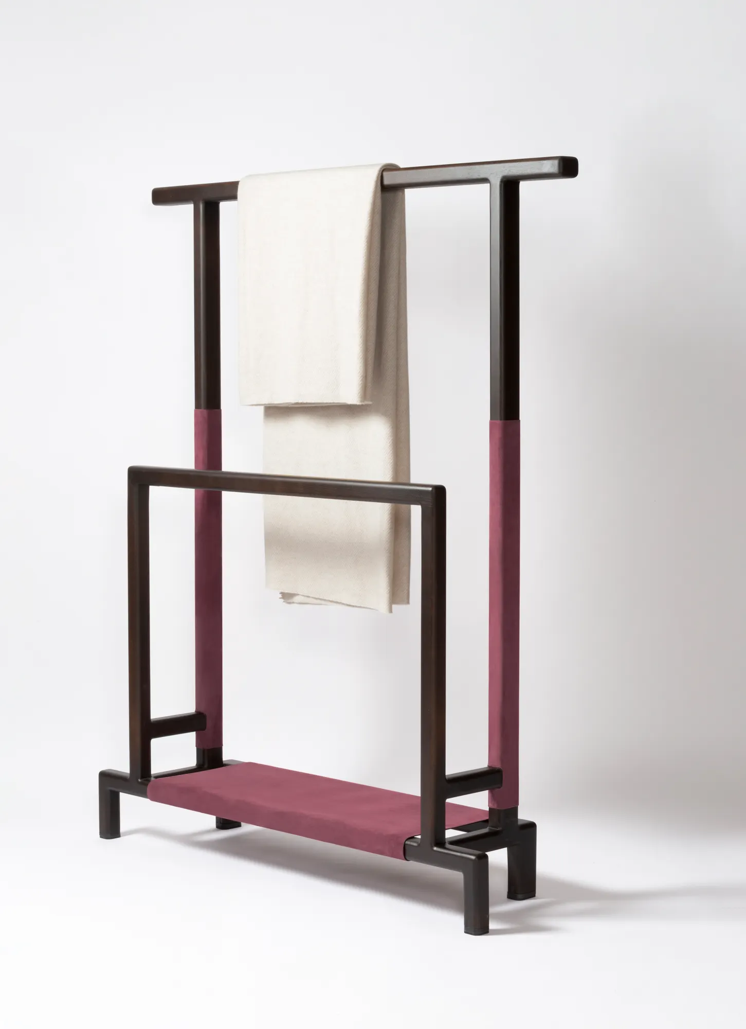 Materials: leather and dark-stained Canaletto walnut wood. Provided with inox or brushed bronze decorative feet. Custom sizes and fabric available on request.